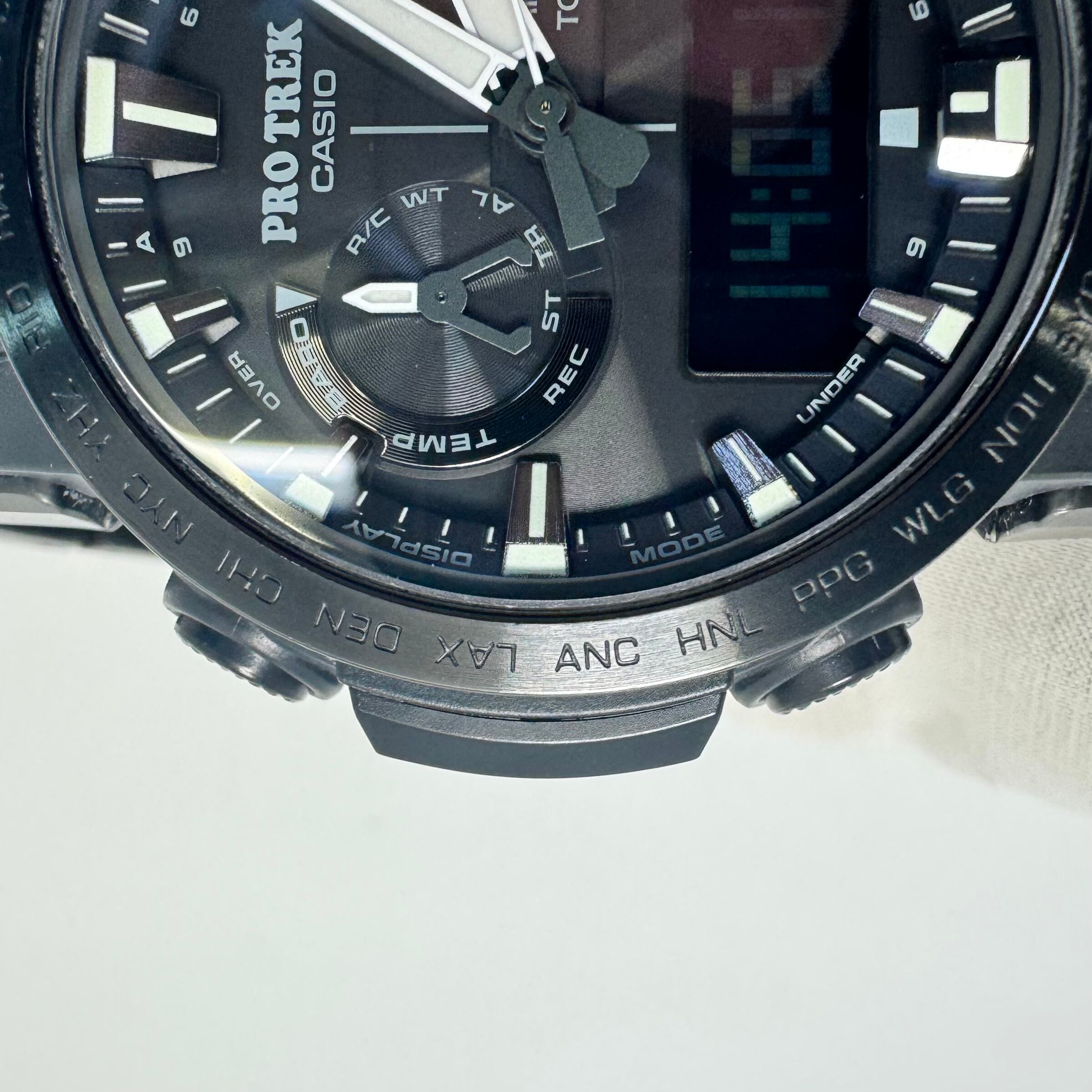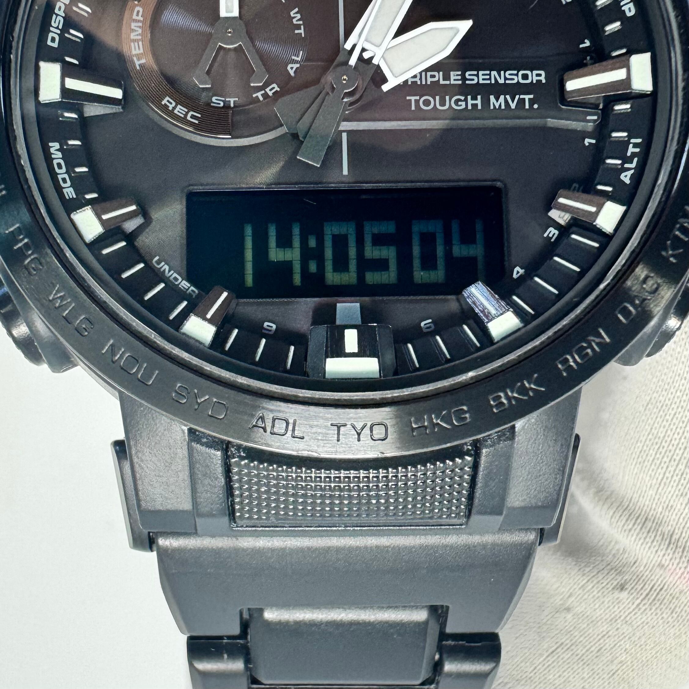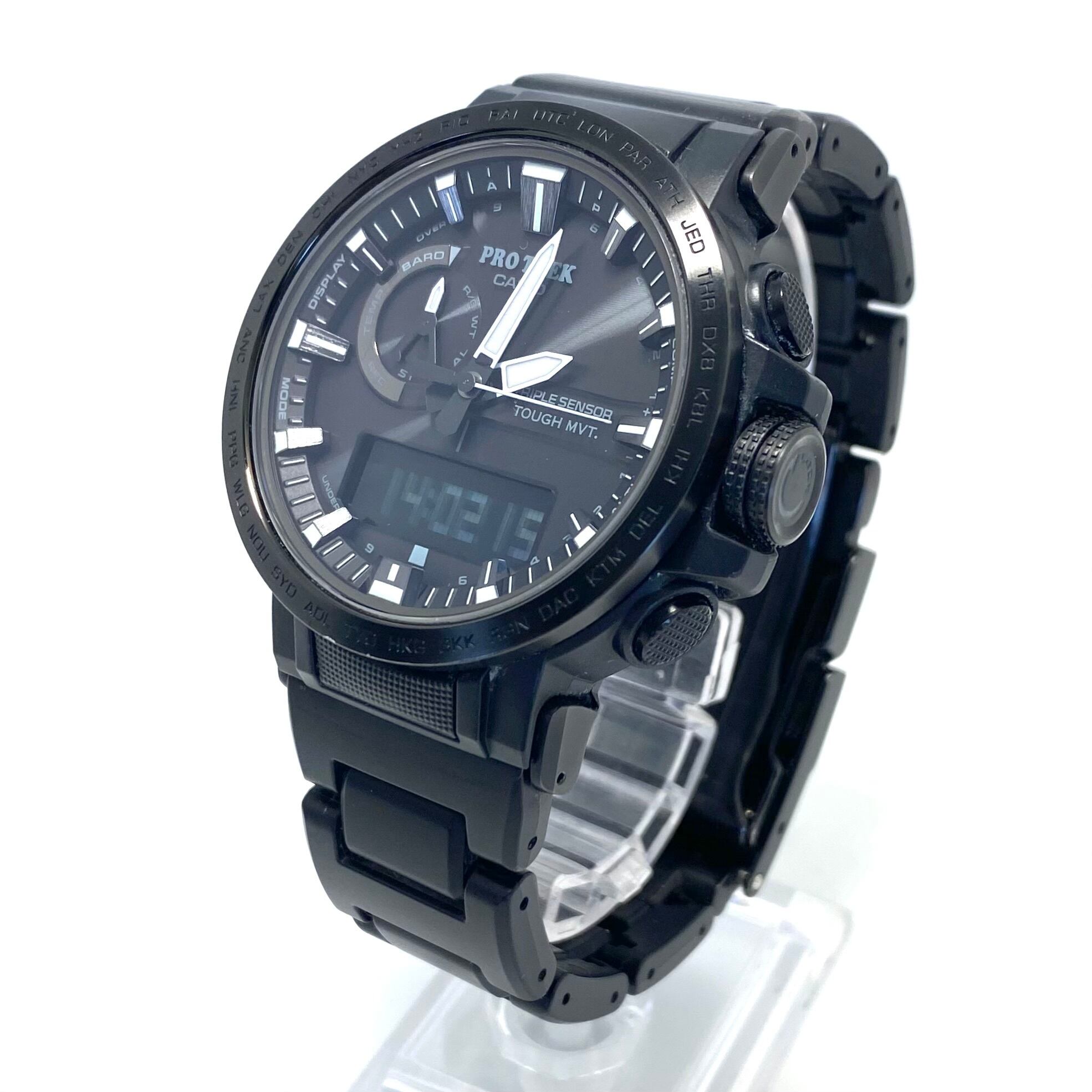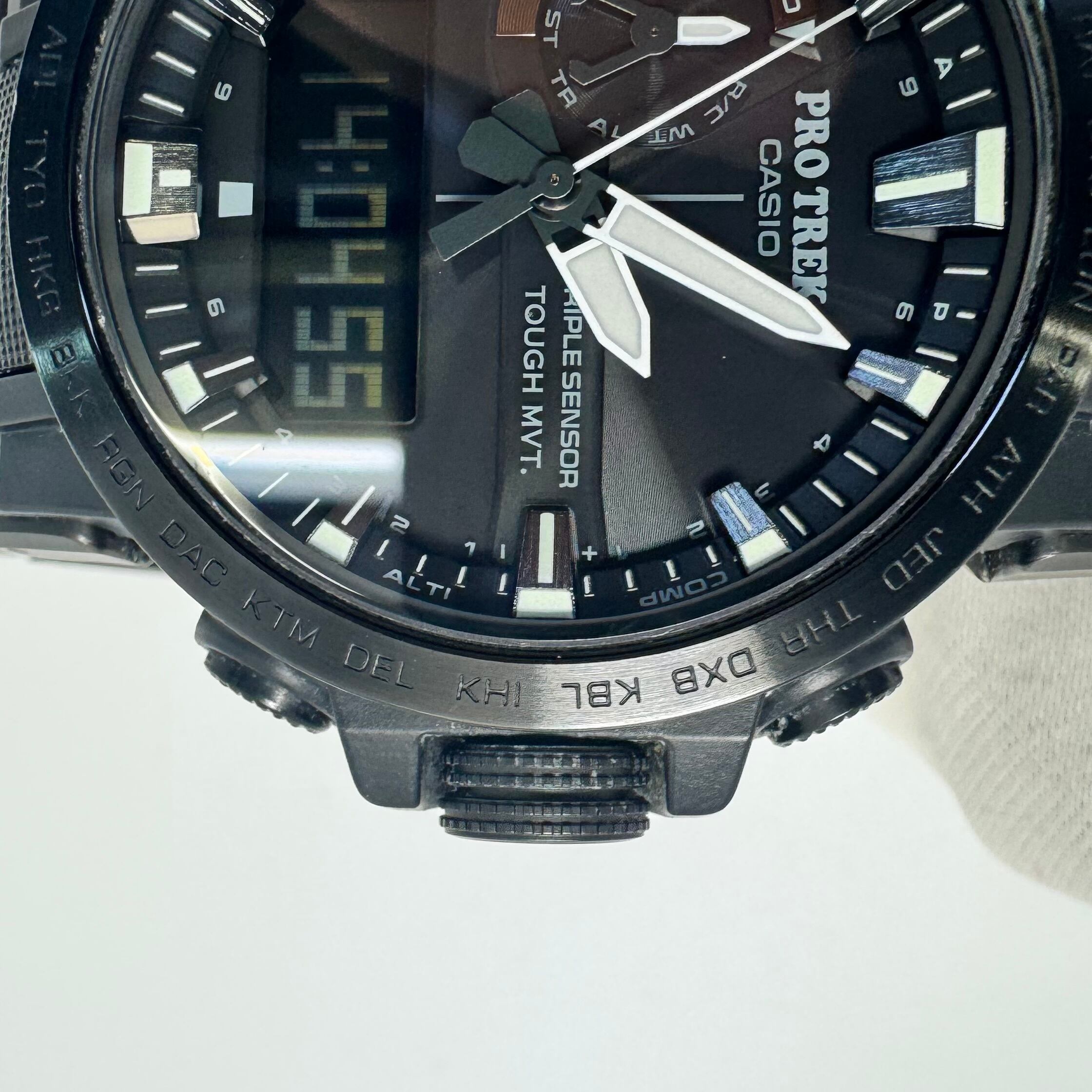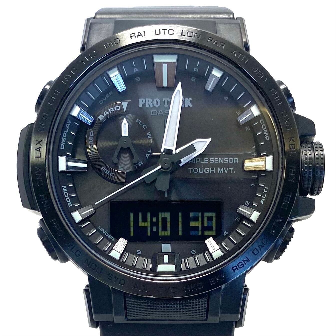 【美品】腕時計 メンズ カシオ CASIO プロトレック クライマーライン PRW-60FC-1AJF 電波ソーラー トリプルセンサー アナデジ 黒 10気圧防水 アウトドア 登山