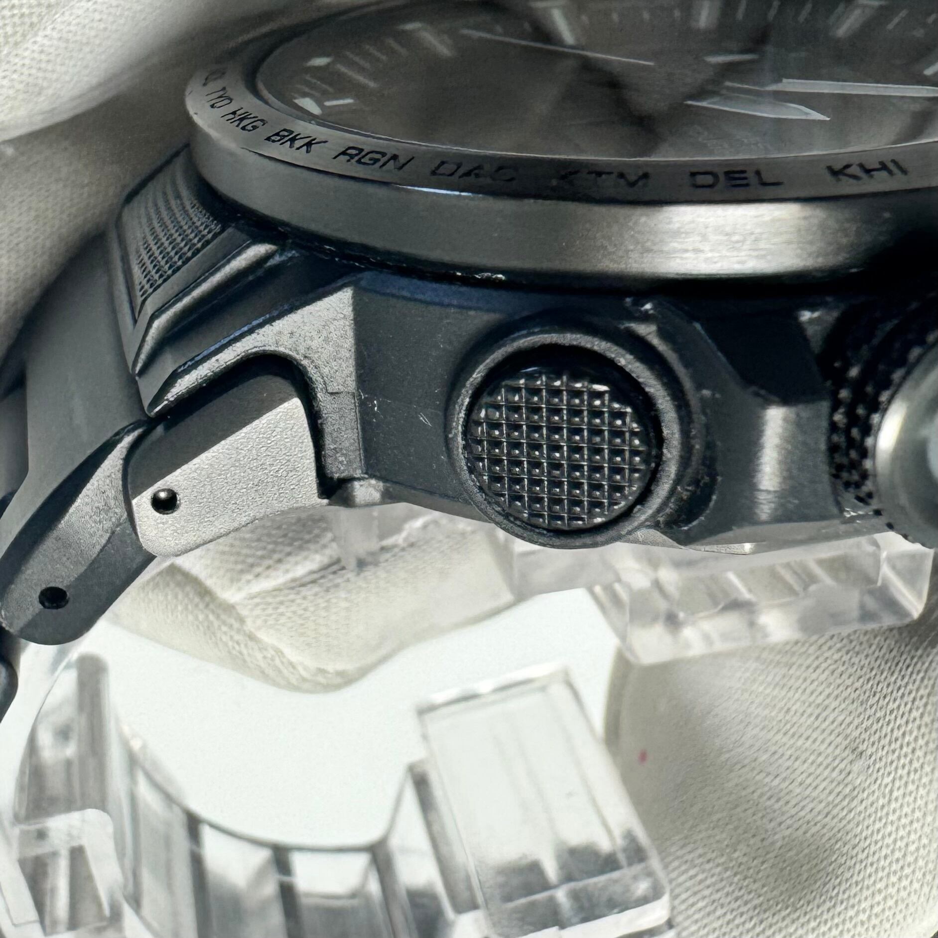 ムーブメントには電波ソーラー(マルチバンド6+タフソーラー)を採用し、時刻合わせや電池交換の手間を大幅に軽減。サファイアガラスや10気圧防水など、日常から過酷な環境まで対応するタフな仕様も魅力です。