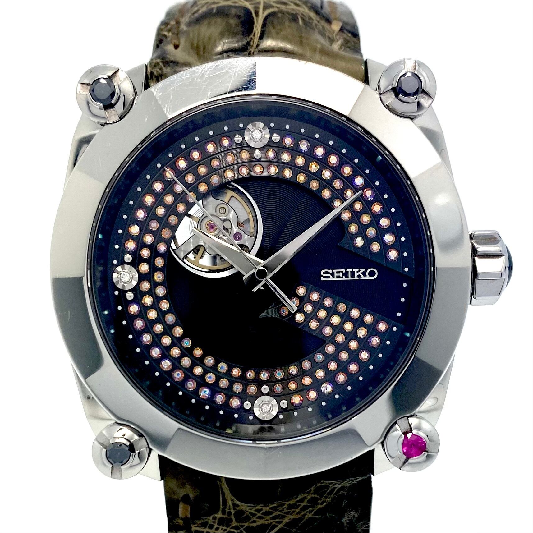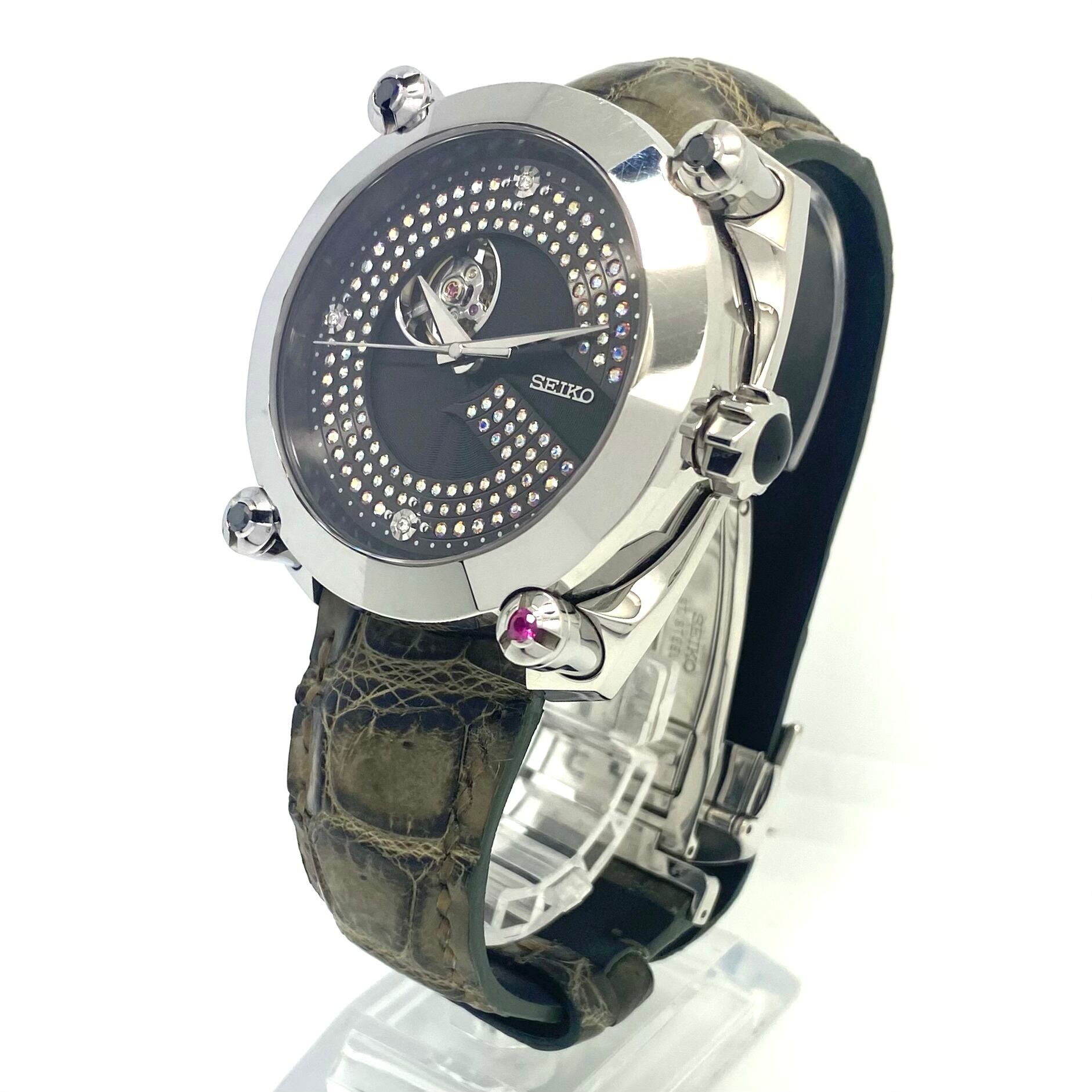 セイコー SEIKO ガランテ Galante SBLL023 8L38-00J0 世界限定100本 自動巻 黒 裏スケ ダイヤモンド ルビー 20気圧防水 革ベルト
