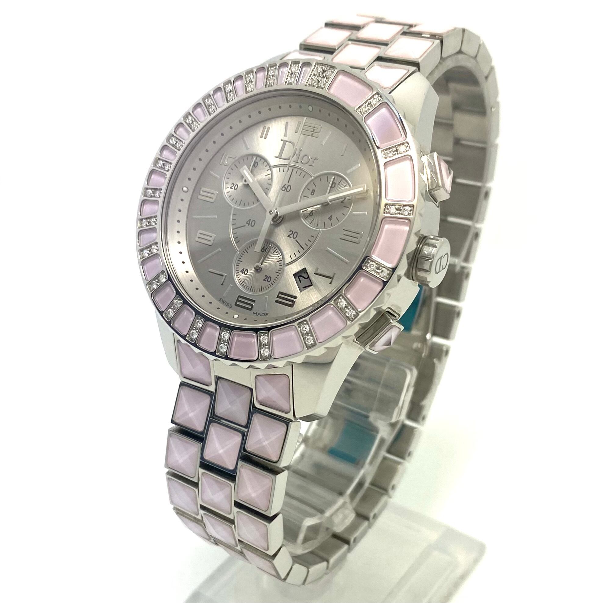 【ほぼ未使用・電池交換済み】腕時計 メンズ レディース クリスチャンディオール Christian Dior クリスタル クロノグラフ CD114315M002 クォーツ シルバー デイト表示 ダイヤモンド ユニセックス