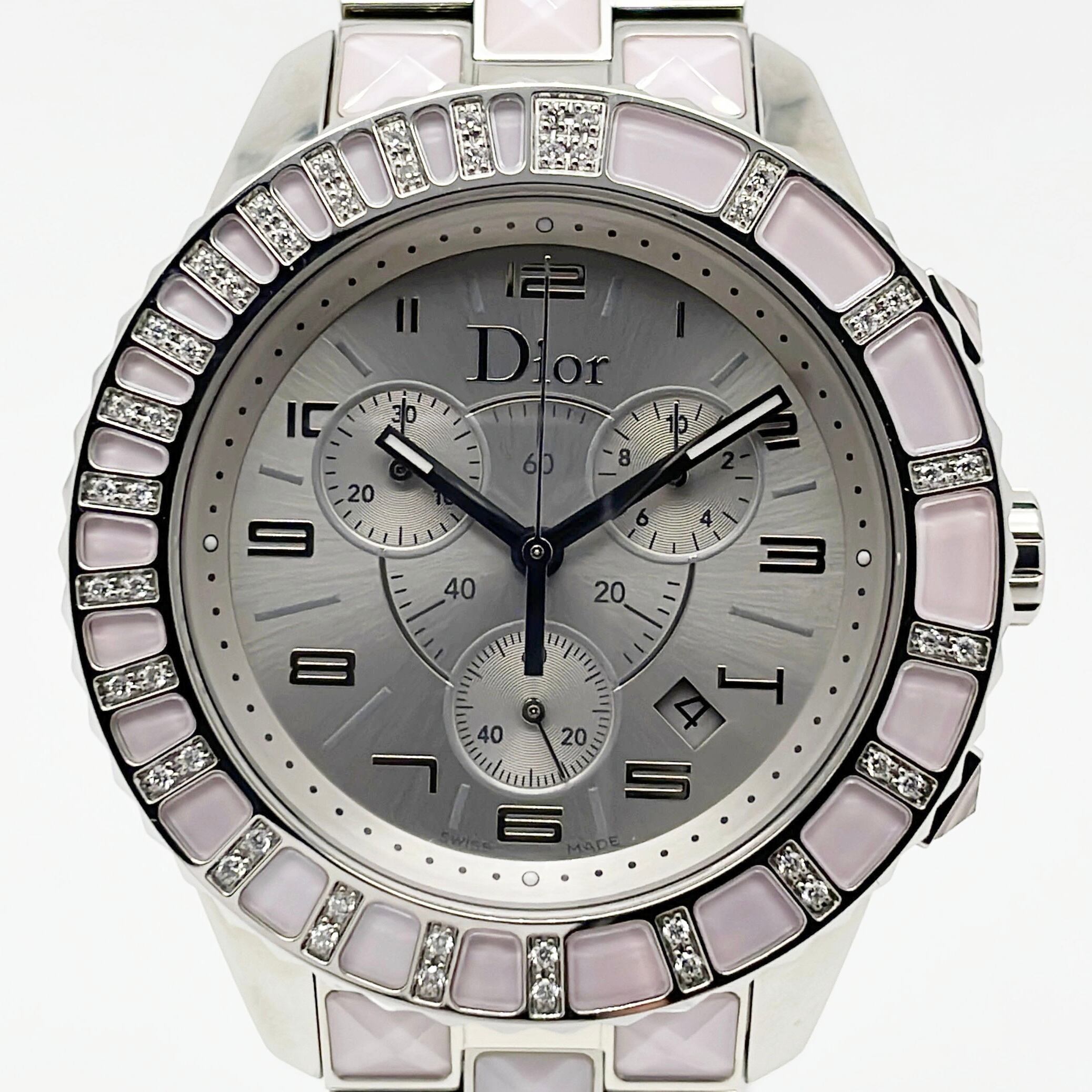 クリスチャンディオール Christian Dior クリスタル クロノグラフ Christal CD114315M002 クォーツ シルバー デイト表示 ダイヤモンド ユニセックス