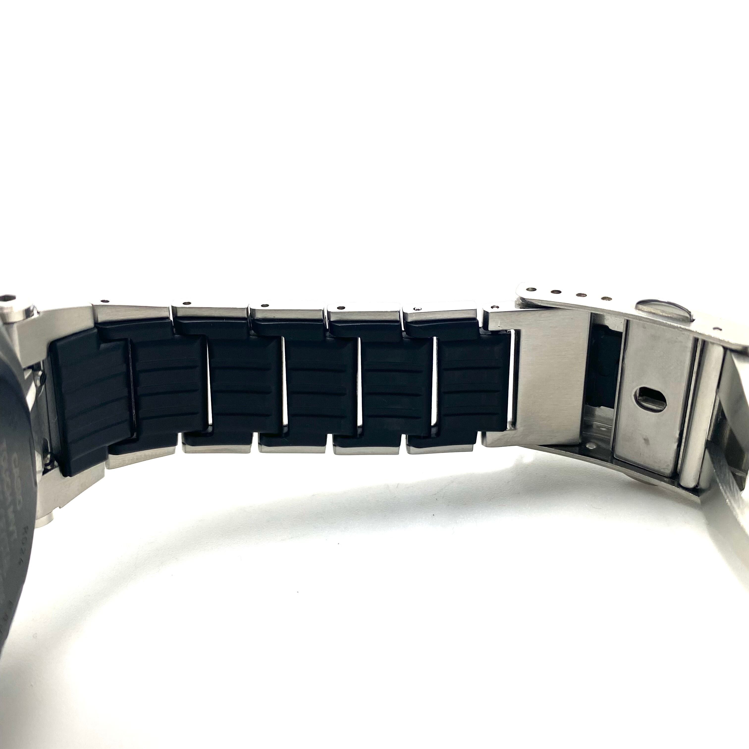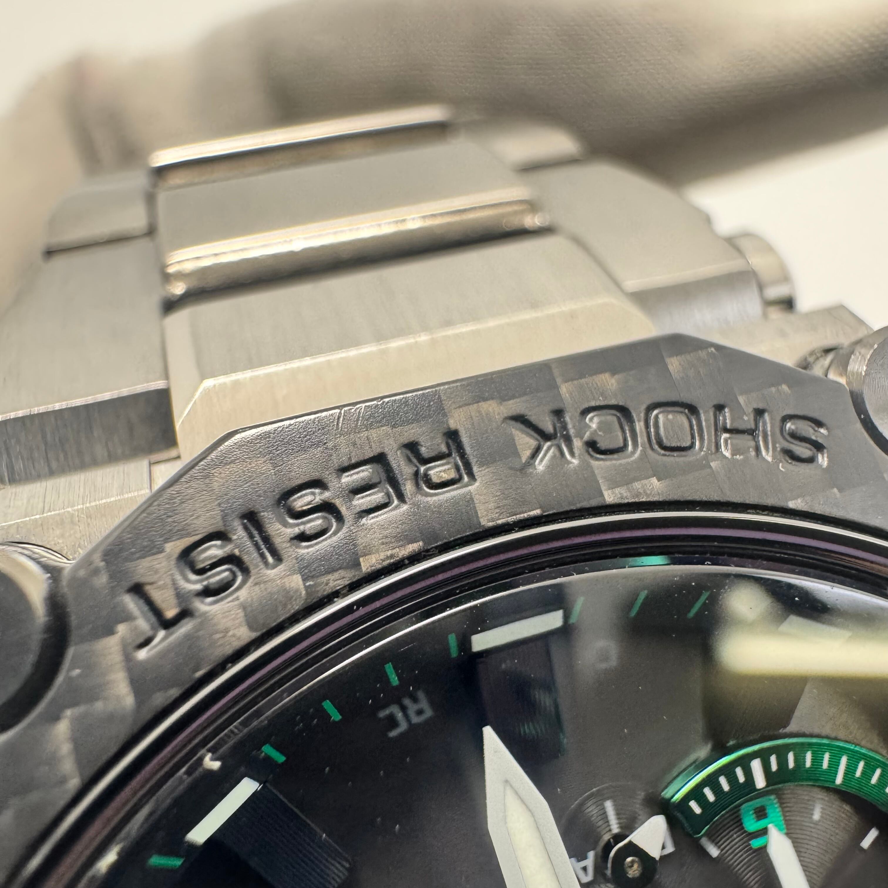 ブラック文字盤にグリーンの差し色が映える精悍なデザインに加え、カーボン×ステンレスによるデュアルコアガード構造を採用し、圧倒的な耐衝撃性と高級感を両立。電波ソーラー(マルチバンド6)に加え、Bluetoothによるスマートフォンリンク機能を搭載し、常に正確な時刻管理と快適な操作性を実現しています。