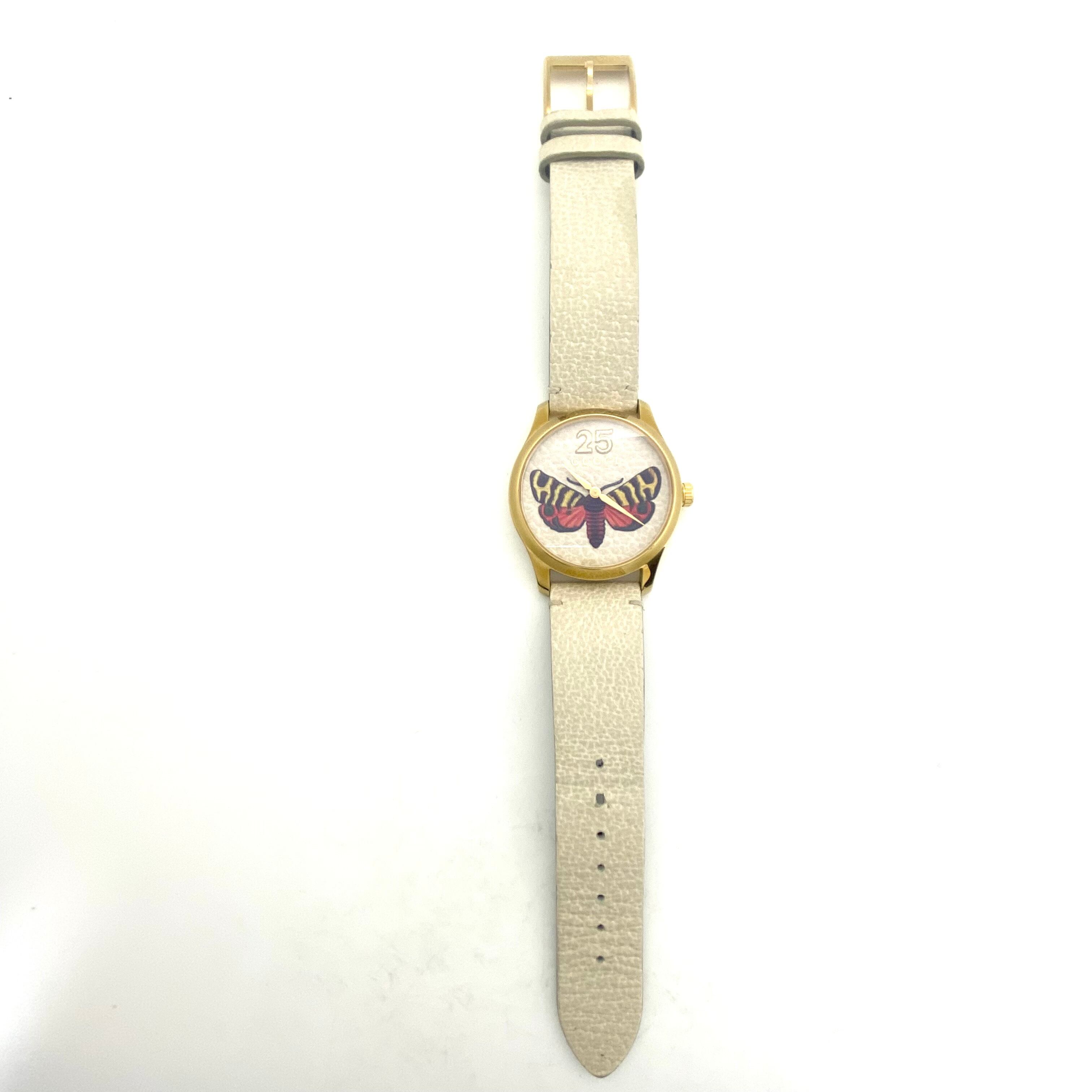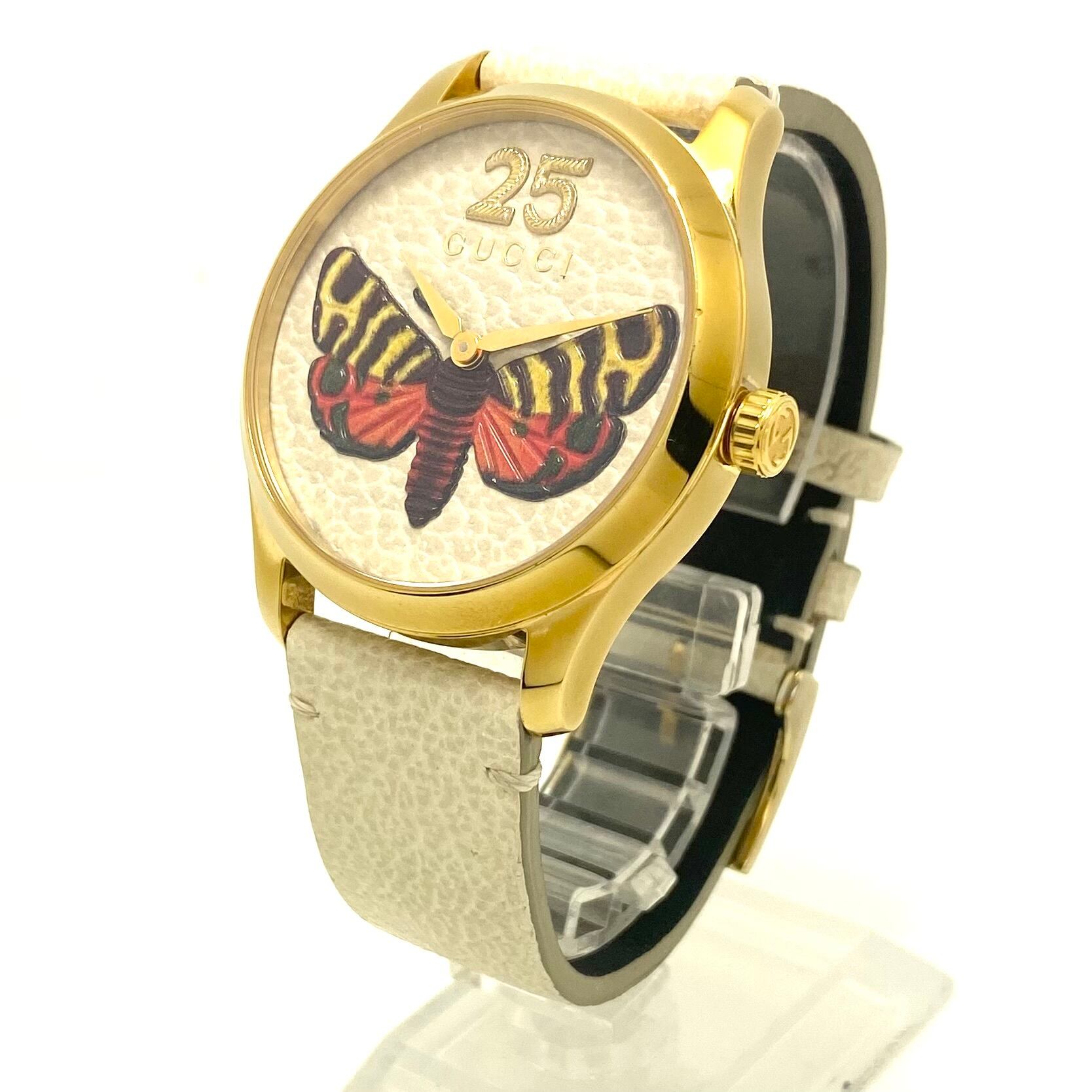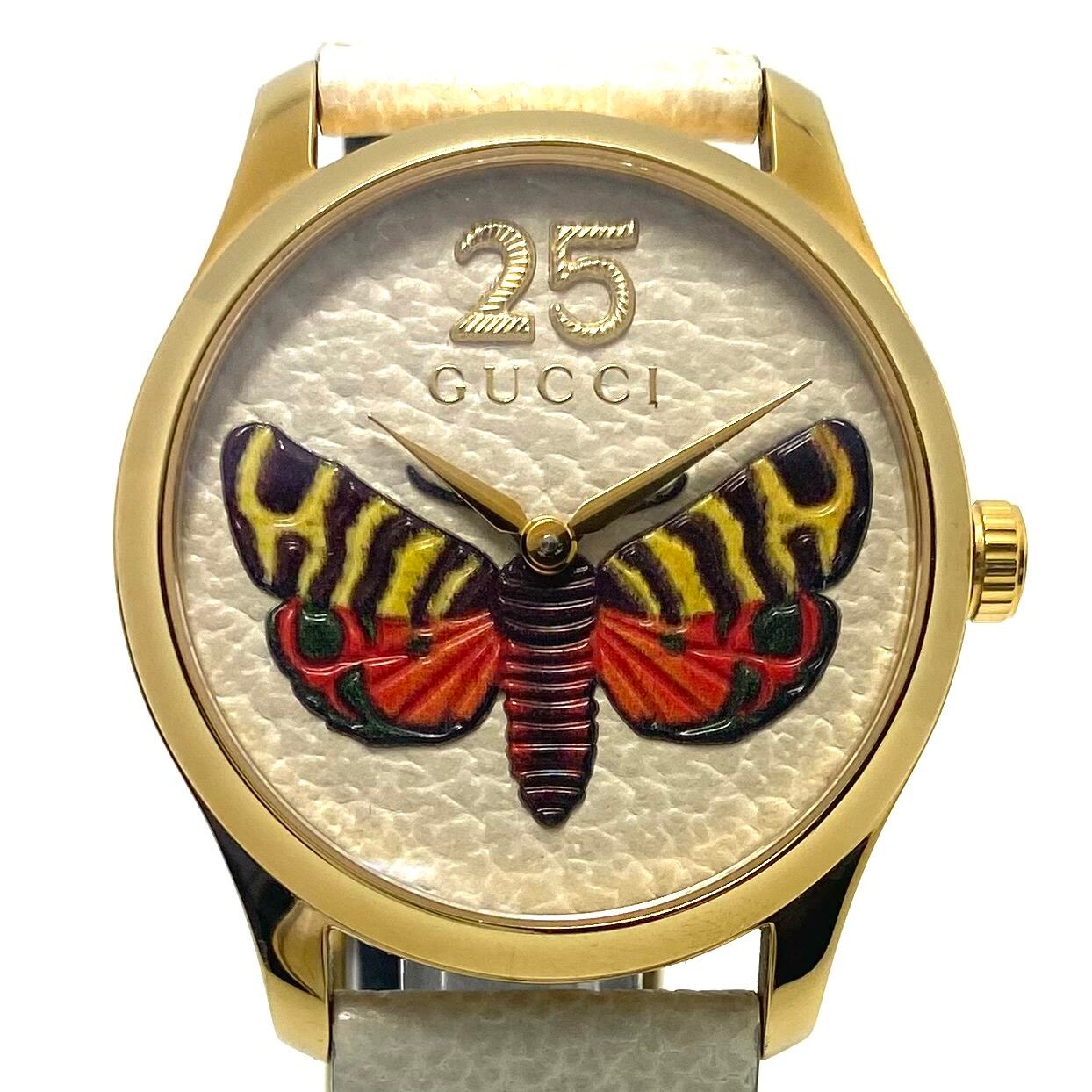 グッチ GUCCI Gタイムレス YA1264062 126.4 バタフライ 蝶モチーフ イエローゴールド ホワイト クォーツ 2針 革ベルト