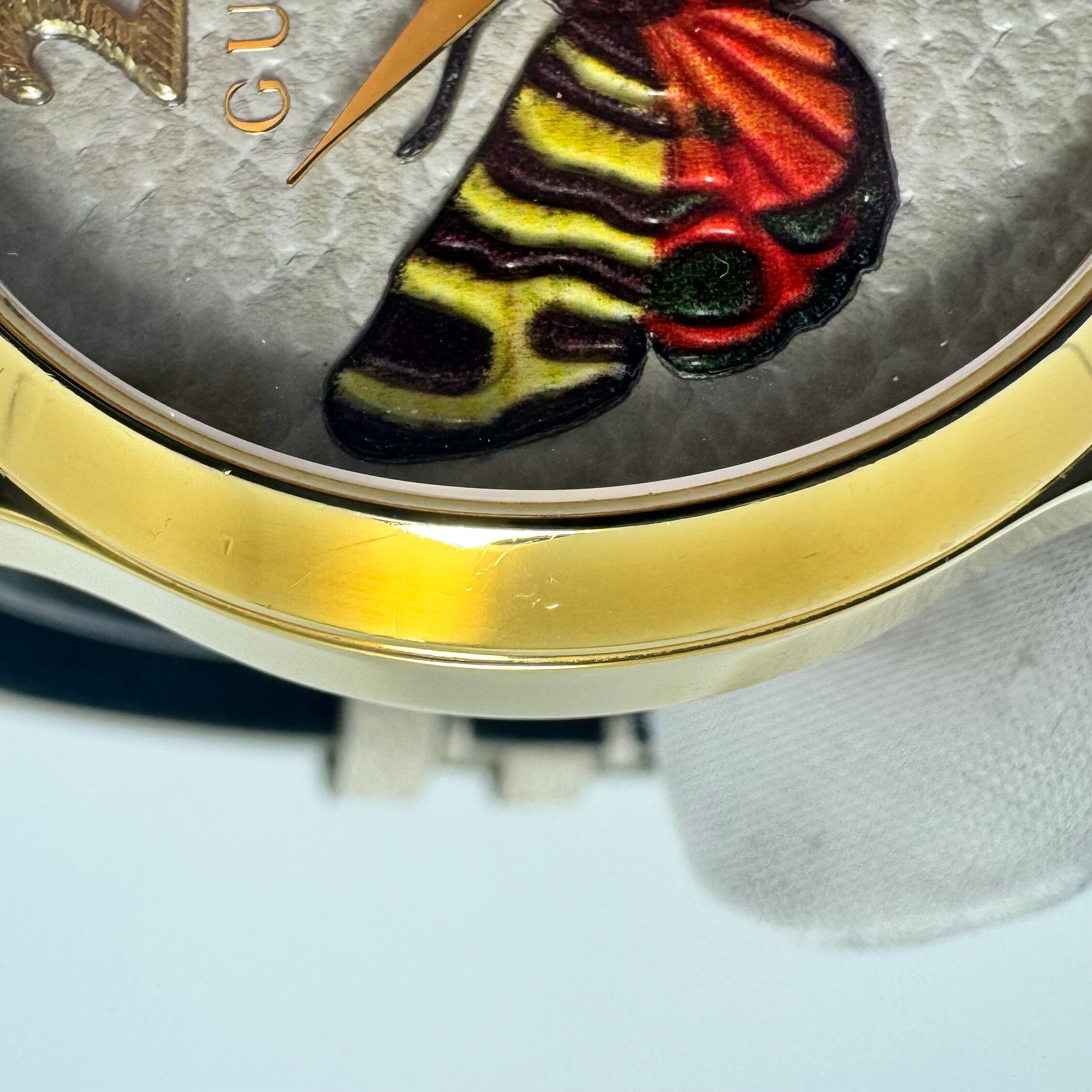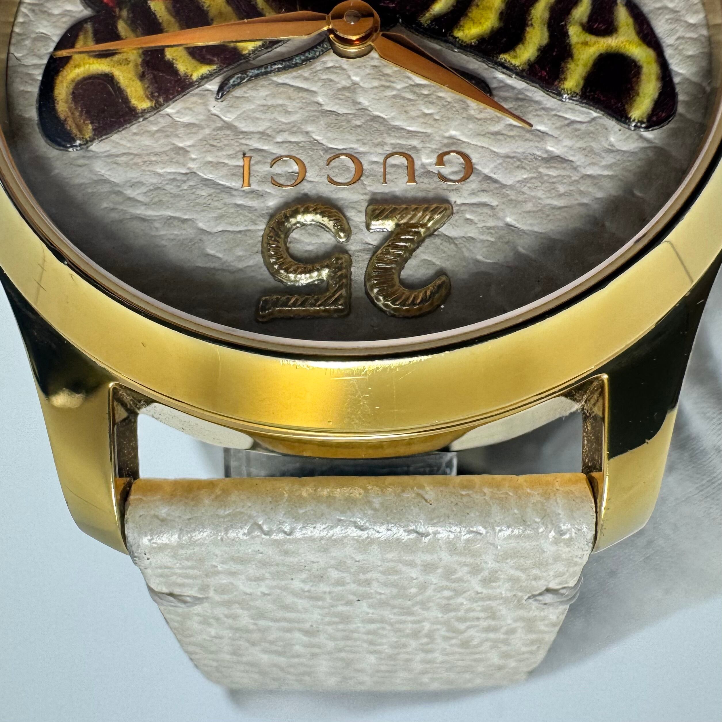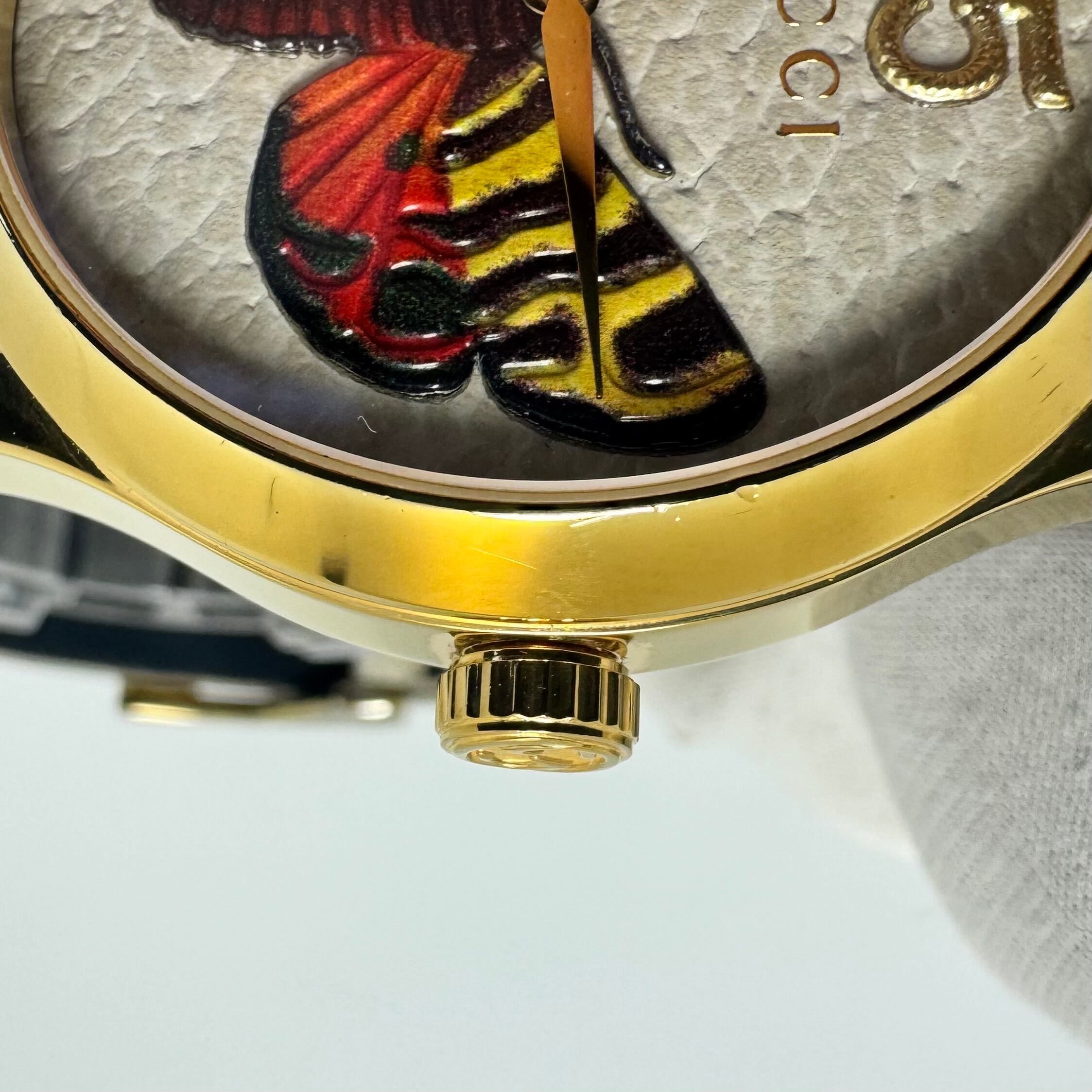 グッチ GUCCI Gタイムレス YA1264062 126.4 バタフライ 蝶モチーフ イエローゴールド ホワイト クォーツ 2針 革ベルト
