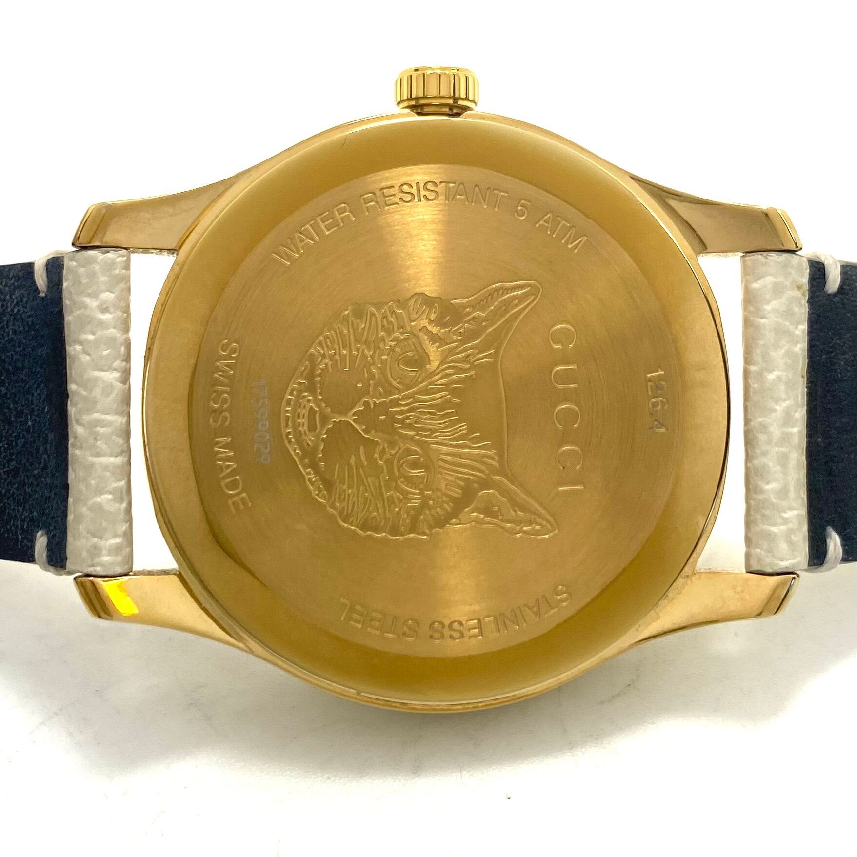 腕時計 メンズ レディース グッチ GUCCI Gタイムレス YA1264062 126.4 バタフライ 蝶モチーフ イエローゴールド ホワイト クォーツ 2針 革ベルト ユニセックス