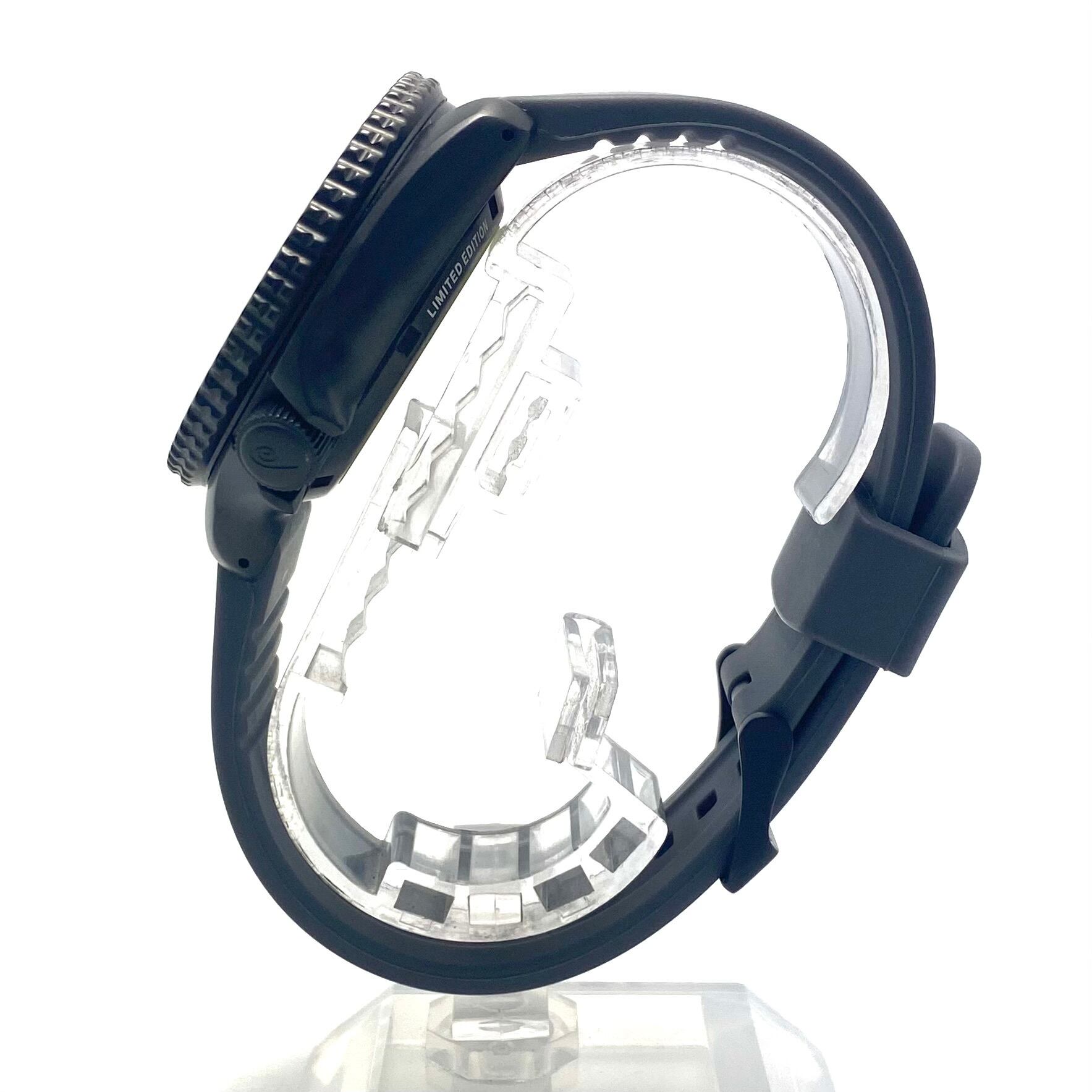 ムーブメントには信頼性の高い自動巻キャリバー4R36を搭載し、デイデイト表示や10気圧防水など日常使いにも十分対応。裏蓋はシースルーバック仕様となっており、限定モデルならではの特別感と機械式時計の魅力を同時に楽しめます。