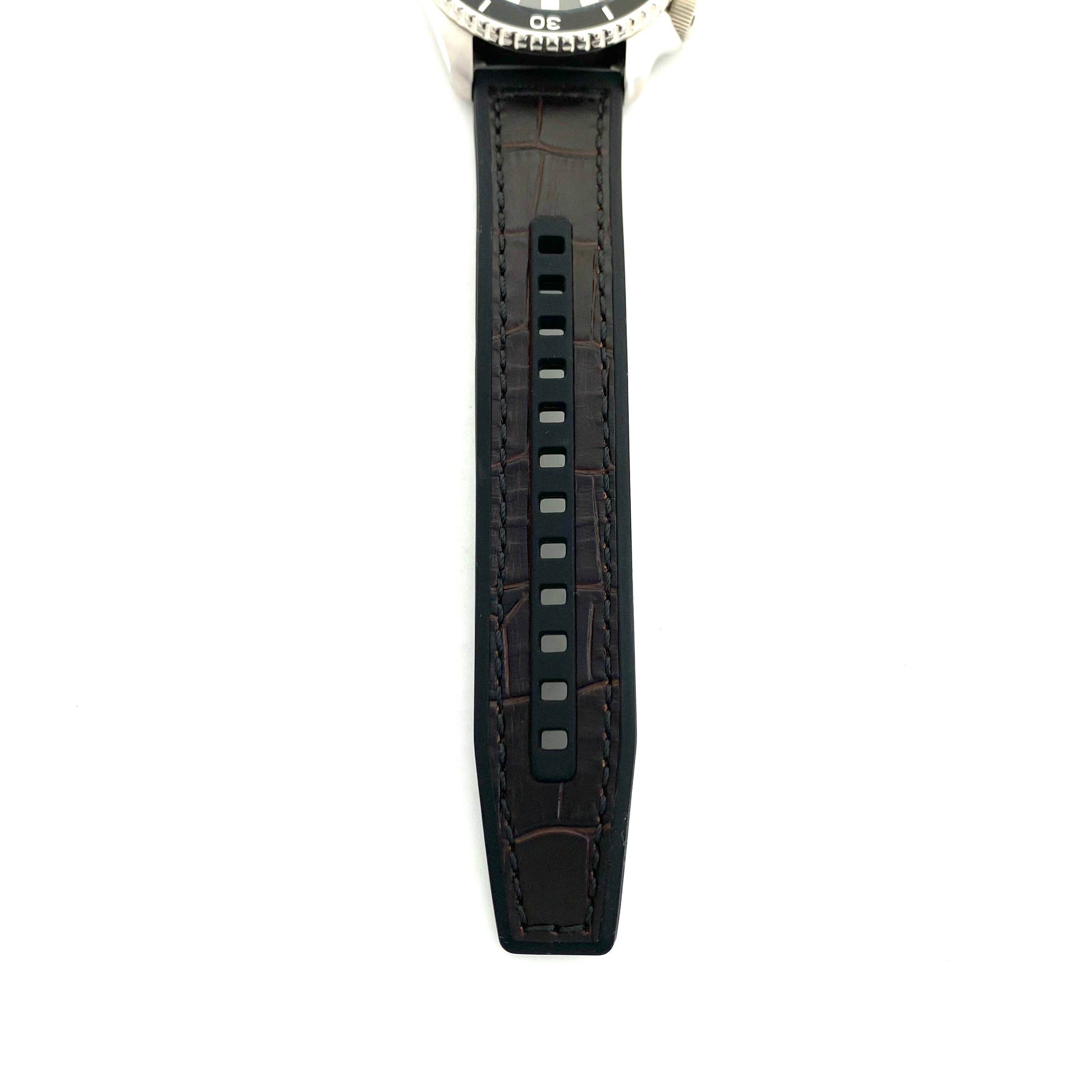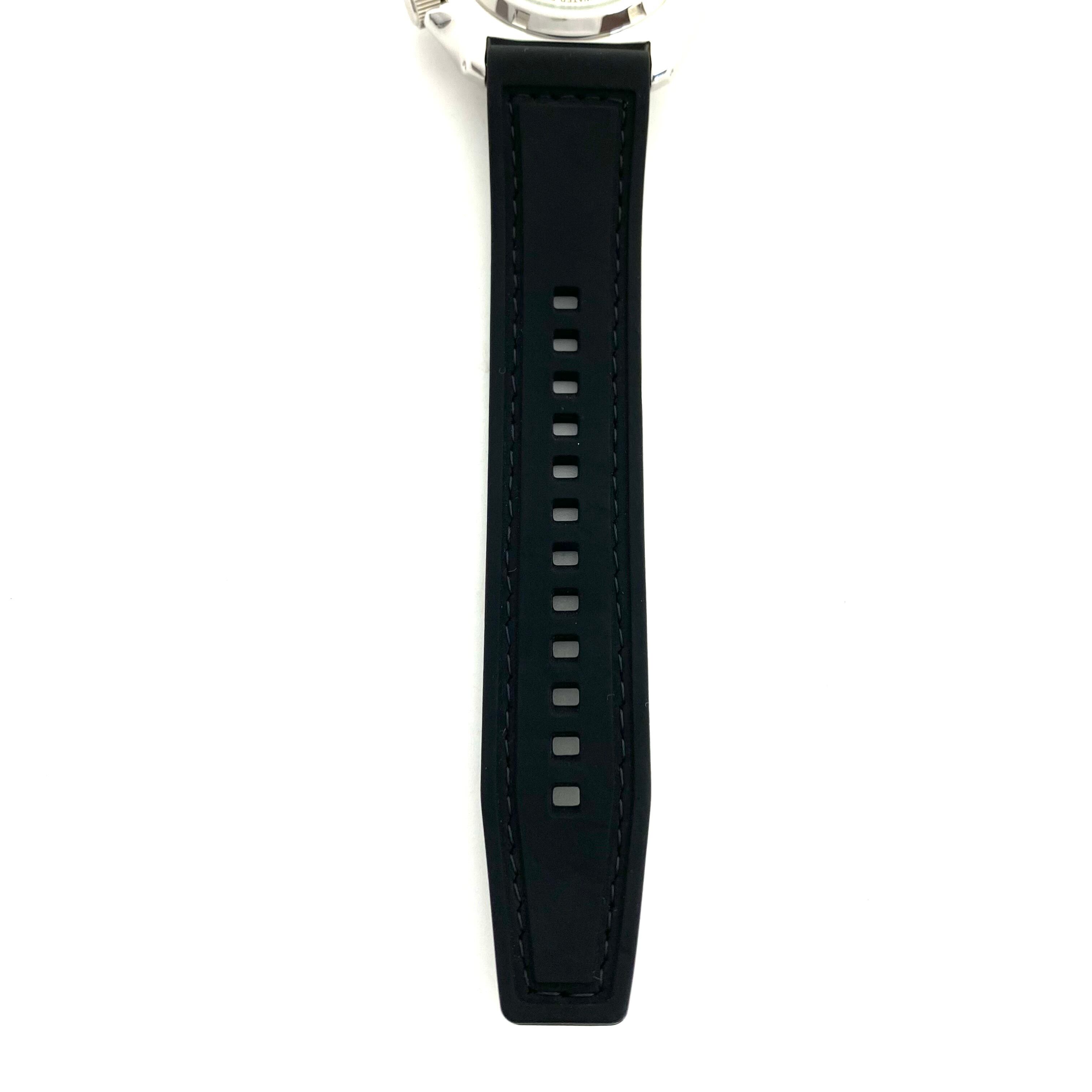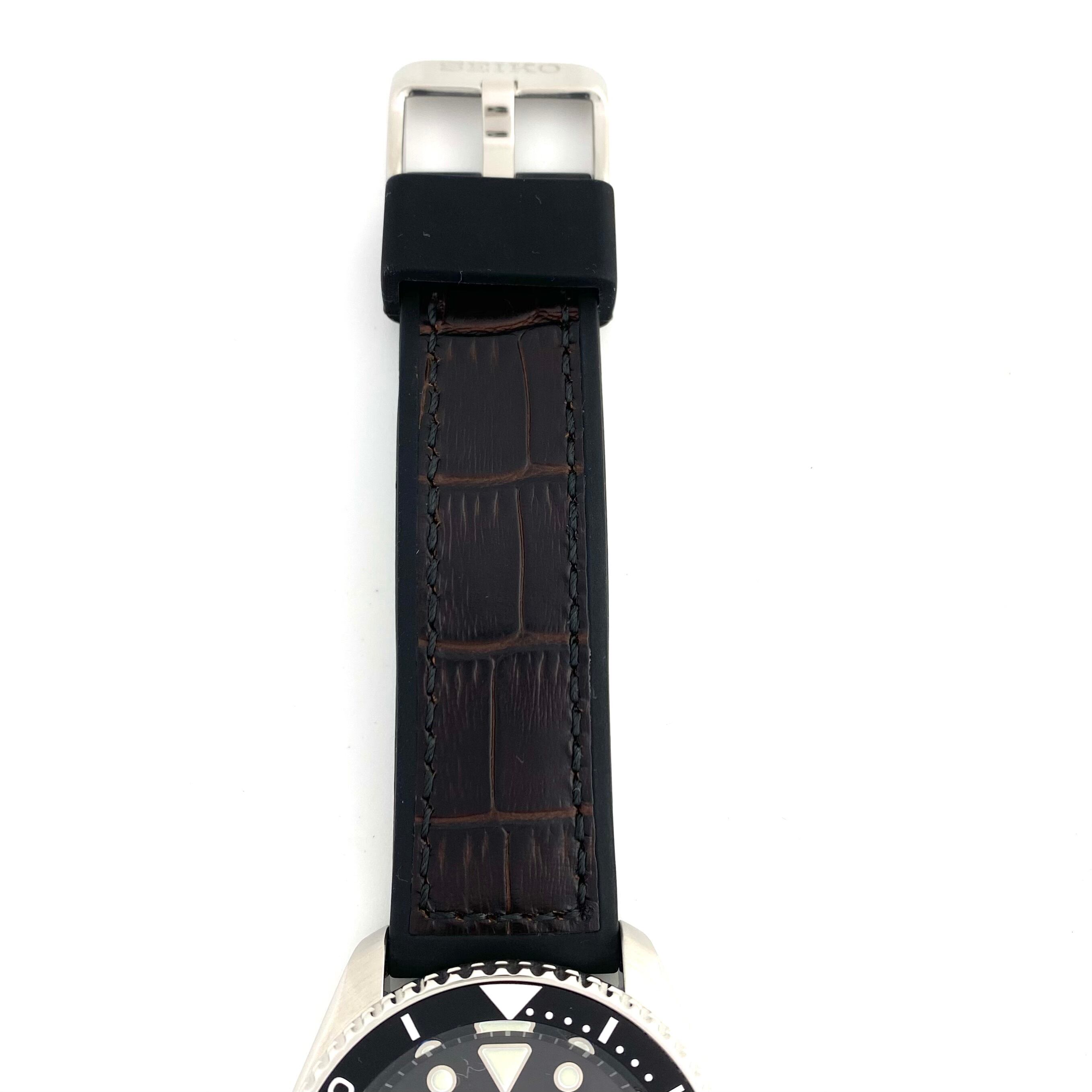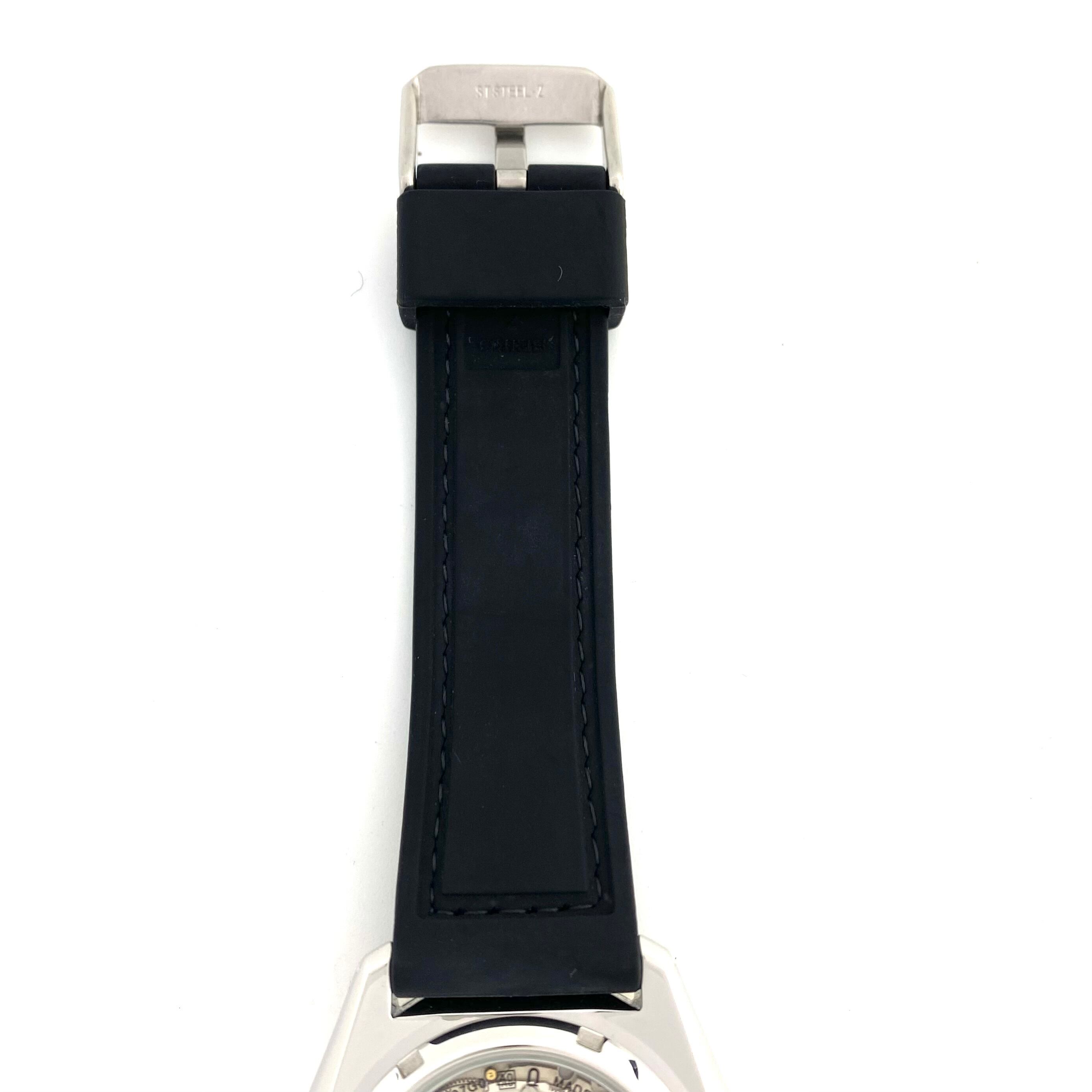 裏蓋はシースルーバック仕様となっており、機械式ムーブメントの鼓動を視覚的にも楽しめるのが魅力。革/ラバーベルトとの組み合わせにより、スポーティさの中にも落ち着いた大人の雰囲気を演出します。