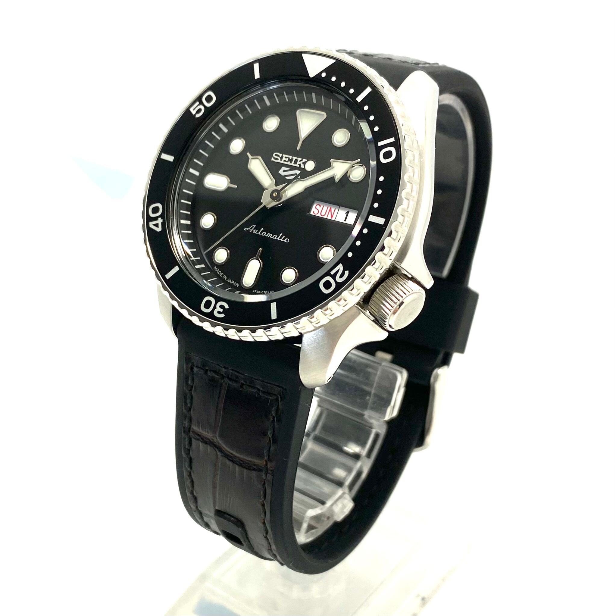【美品】腕時計 メンズ セイコー SEIKO セイコー5 SBSA027 4R36-07G0 自動巻 黒 裏スケ デイデイト(日本語・英語) 革/ラバーベルト 10気圧防水