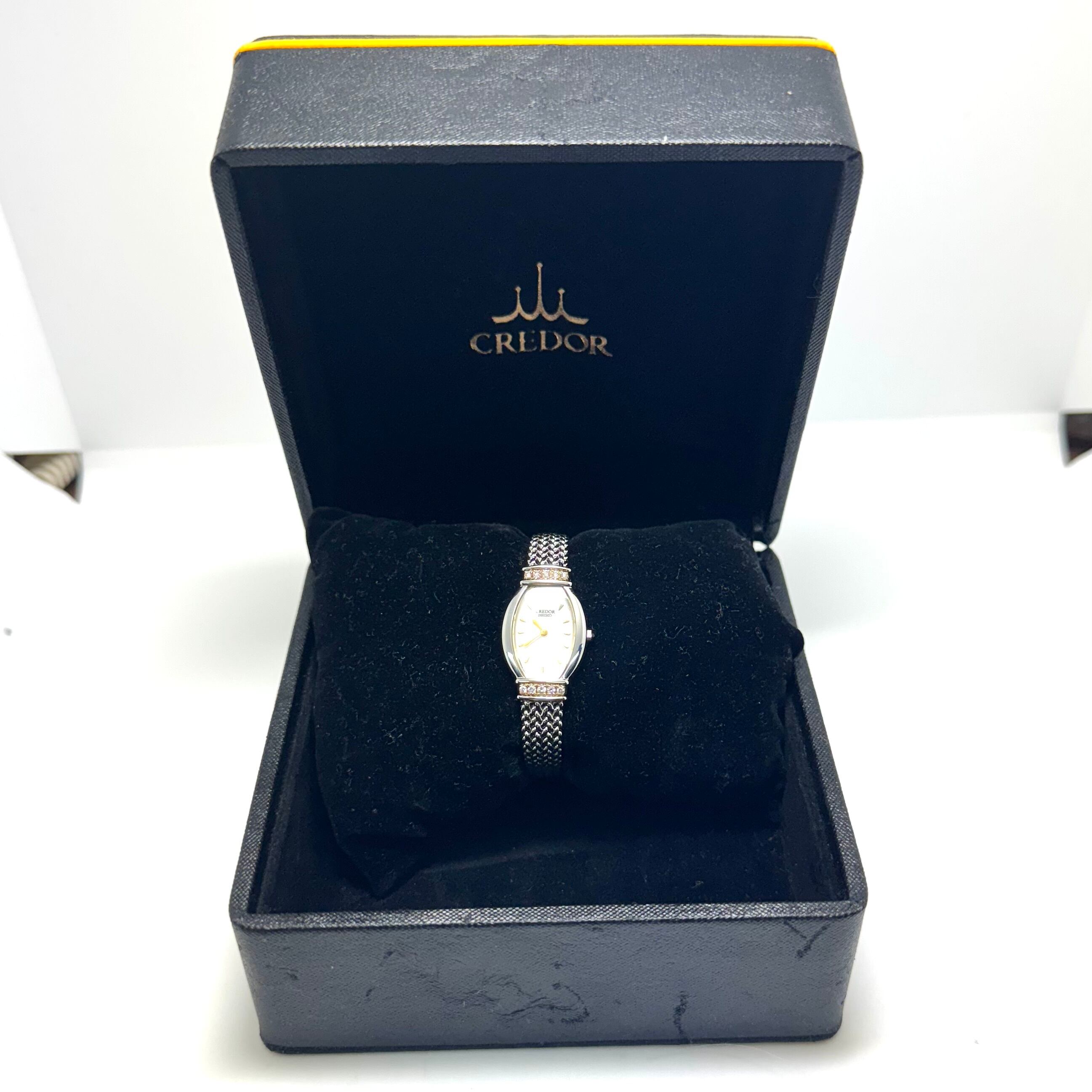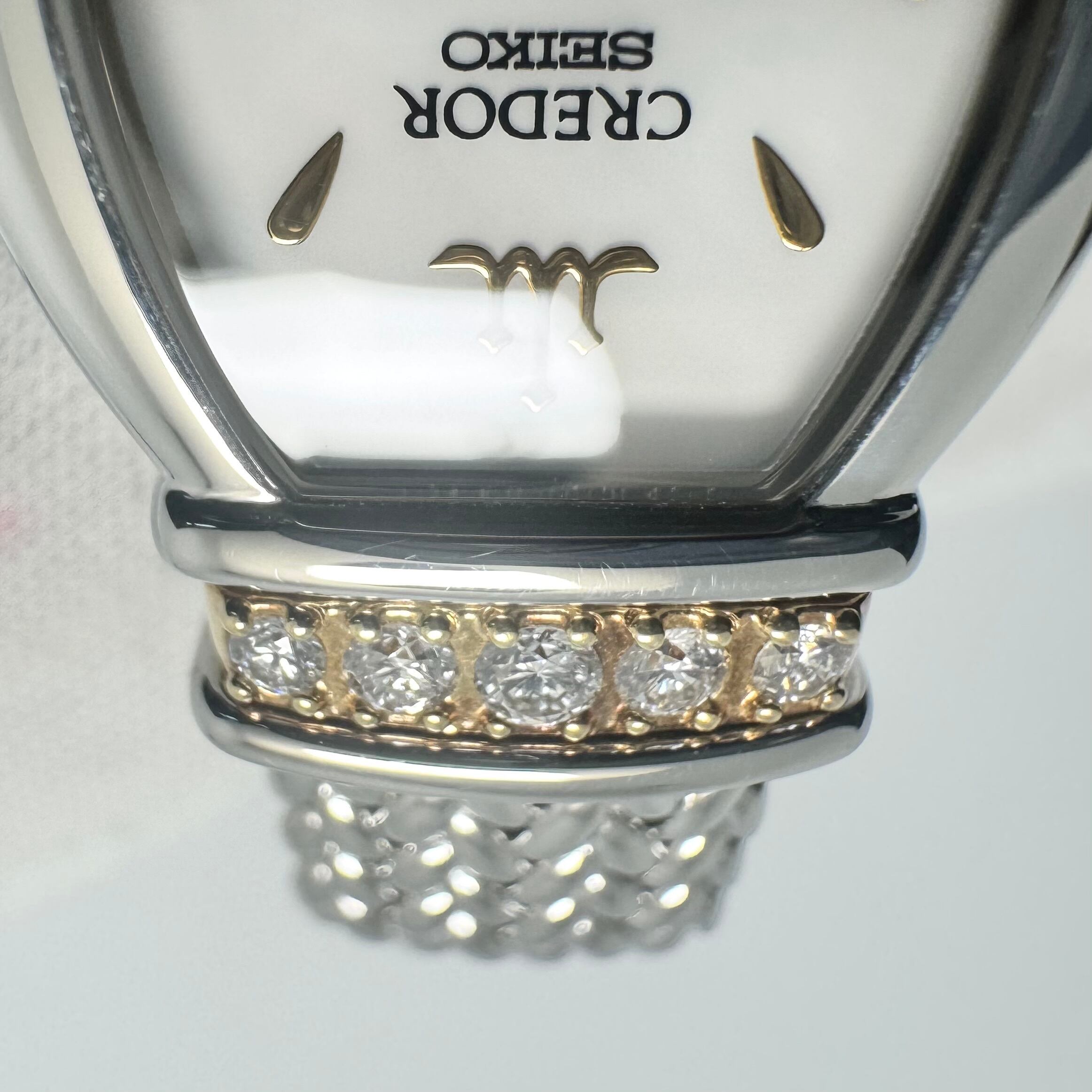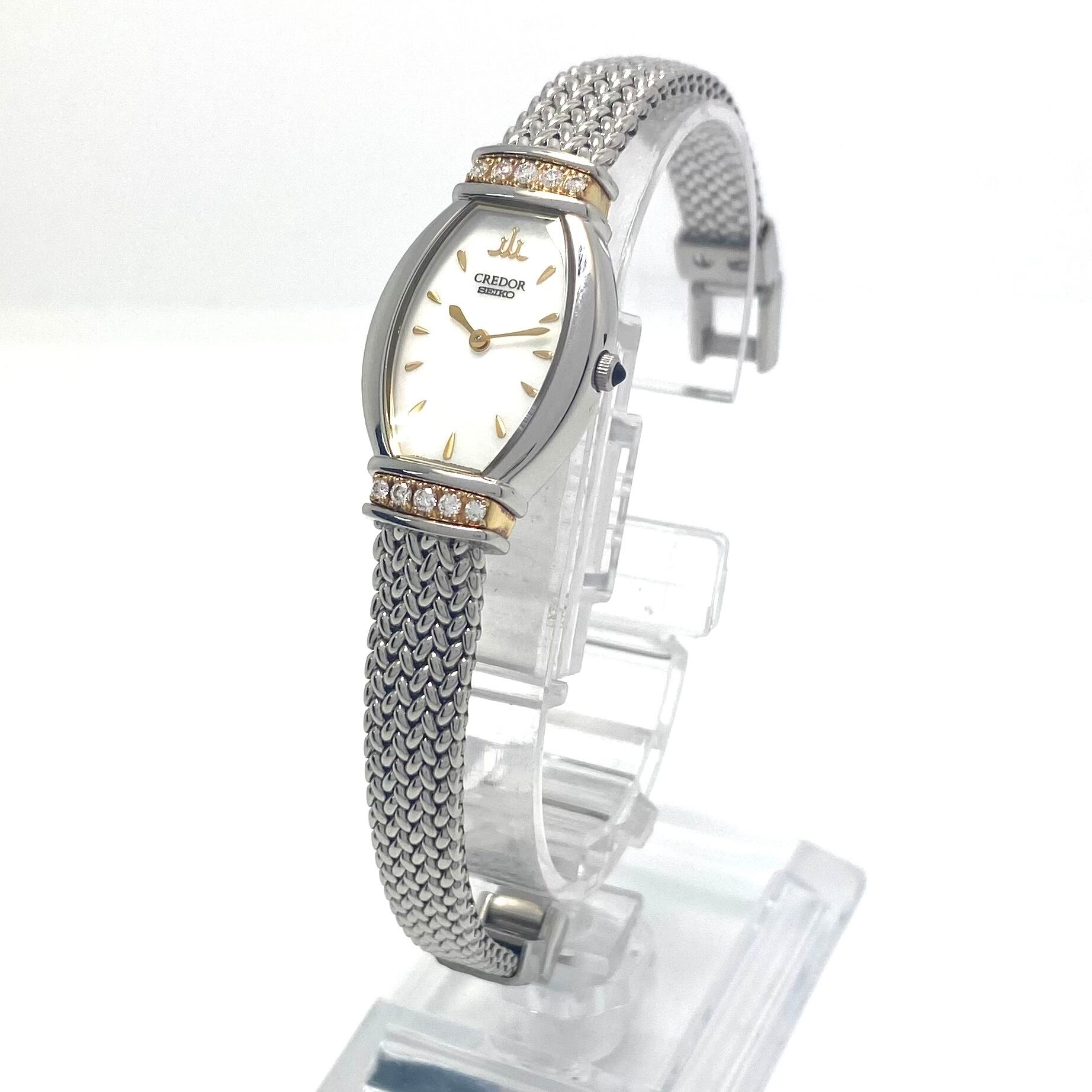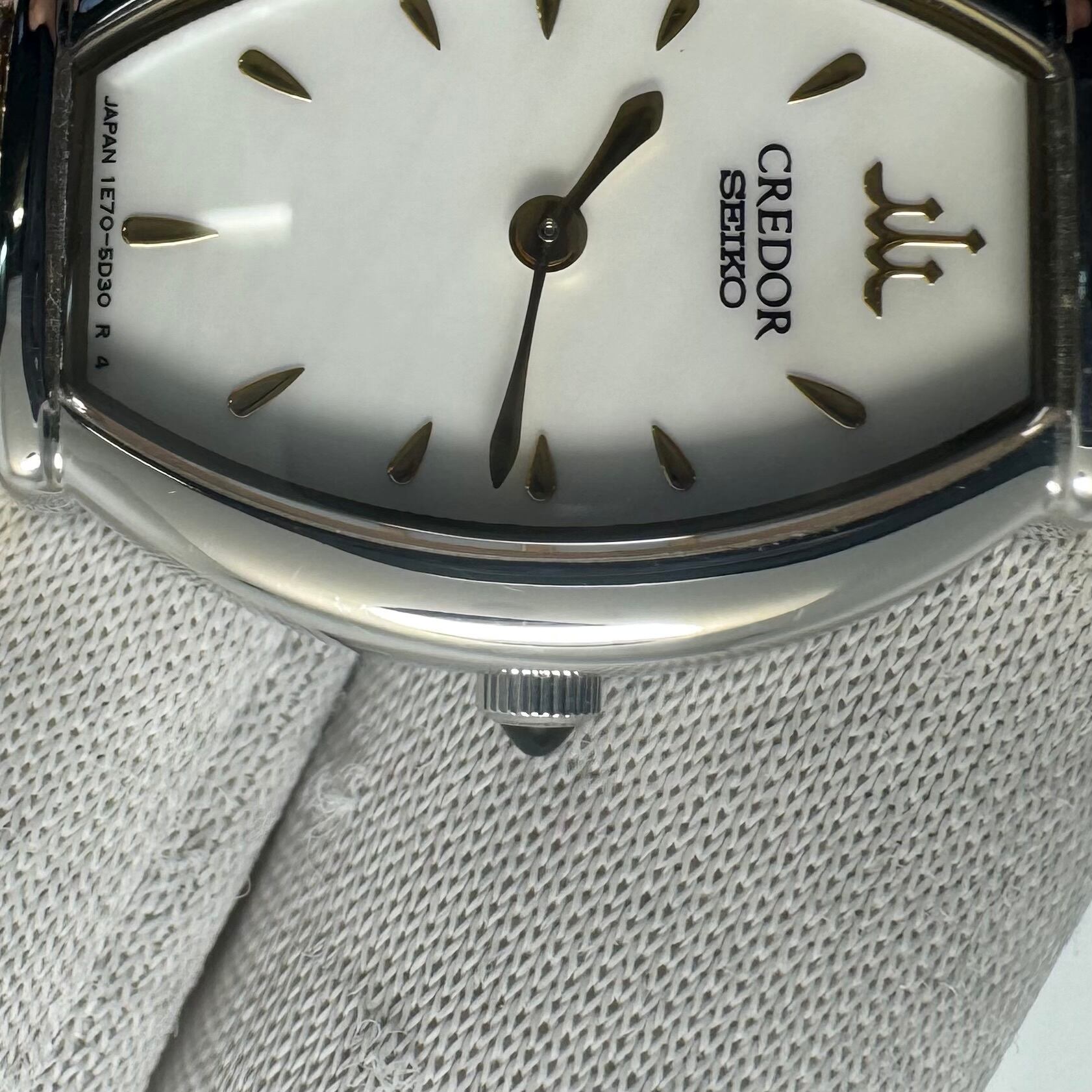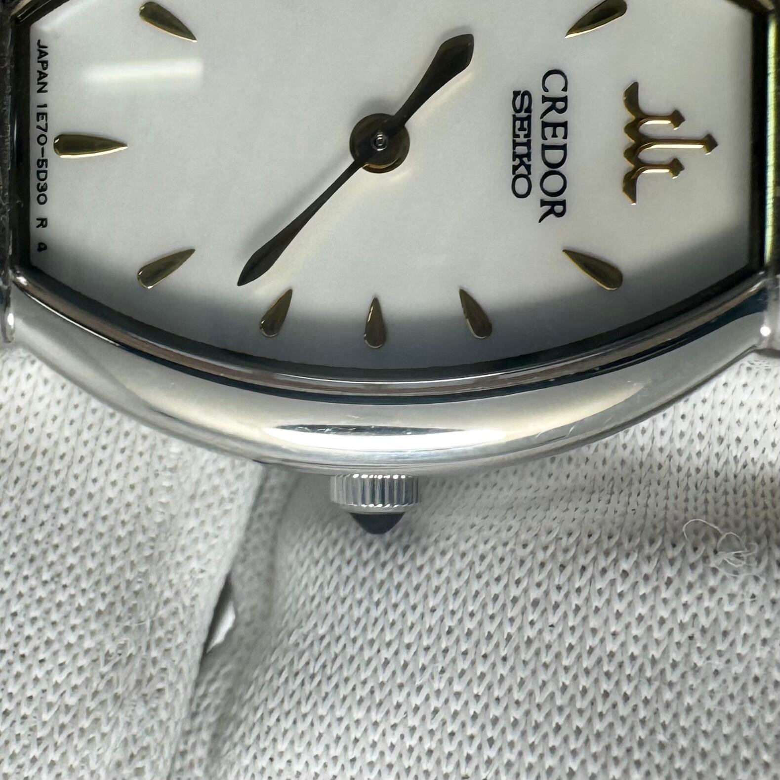 【美品・電池交換済み】腕時計 レディース セイコー SEIKO クレドール 1E70-3B90 クォーツ ホワイトシェル 18KT/SS ダイヤラグ 2針