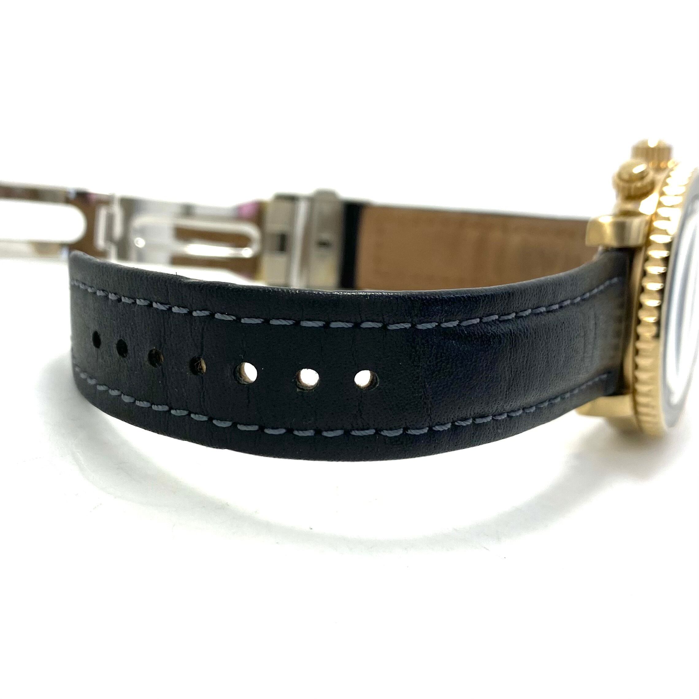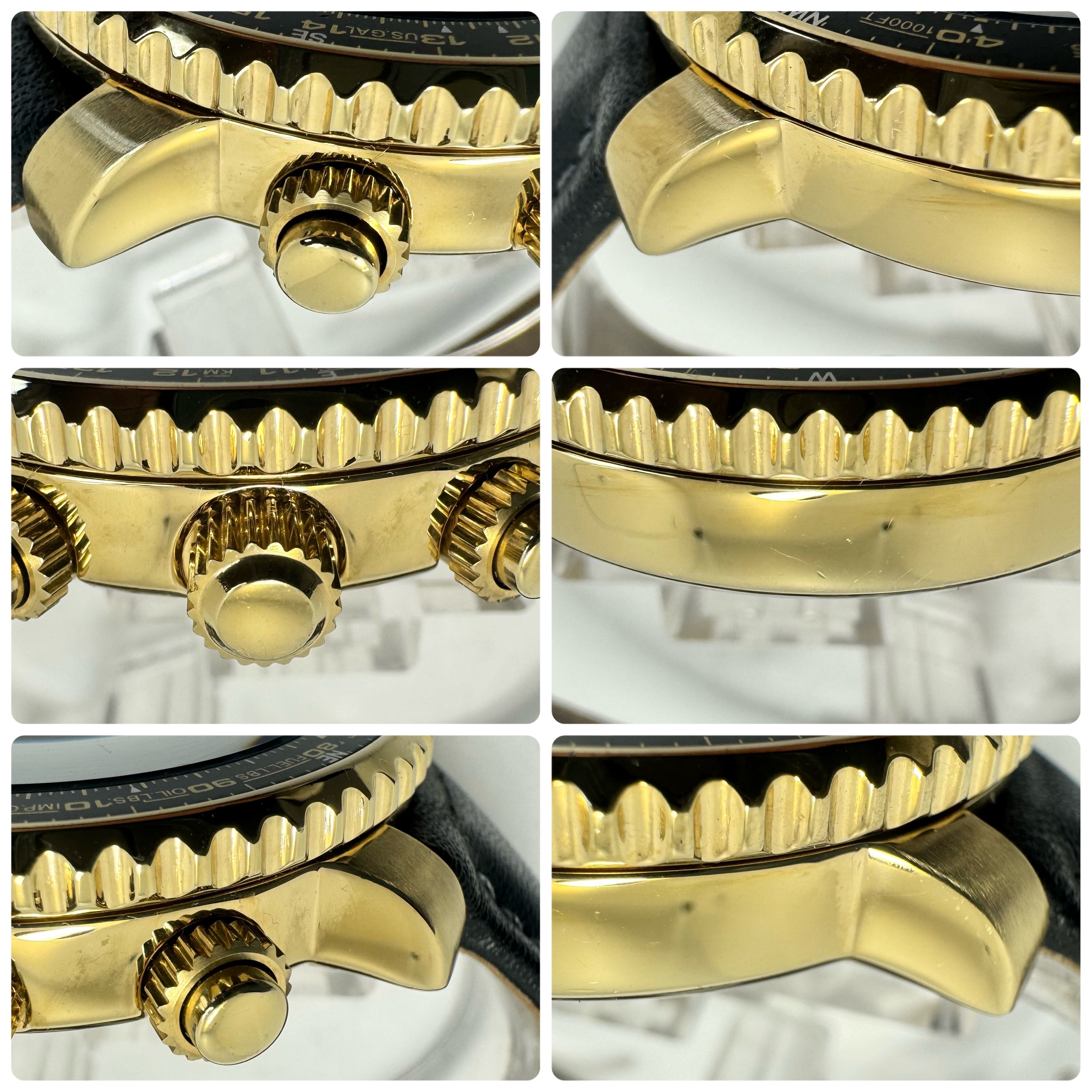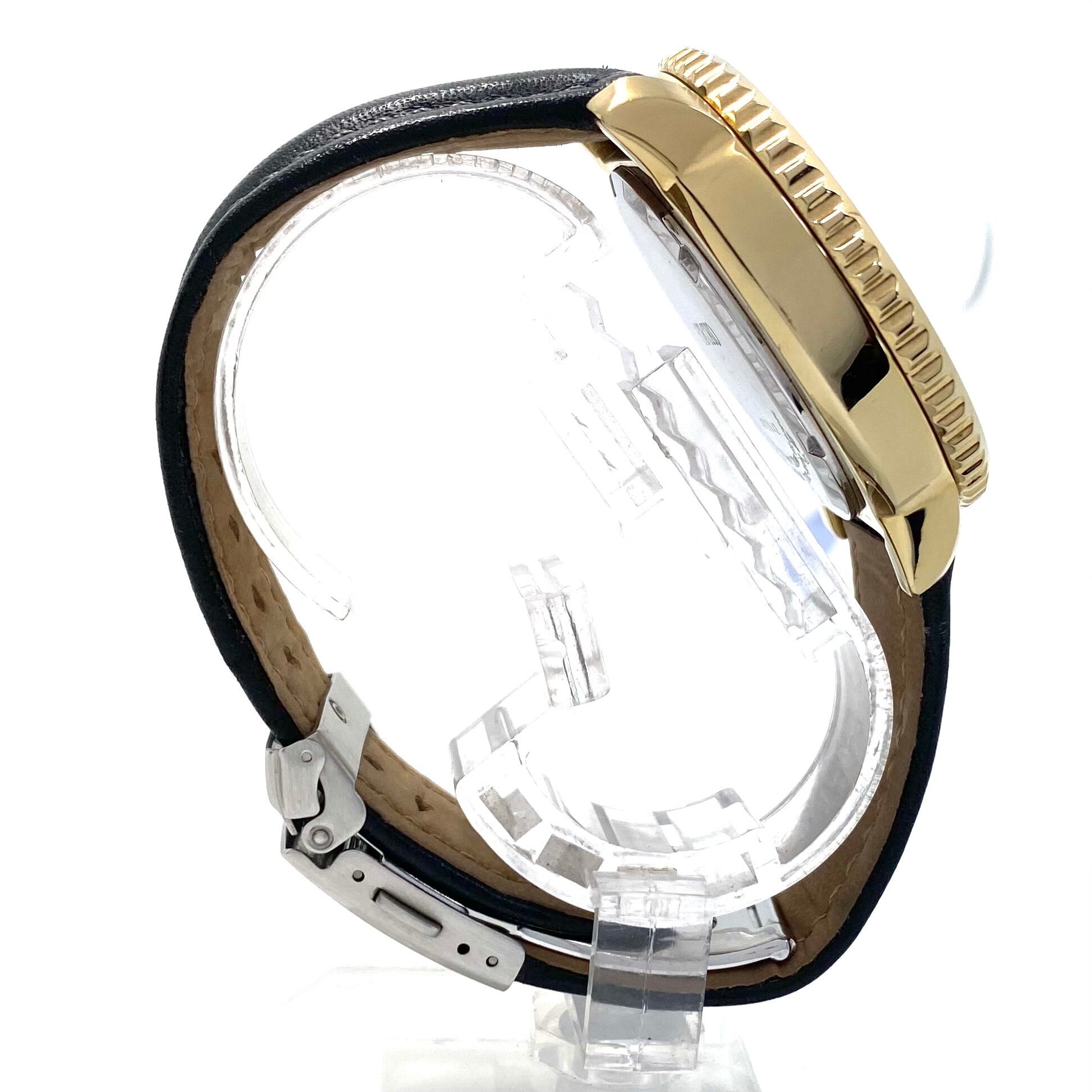 フェイス:ガラス面に若干のスレ、文字盤にわずかなホコリがあります。ベゼルに極小のスレ、ケース及び裏蓋に若干のスレがあります。