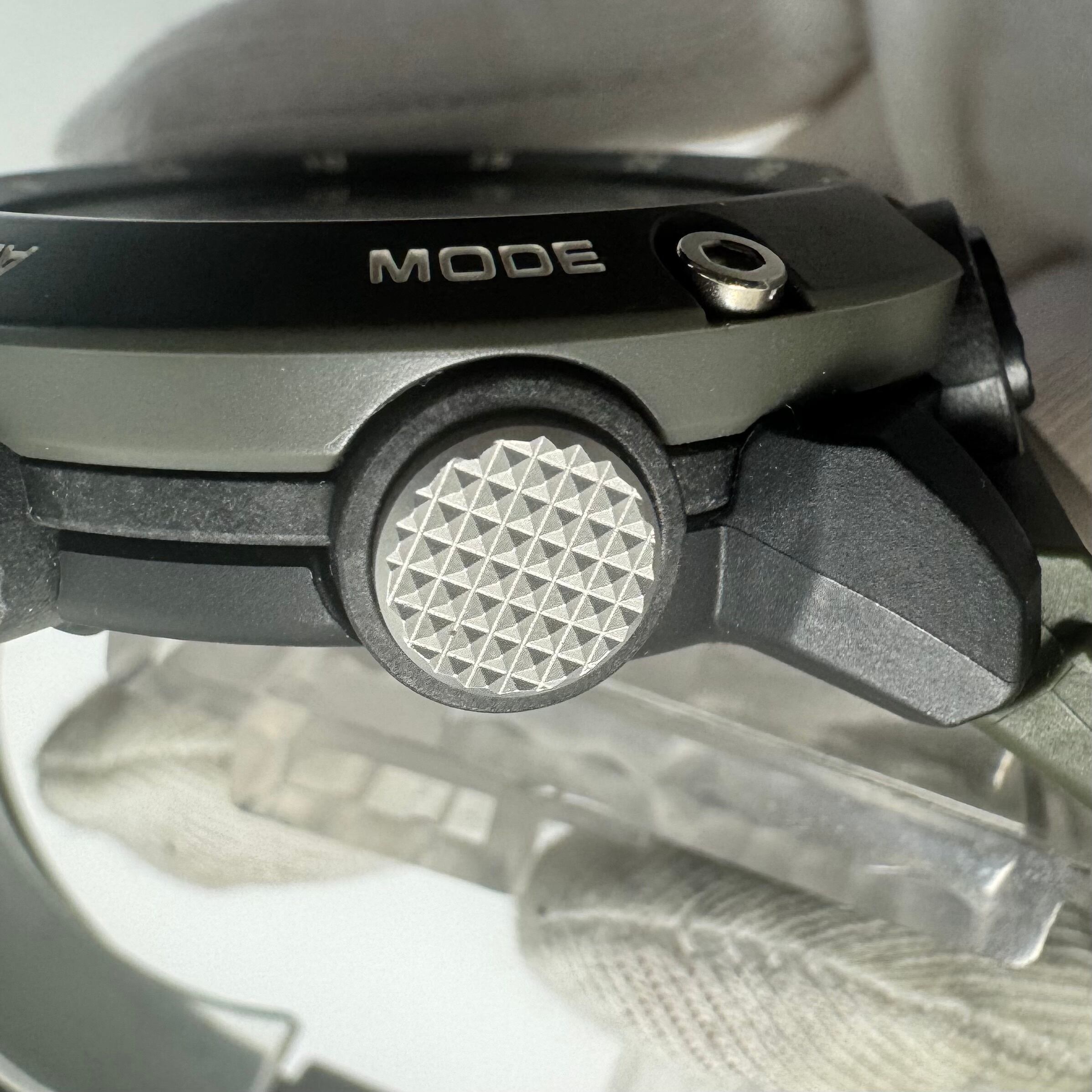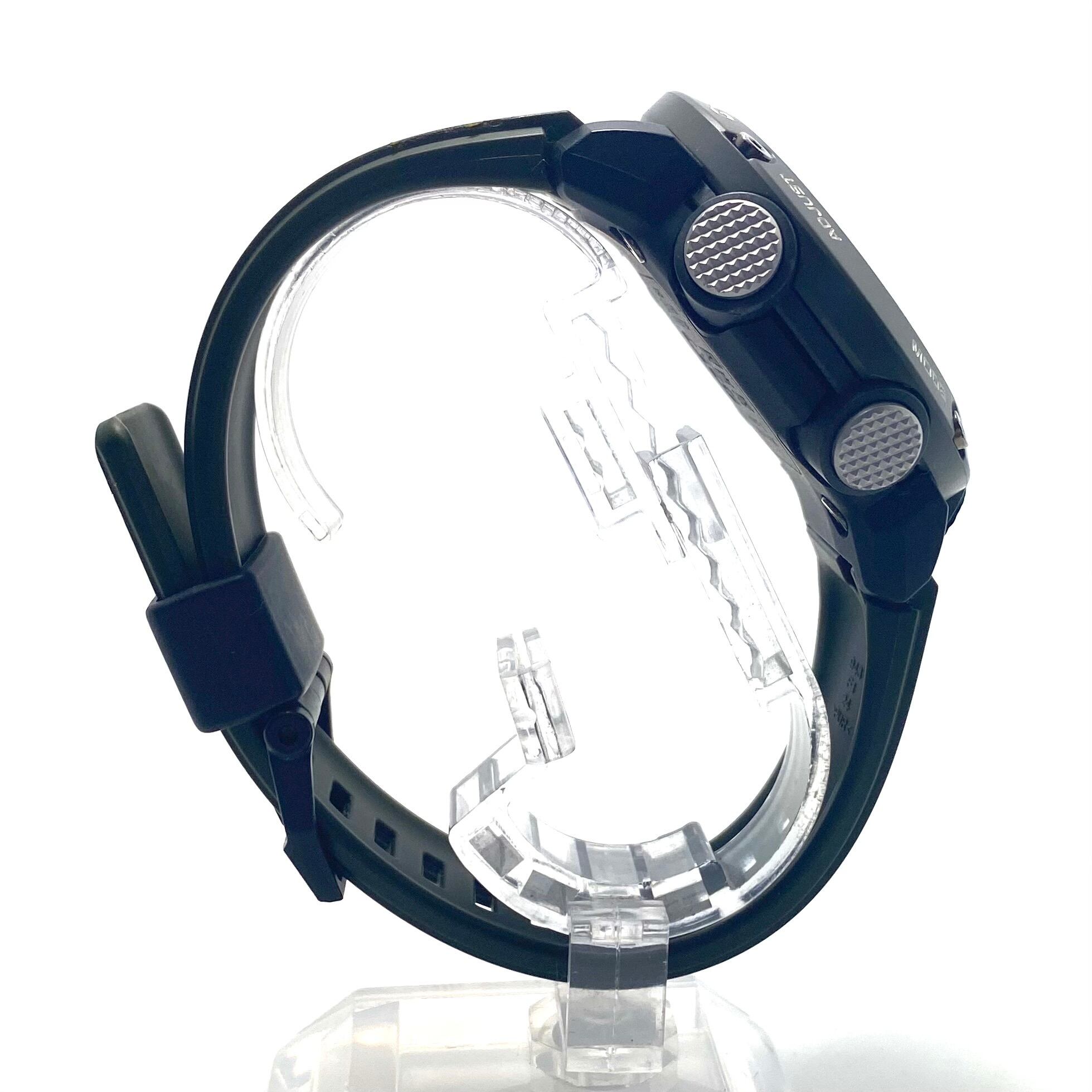 アナログとデジタルを融合したアナデジ表示に加え、20気圧防水やワールドタイム、クロノグラフ、アラームなど実用性の高い機能を多数搭載。樹脂×カーボン素材によるタフなケース構造で、日常使いからアクティブシーンまで幅広く活躍します。