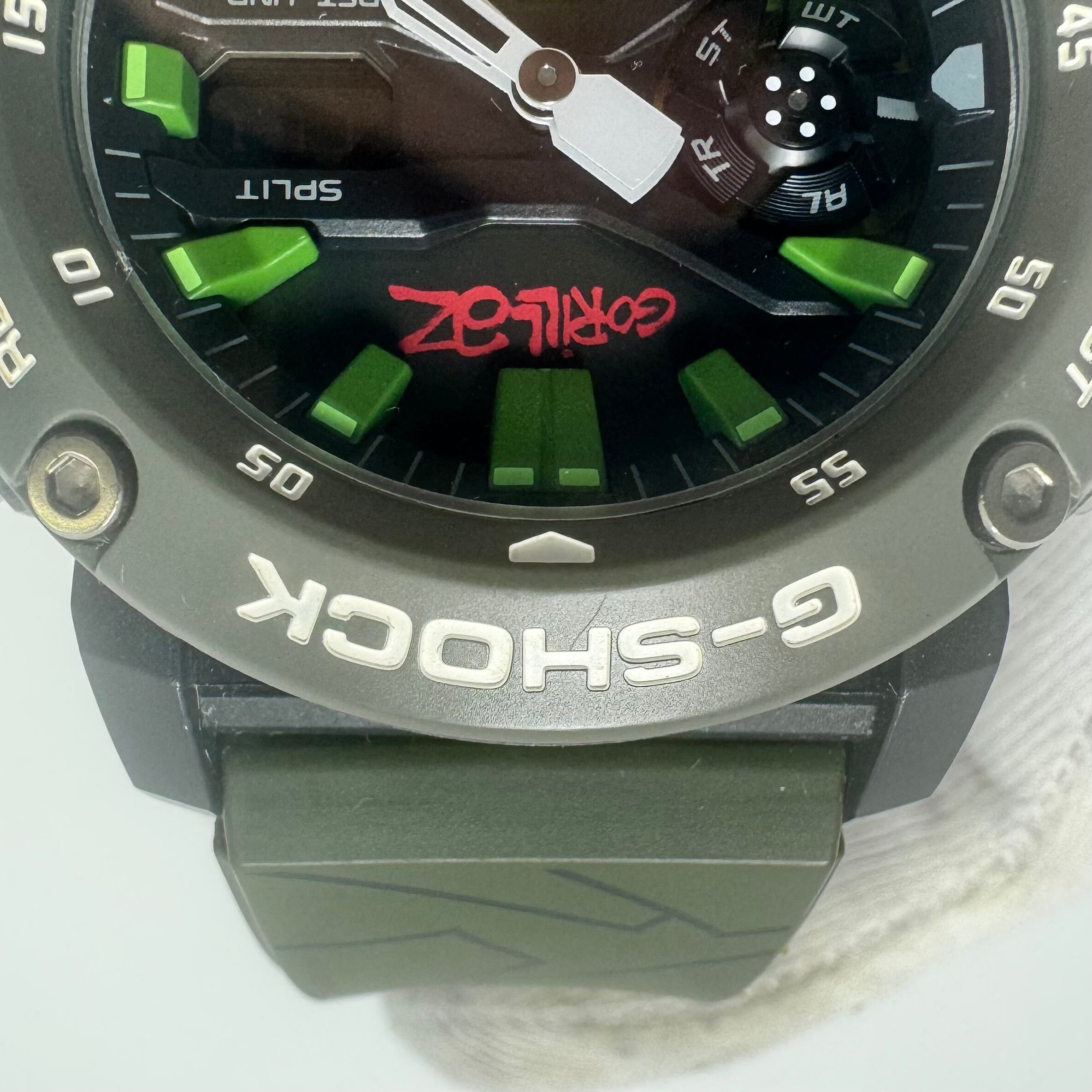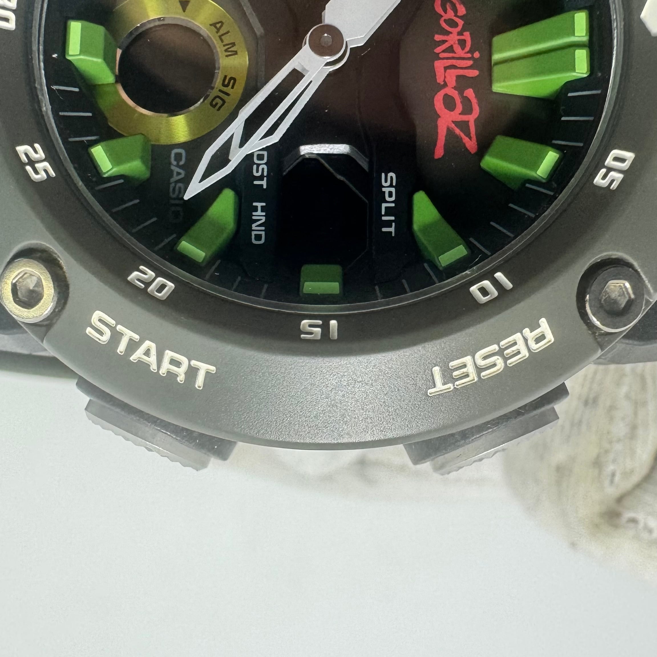 G-SHOCKの中でも軽量かつ高い耐衝撃性を備えたGA-2000シリーズをベースに、Gorillazのアートワークを彷彿とさせるグリーン基調のカラーリングを採用した特別仕様です。