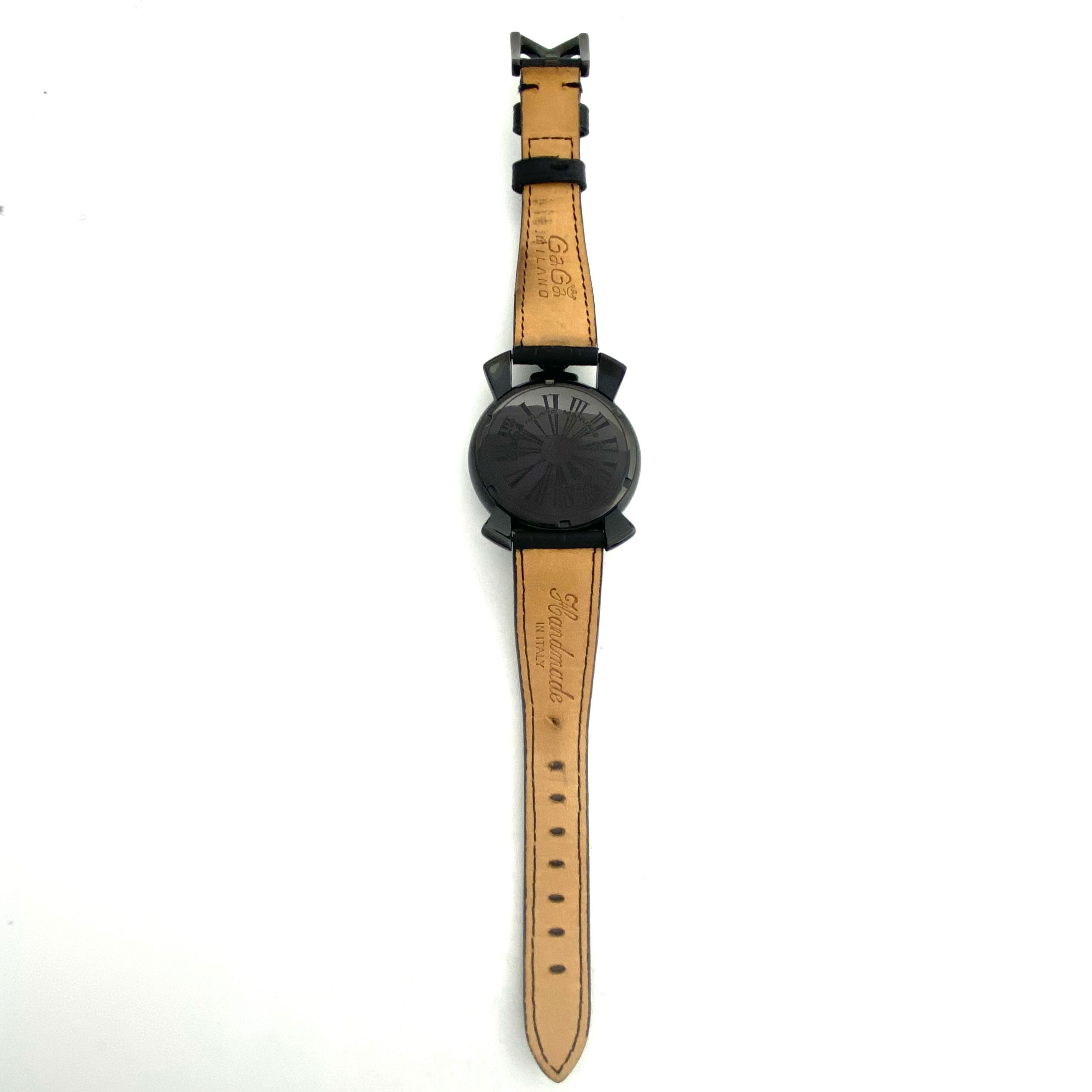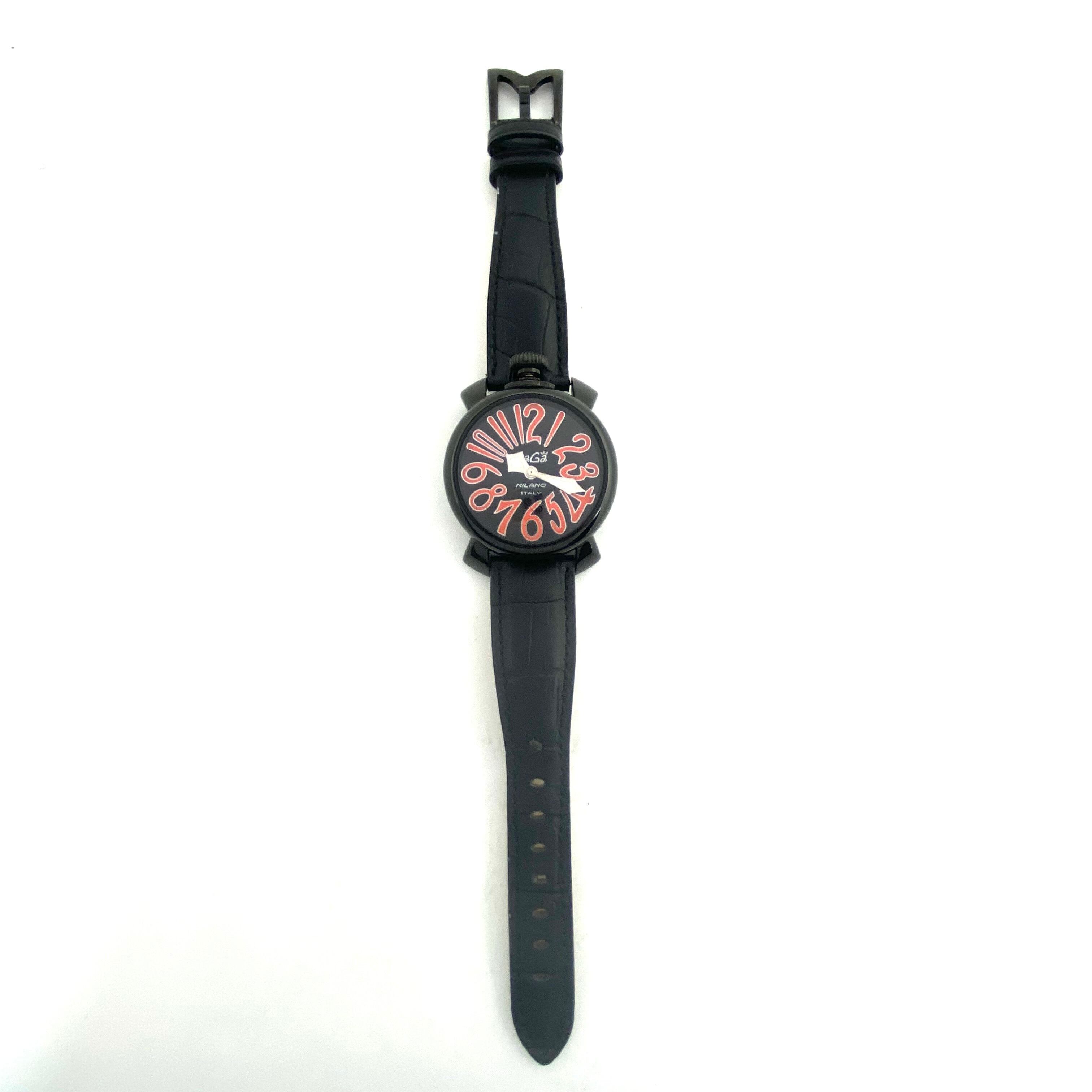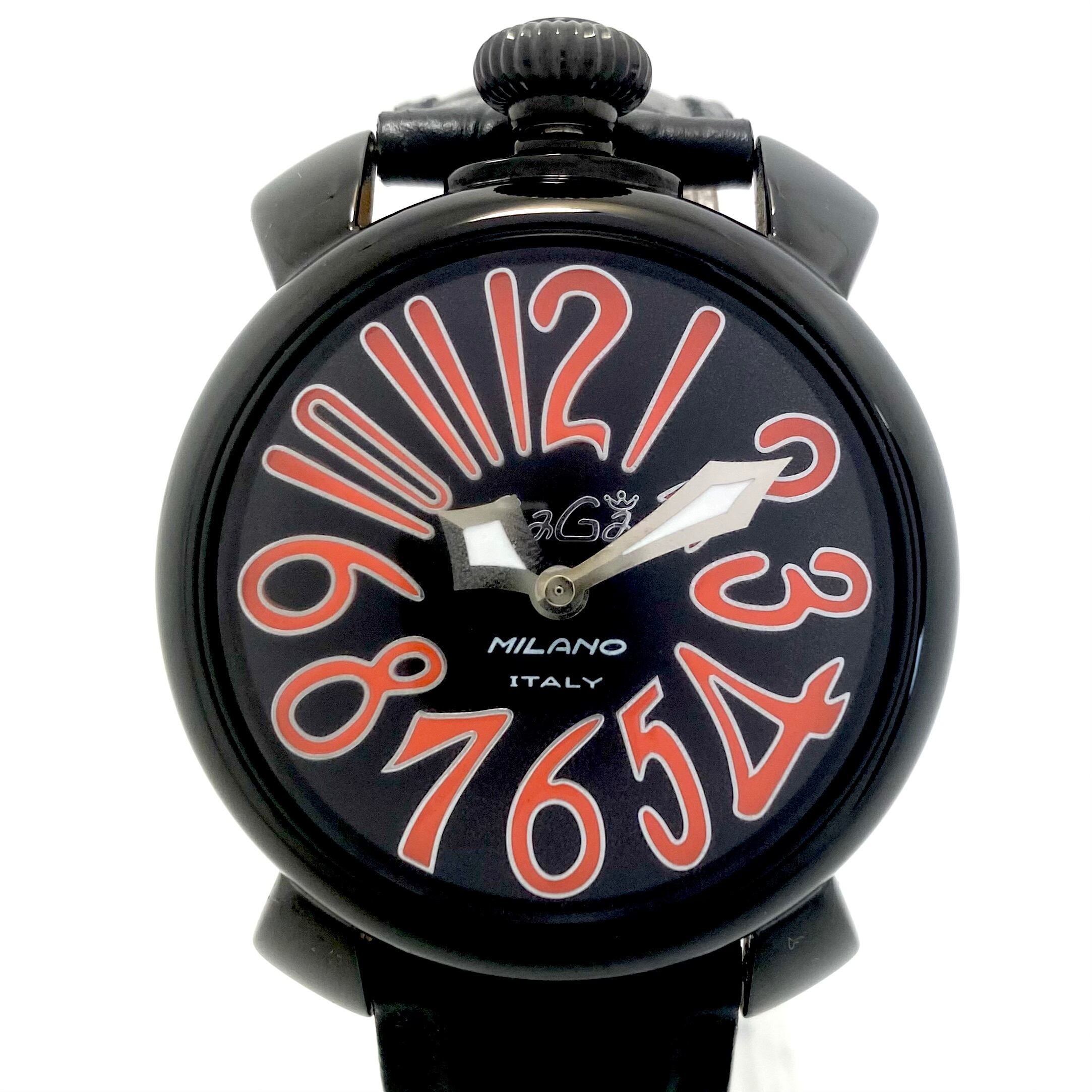 【美品】腕時計 メンズ ガガミラノ GaGa MILANO MANUALE 40MM 5020 クォーツ 黒 2針 革ベルト
