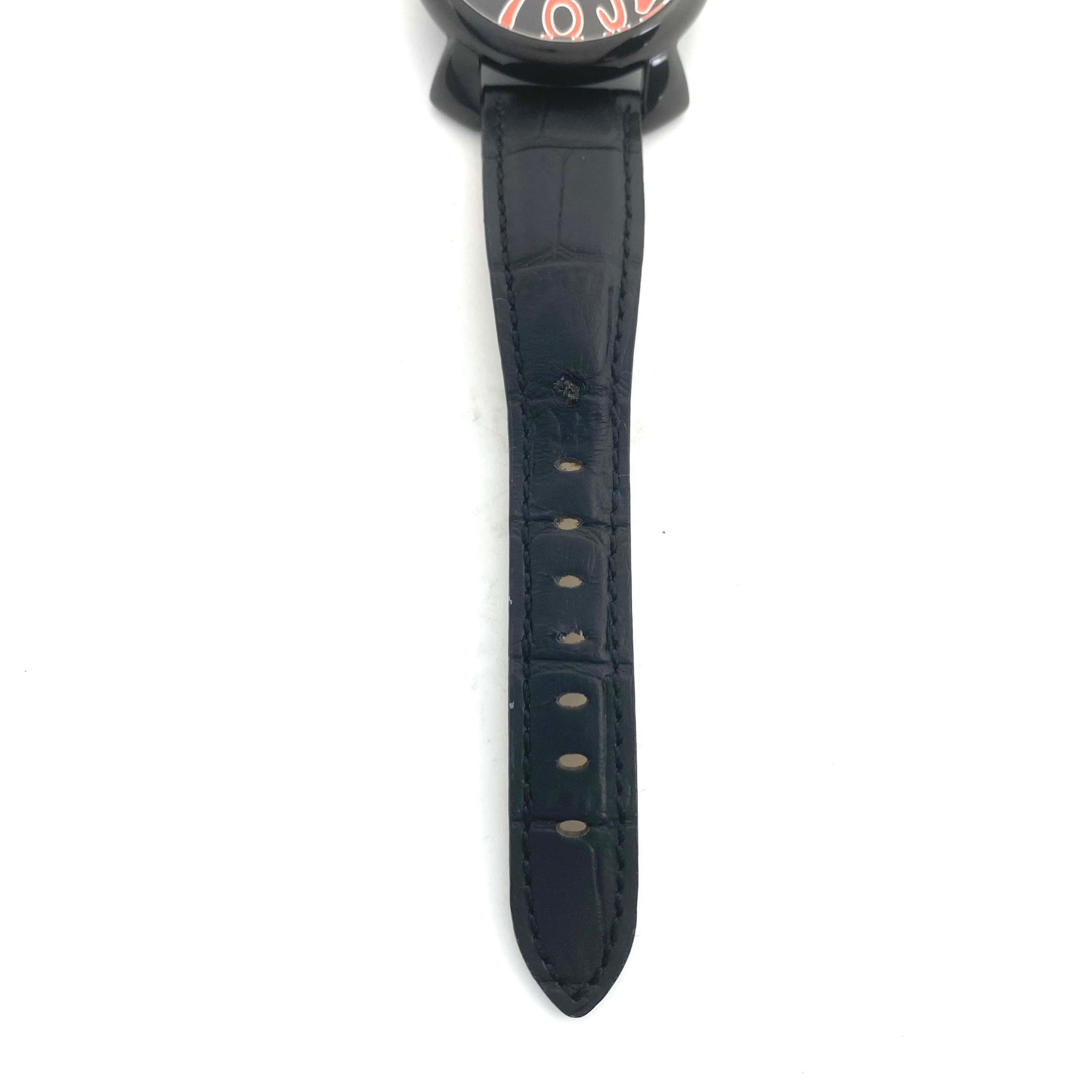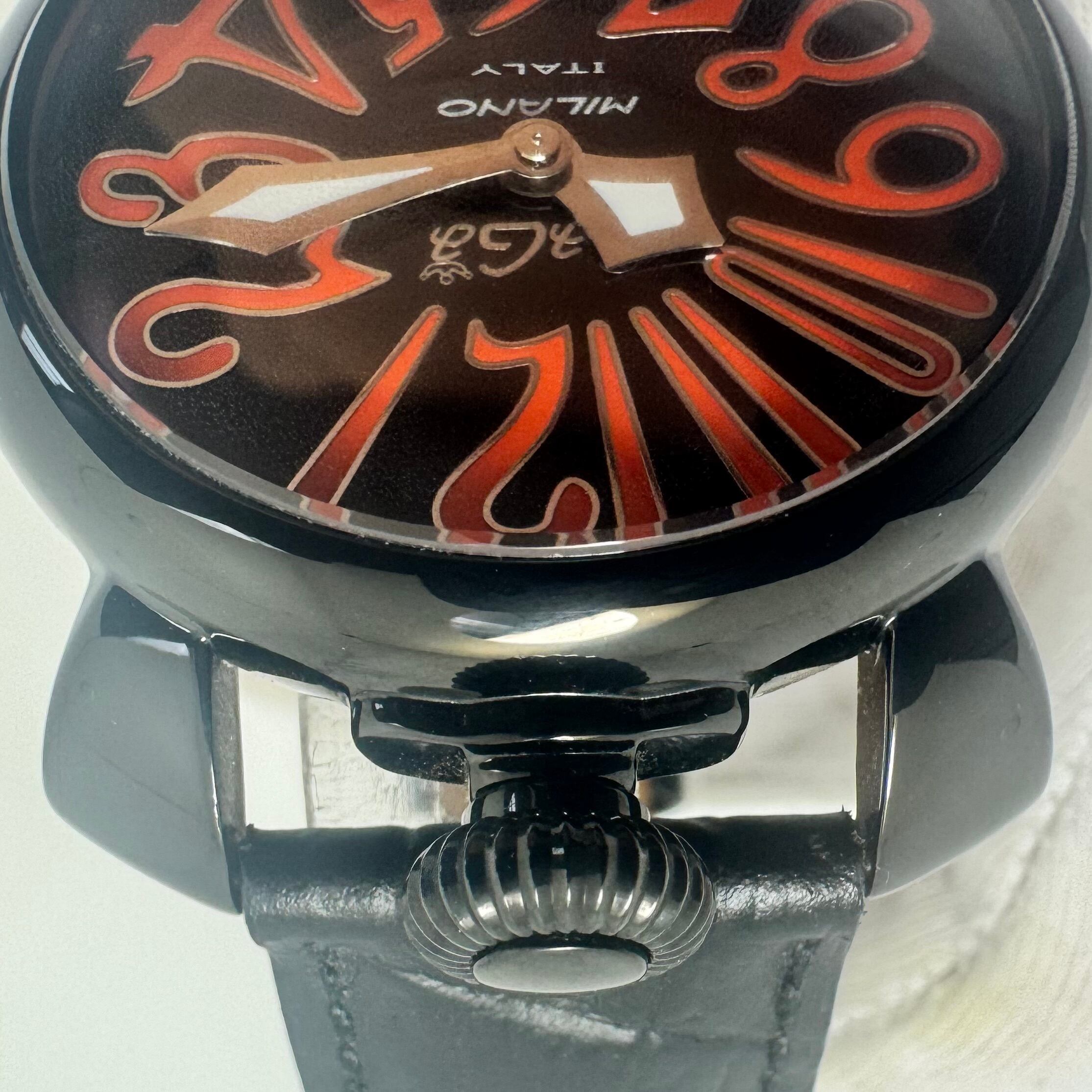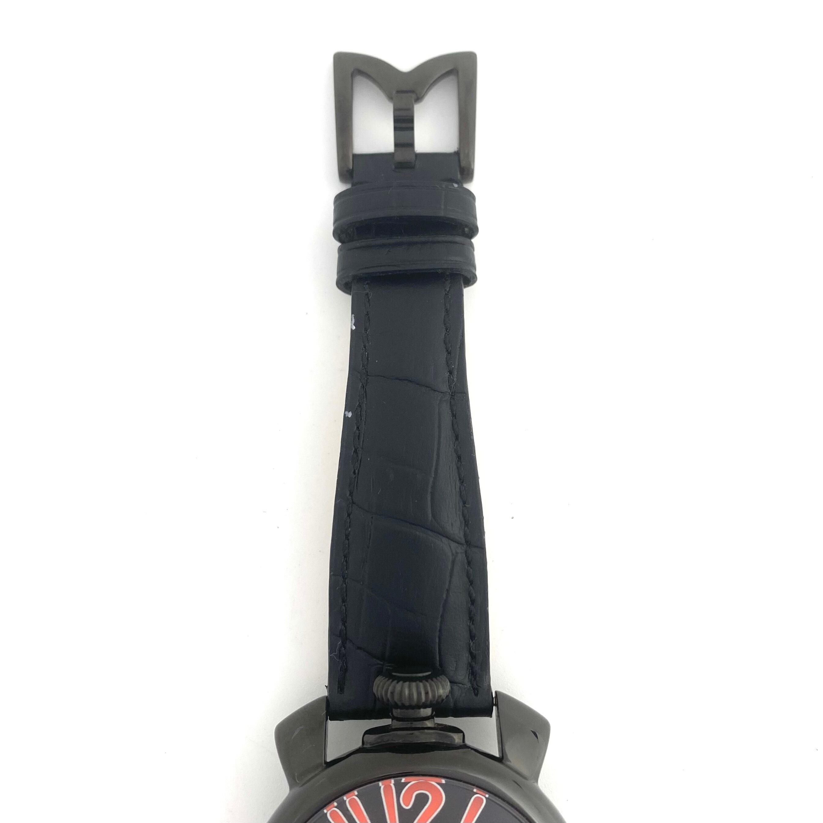 【美品】腕時計 メンズ ガガミラノ GaGa MILANO MANUALE 40MM 5020 クォーツ 黒 2針 革ベルト