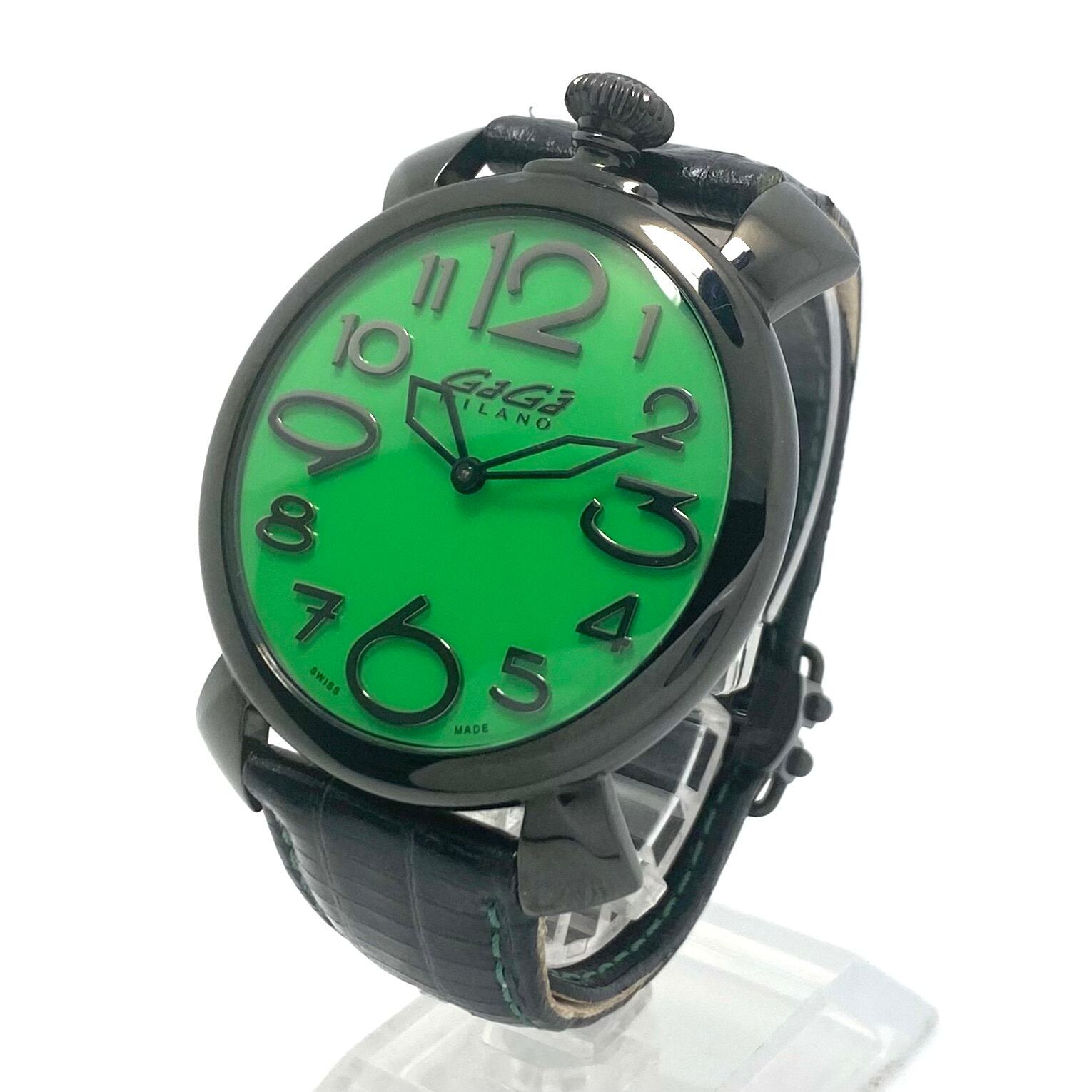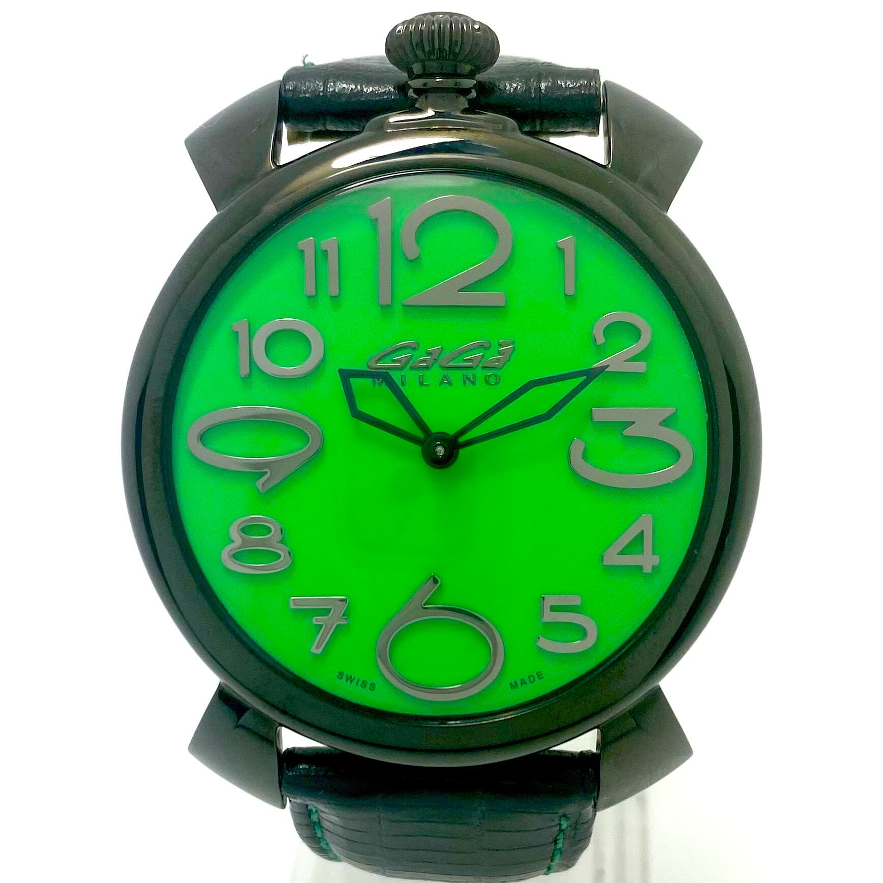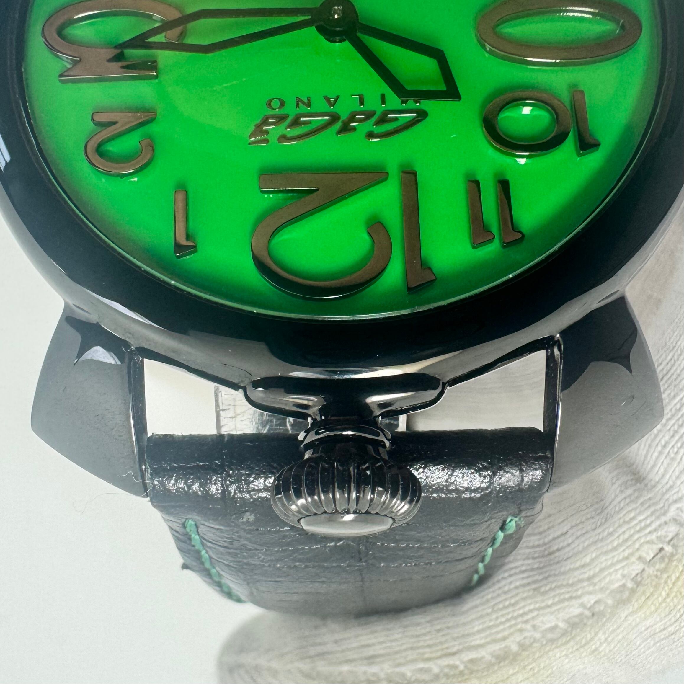 【美品】腕時計 メンズ ガガミラノ GaGa MILANO マヌアーレ シン 46MM 5092 クォーツ グリーン 2針 革ベルト