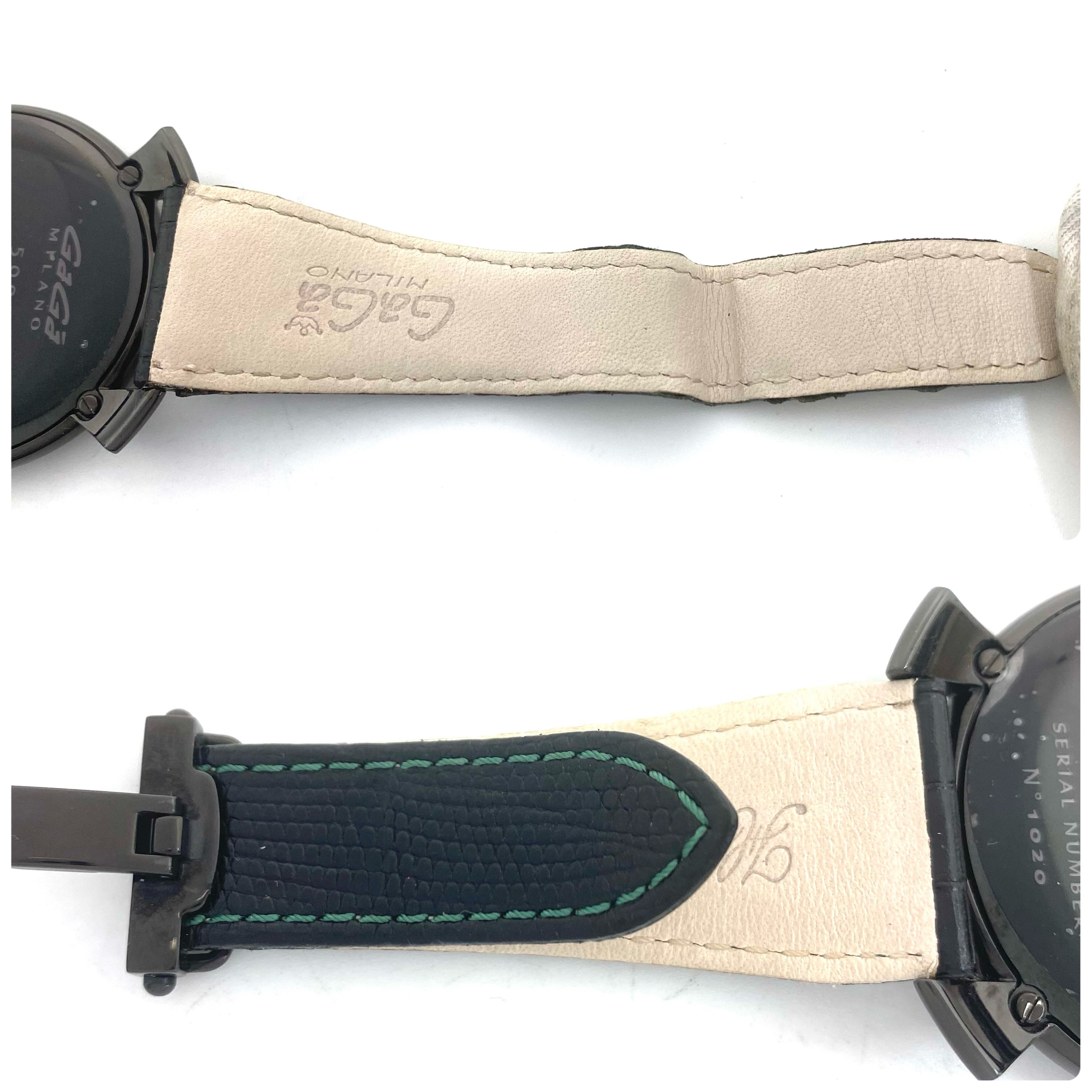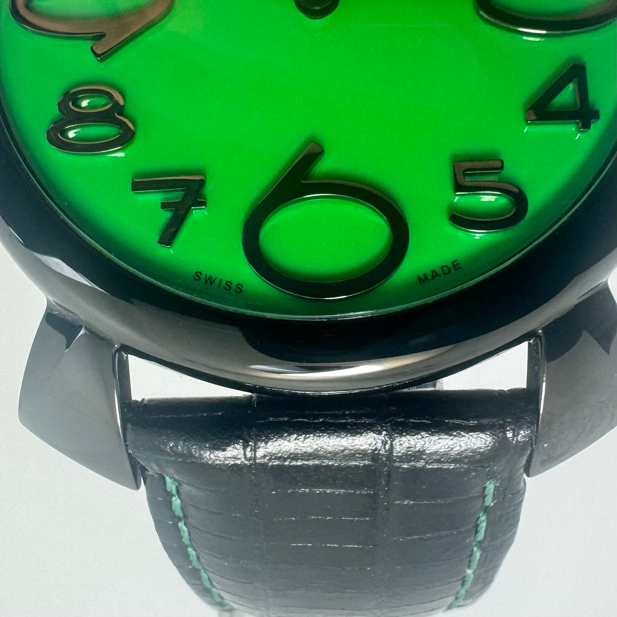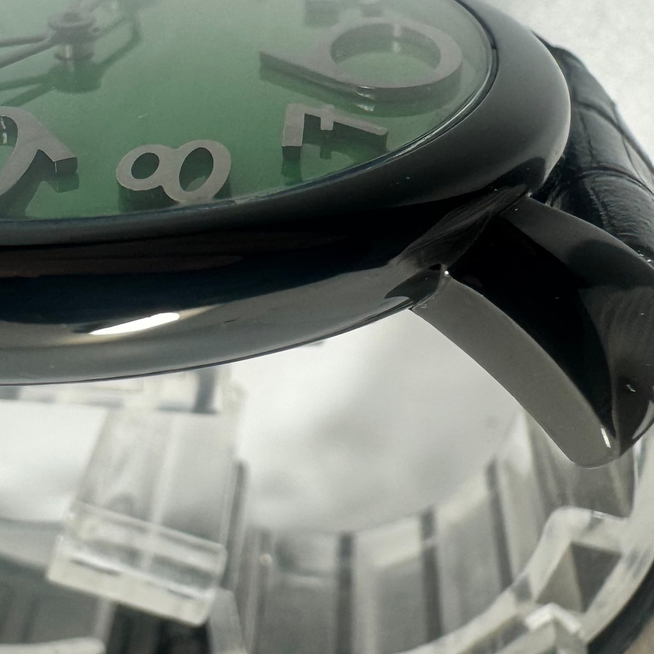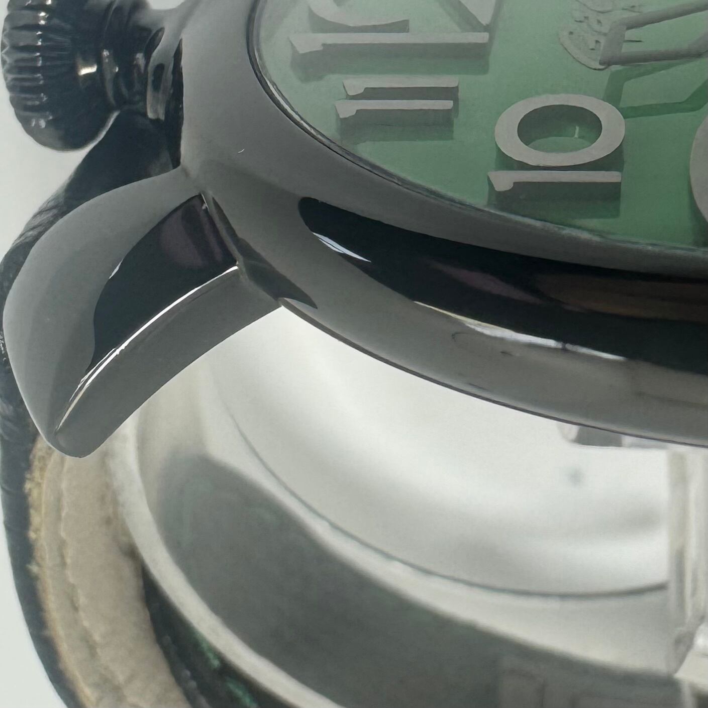 【美品】腕時計 メンズ ガガミラノ GaGa MILANO マヌアーレ シン 46MM 5092 クォーツ グリーン 2針 革ベルト