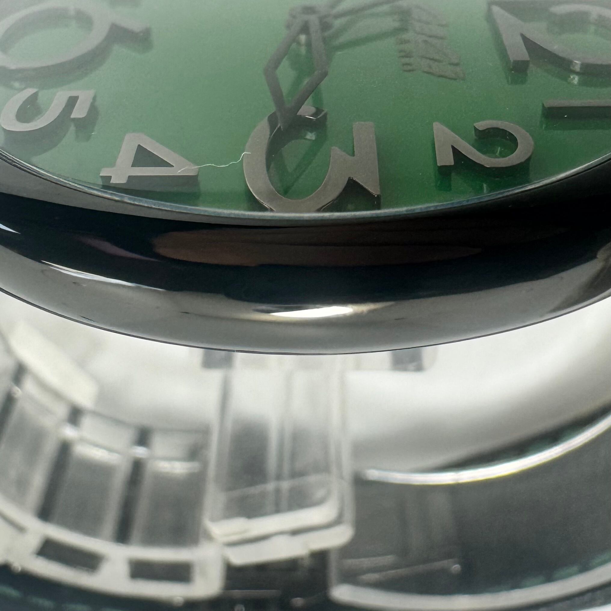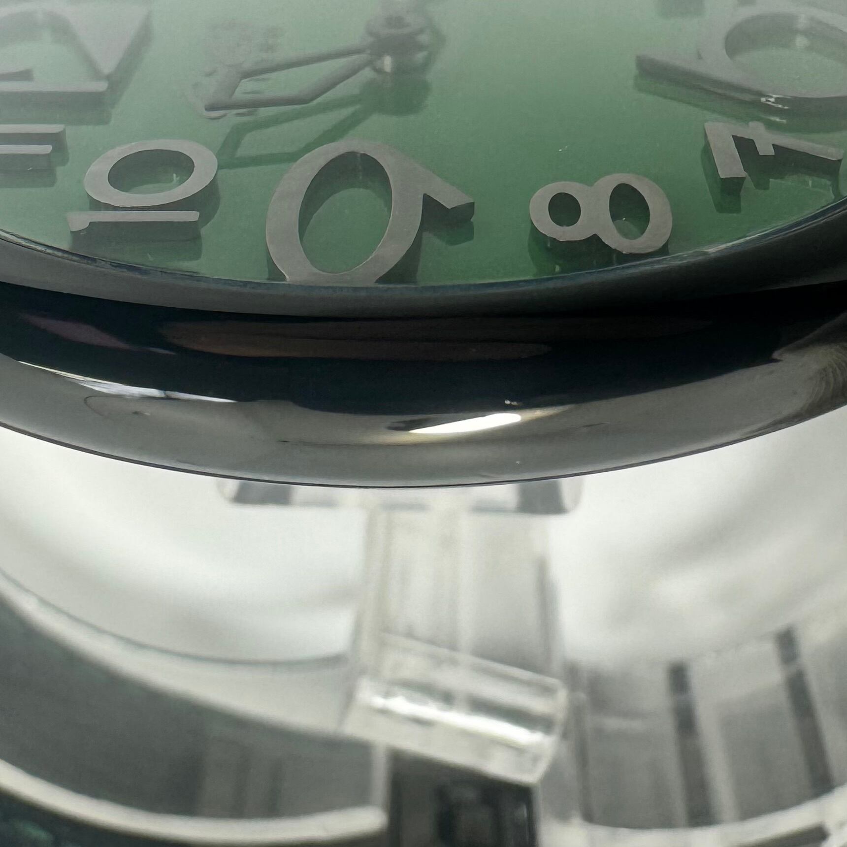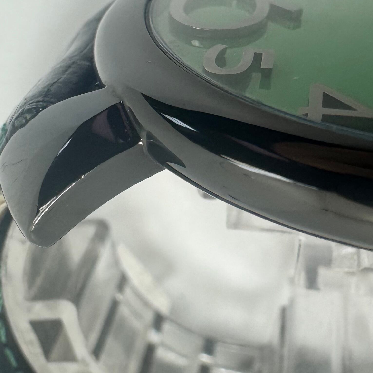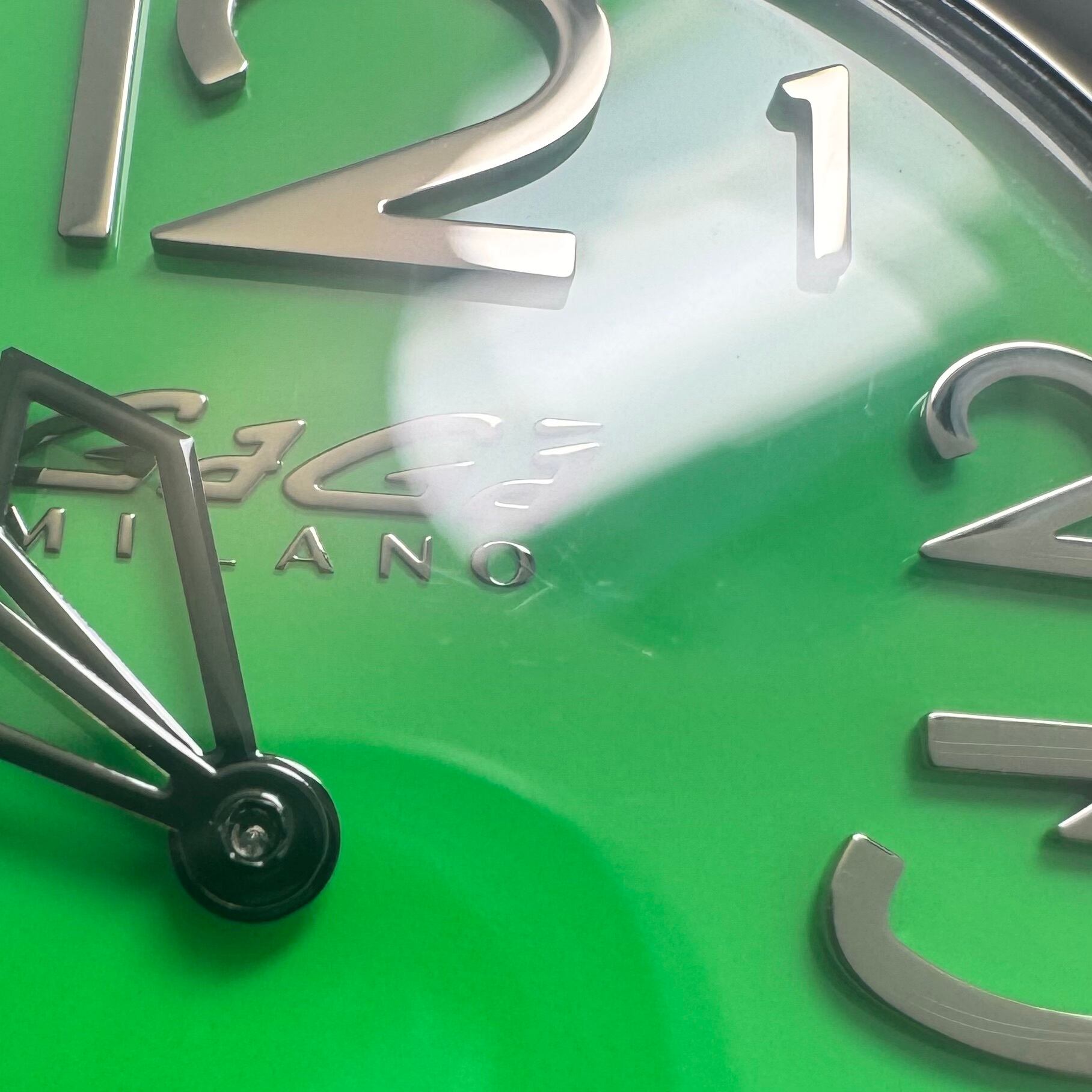 鮮やかなグリーン文字盤に、ブランドらしい大胆なアラビア数字インデックスを組み合わせた、存在感と上品さを兼ね備えた一本です。