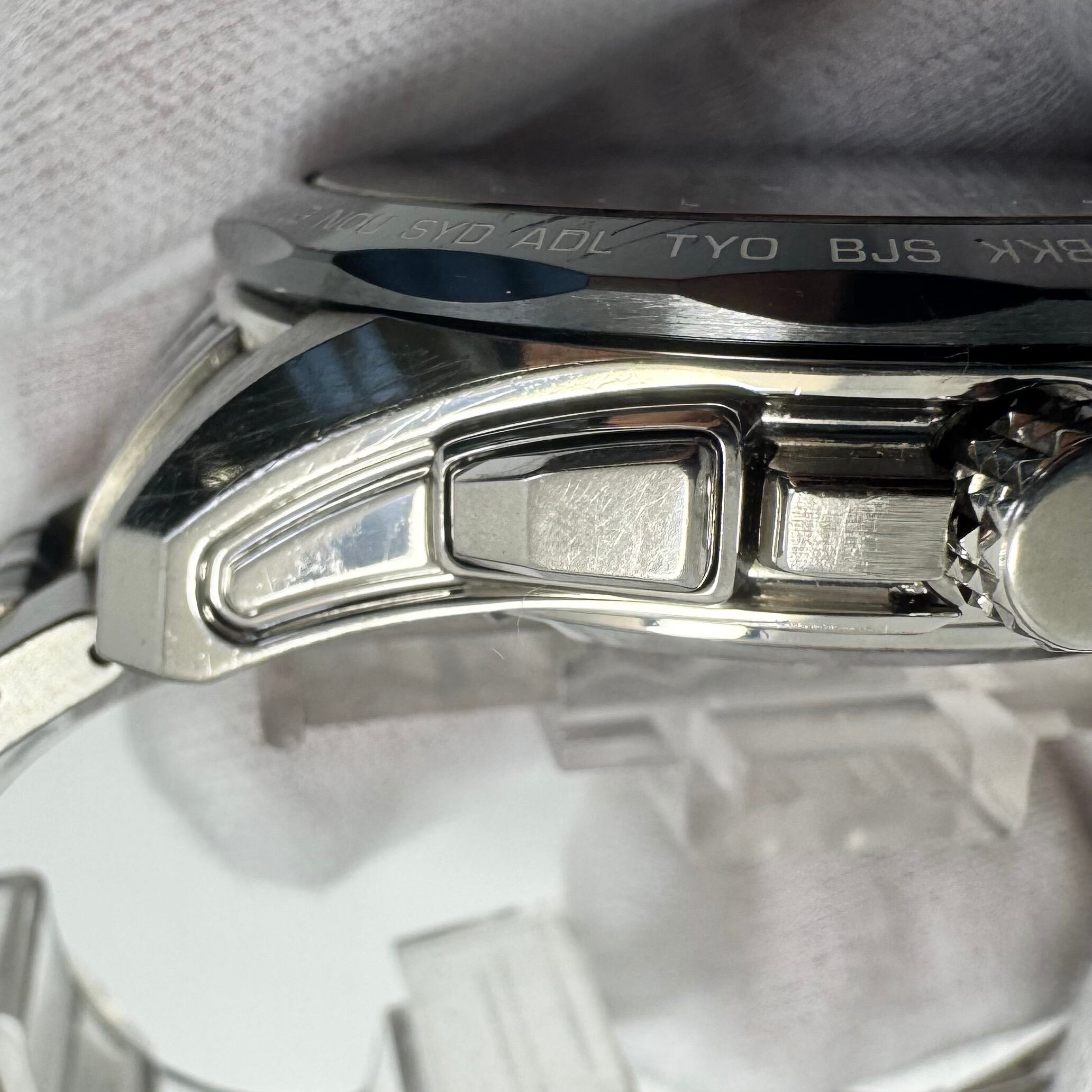 GPS衛星からの電波を受信し、世界中どこにいても正確な時刻とタイムゾーンへ自動修正する先進技術を搭載した、まさに次世代を切り拓いた一本です。
