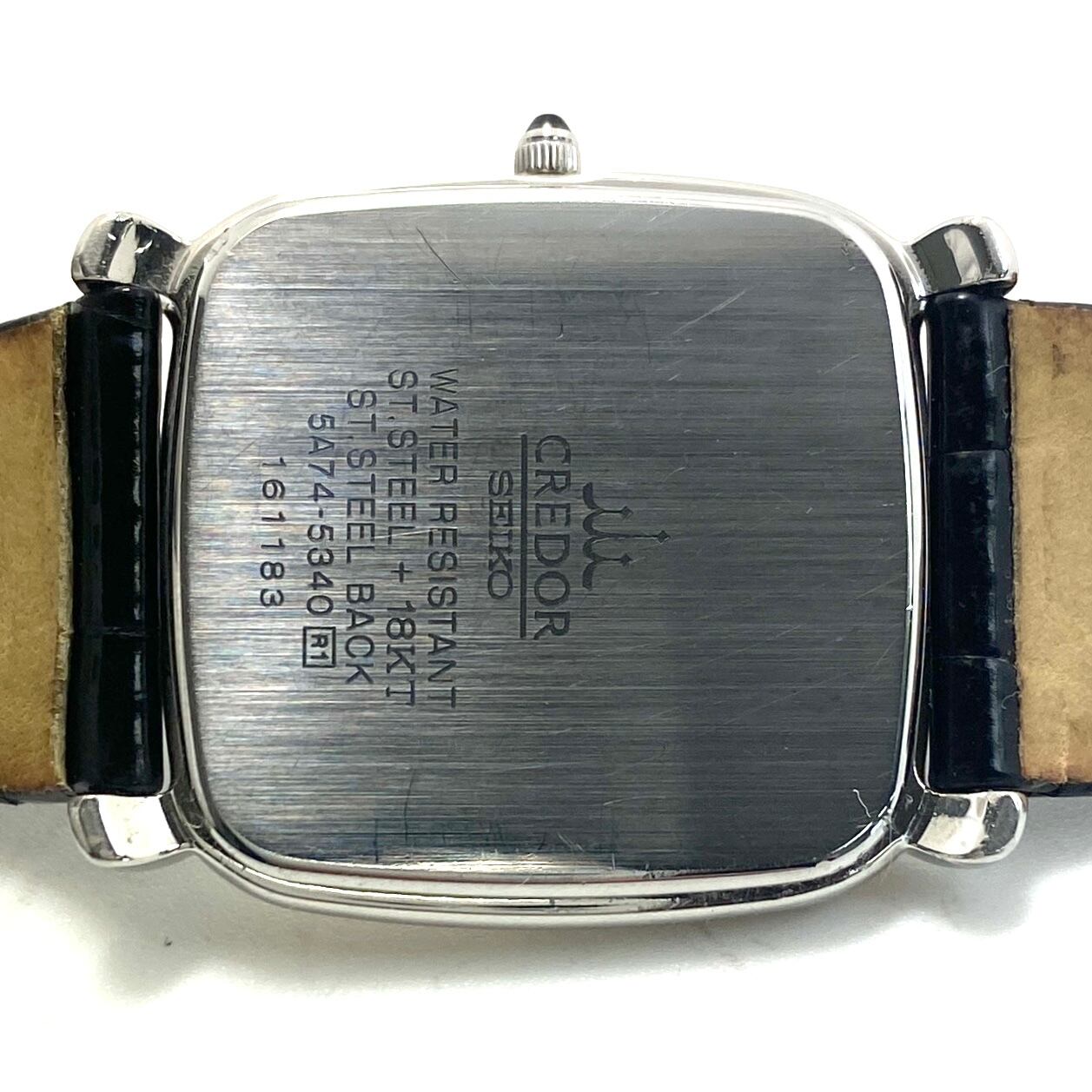 セイコー SEIKO クレドール CREDOR 5A74-5340 クォーツ ホワイト 18KT/SS ベゼルダイヤ 2針 革ベルト