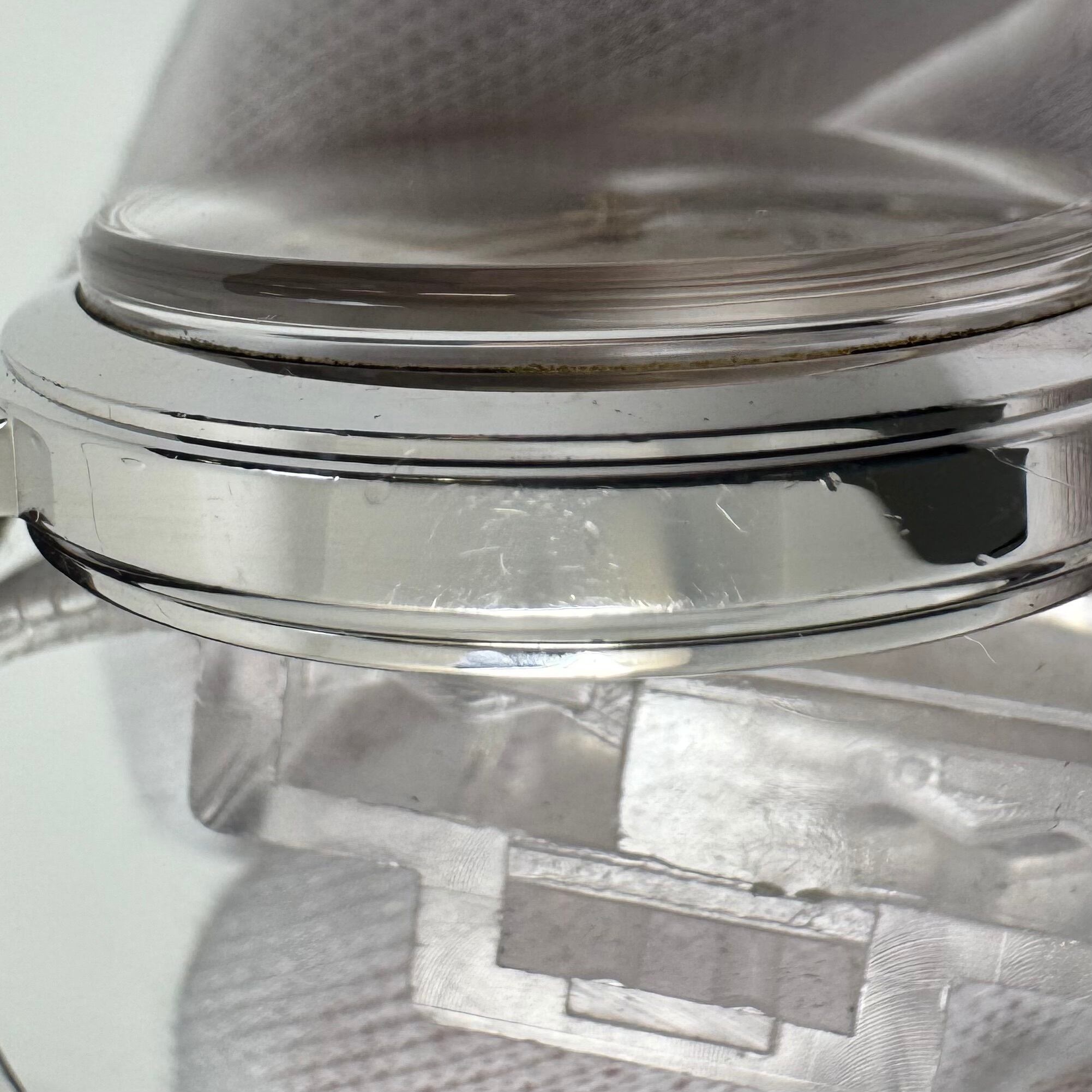 フェイス:針と文字盤にわずかな汚れがありますが、気にならない程度です。ベゼル及びケースにスレや傷、裏蓋ステンレス部分に若干のスレがあります。