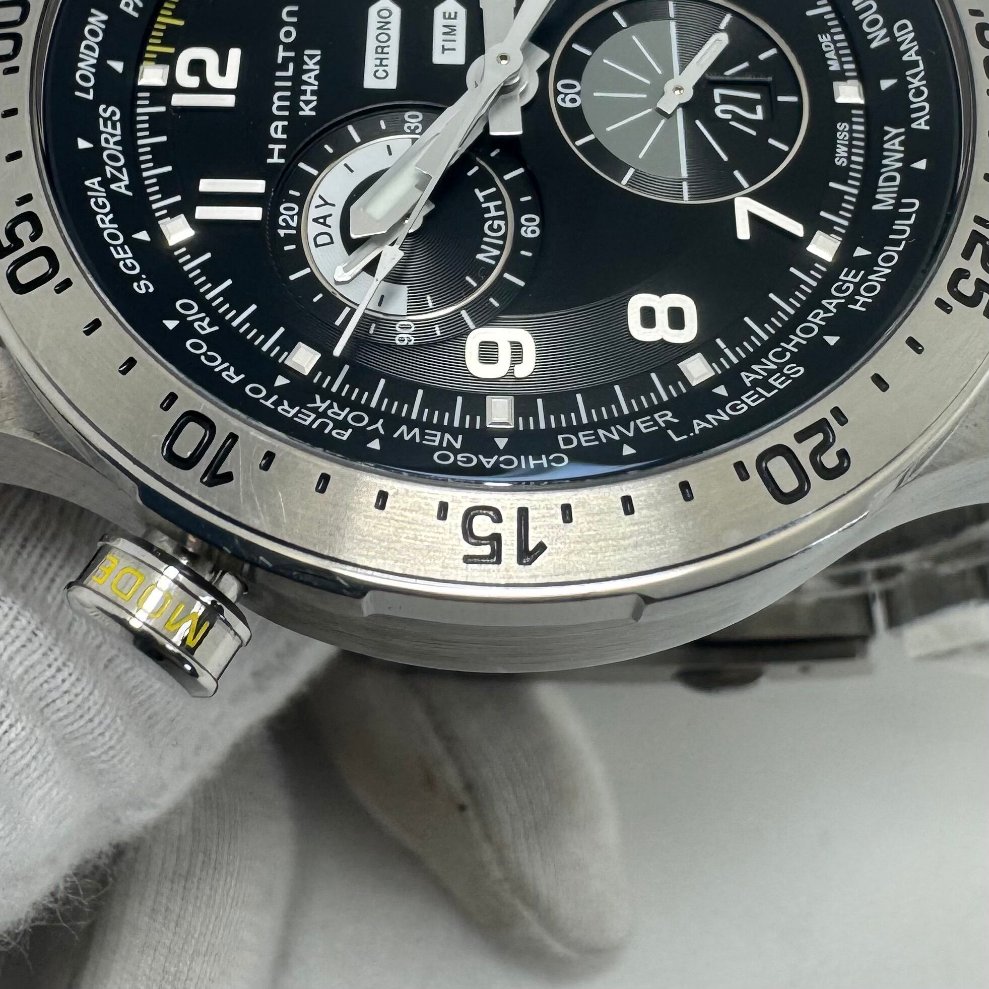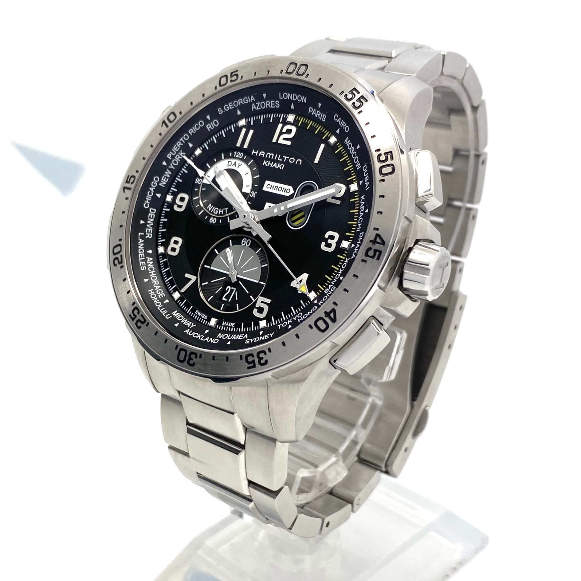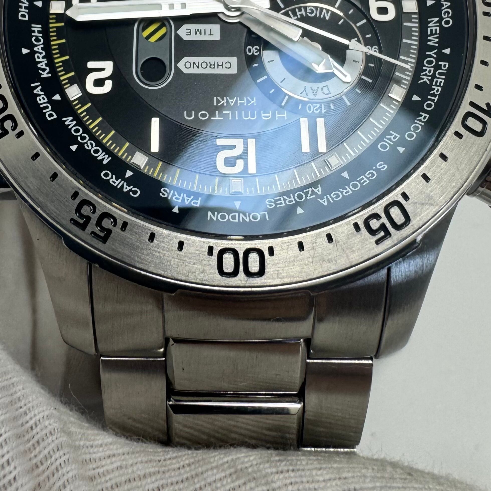 【美品・希少】腕時計 メンズ ハミルトン HAMILTON カーキアビエーション ワールドタイム クロノグラフ H76714135 H767140 パイロット クォーツ 黒 デイト表示 10気圧防水