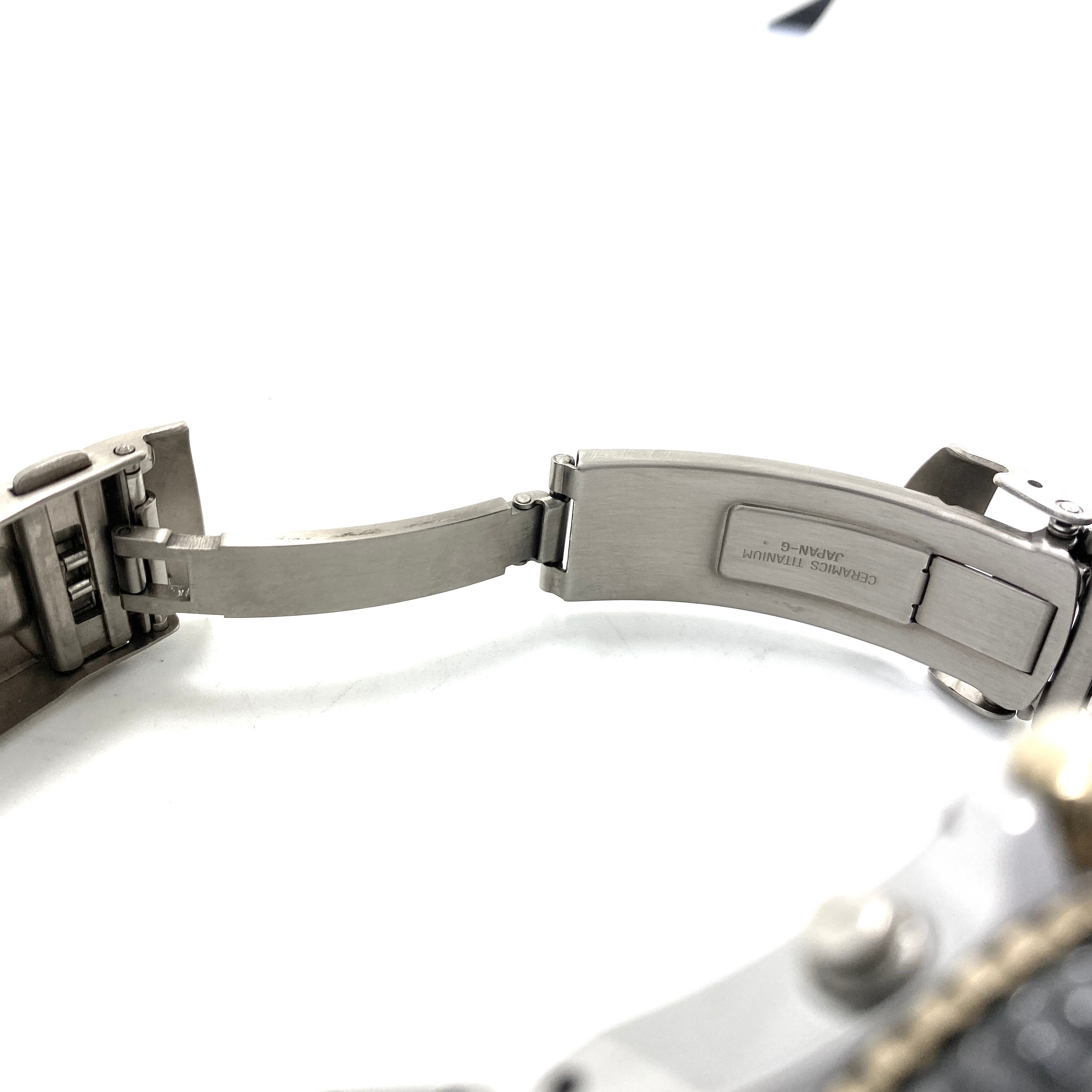 ムーブメントにはキネティック(Cal.5M65)を搭載し、腕の動きで発電する実用性とクォーツの高精度を両立。GMT機能やデイト表示も備え、実用面でも優れた一本です。