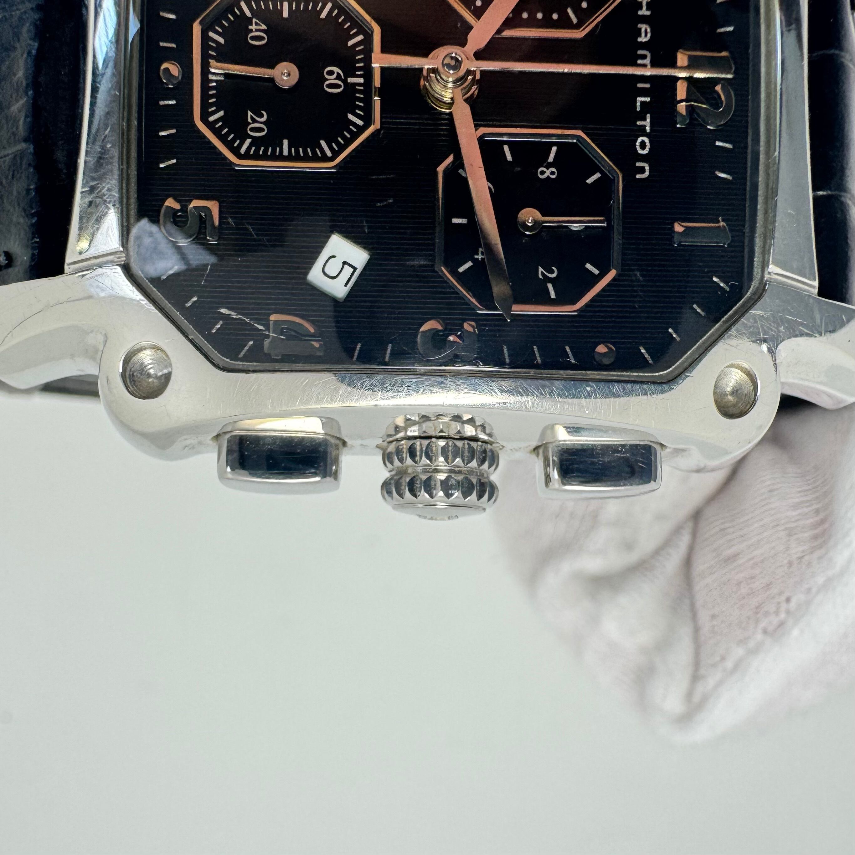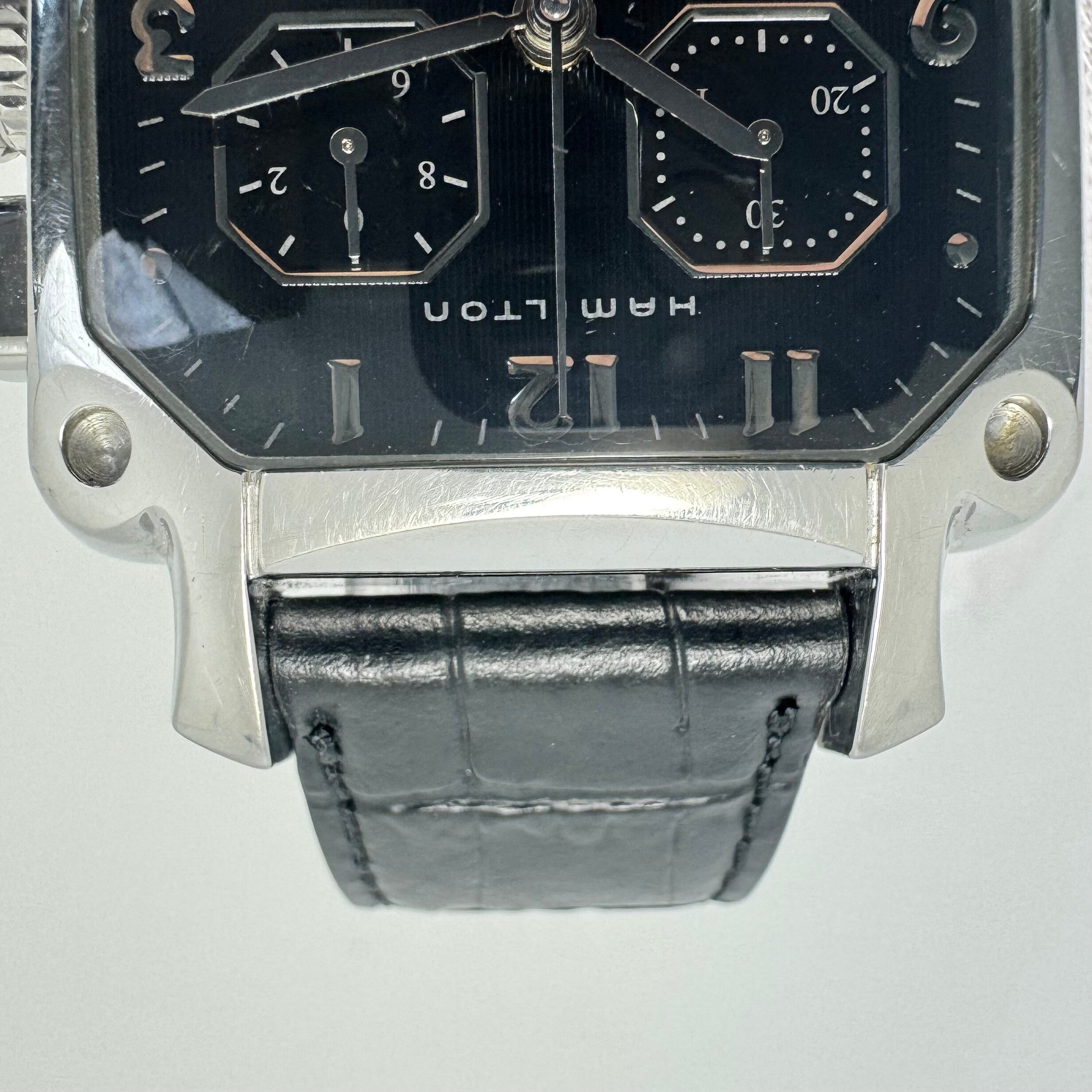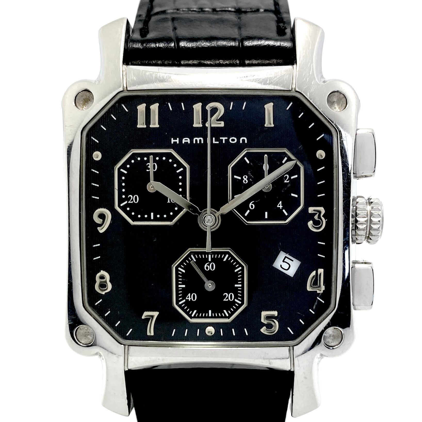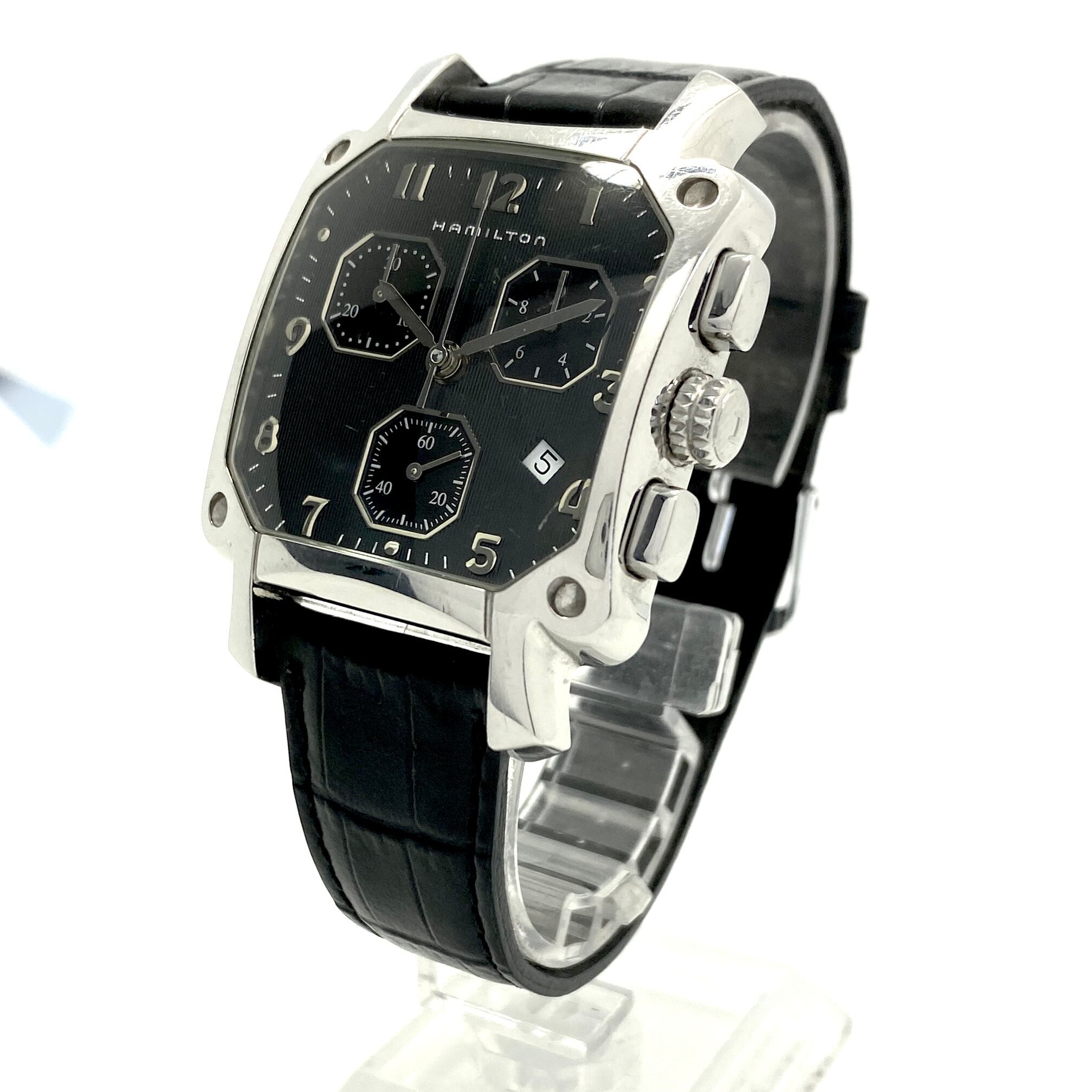ハミルトン HAMILTON アメリカン クラシック ロイド LLOYD CHRONO QUARTZ H19412733 6319 クォーツ 黒 クロノグラフ デイト表示 革ベルト(社外) 生産終了モデル