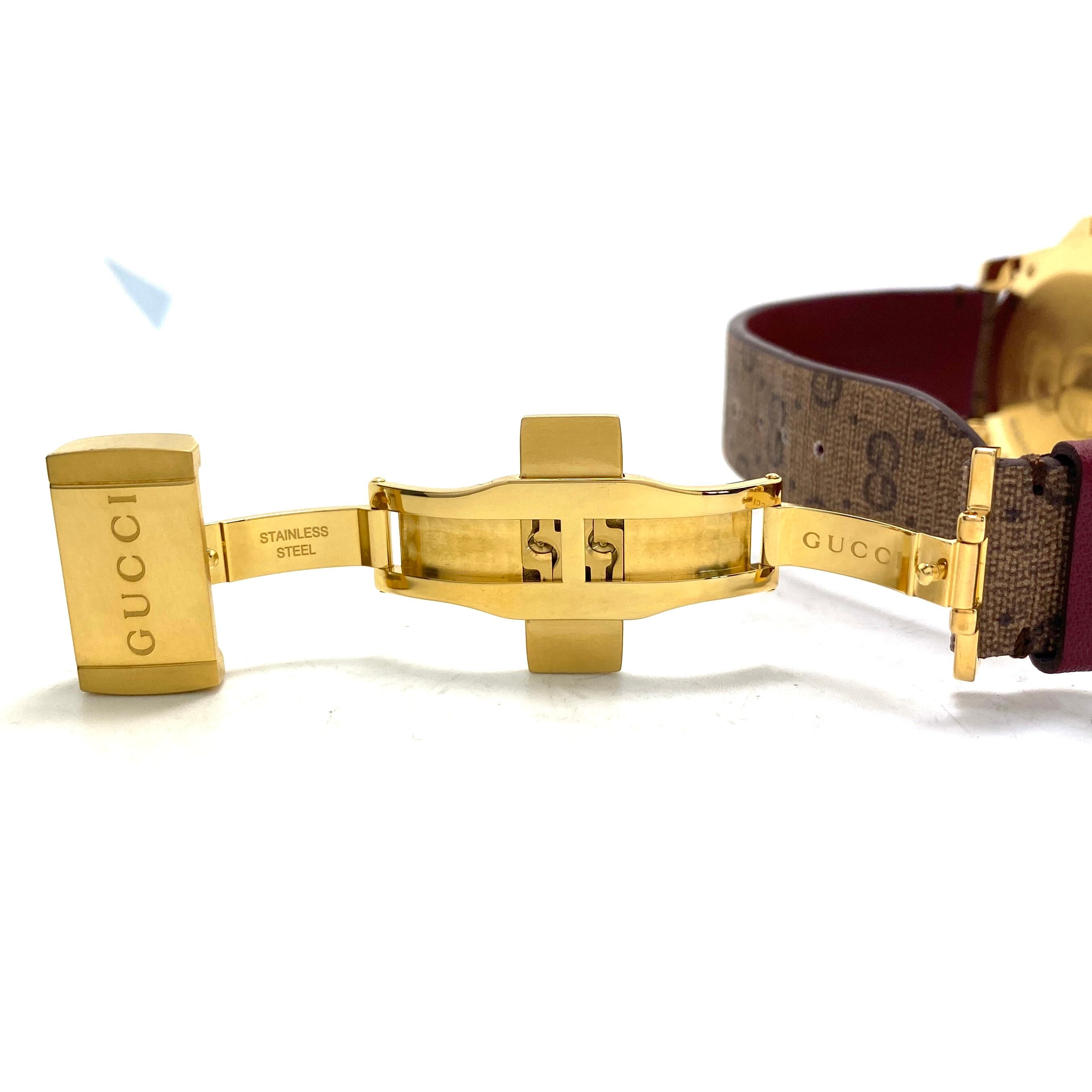 グッチ GUCCI ダイブ DIVE YA136335 136.3 ドラえもん50周年×GUCCI100周年記念コラボモデル クォーツ イエローゴールド GP ブラウン 20気圧防水 革ベルト