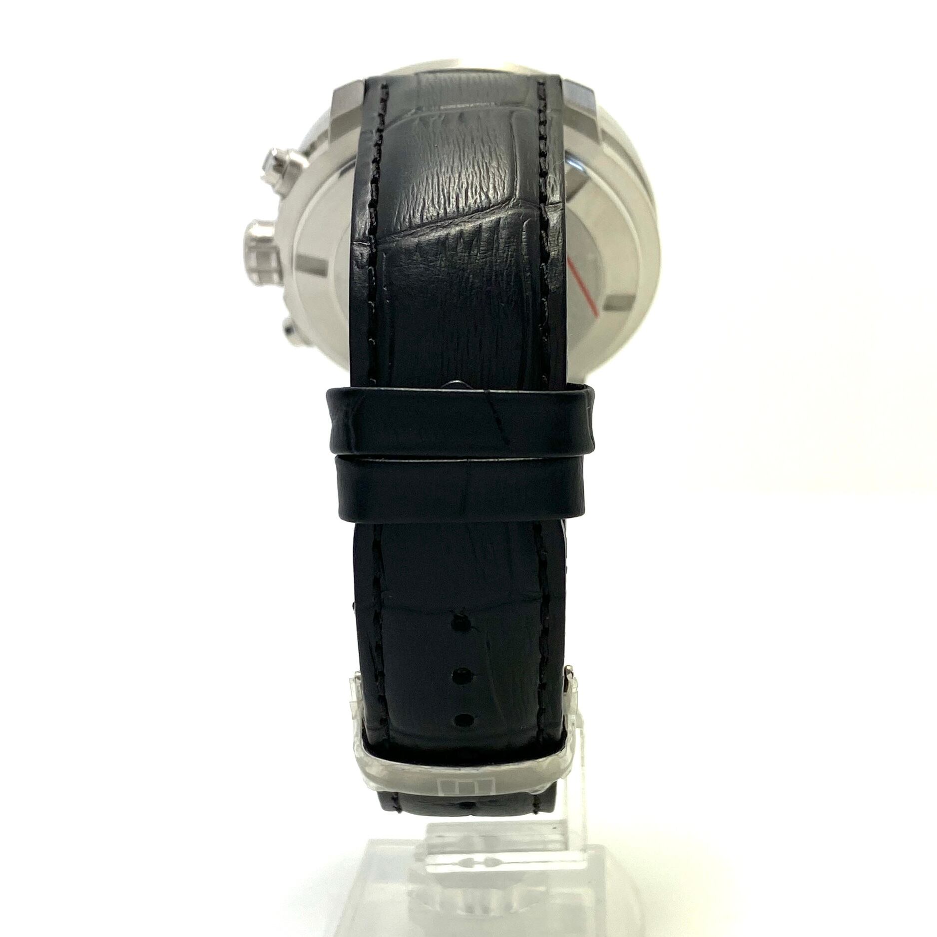 ケースにはステンレススチールを採用し、風防には傷に強いサファイアクリスタルを搭載。さらに20気圧防水を備えており、スポーツシーンから日常使いまで幅広く活躍します。 ムーブメントには高精度なスイス製クォーツを搭載し、クロノグラフやデイト表示など実用的な機能も充実しています。