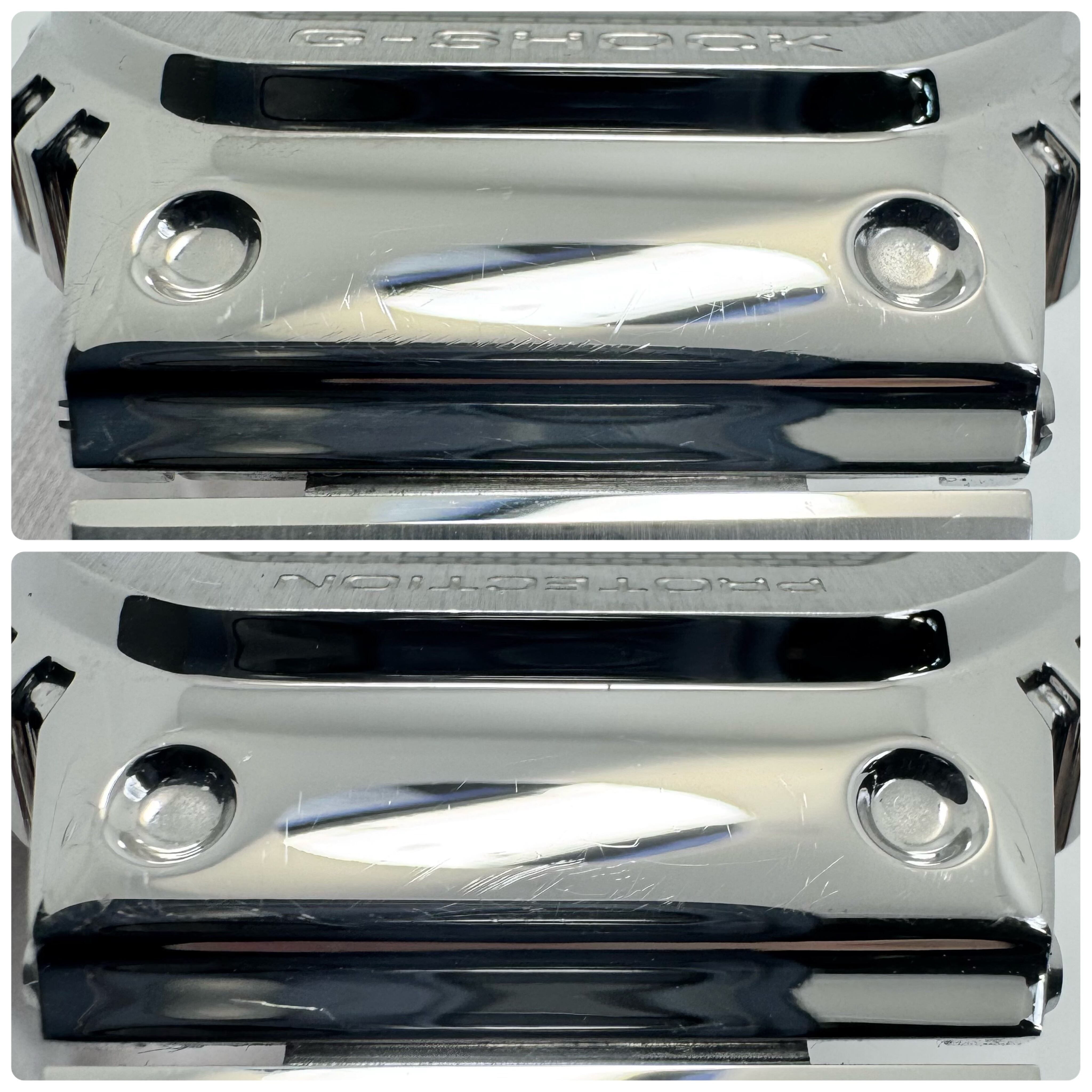 スクエアフェイスに刻まれたG-SHOCKのDNAはそのままに、重厚なシルバーのステンレスケース&ブレスが、洗練された大人の腕元を演出します。