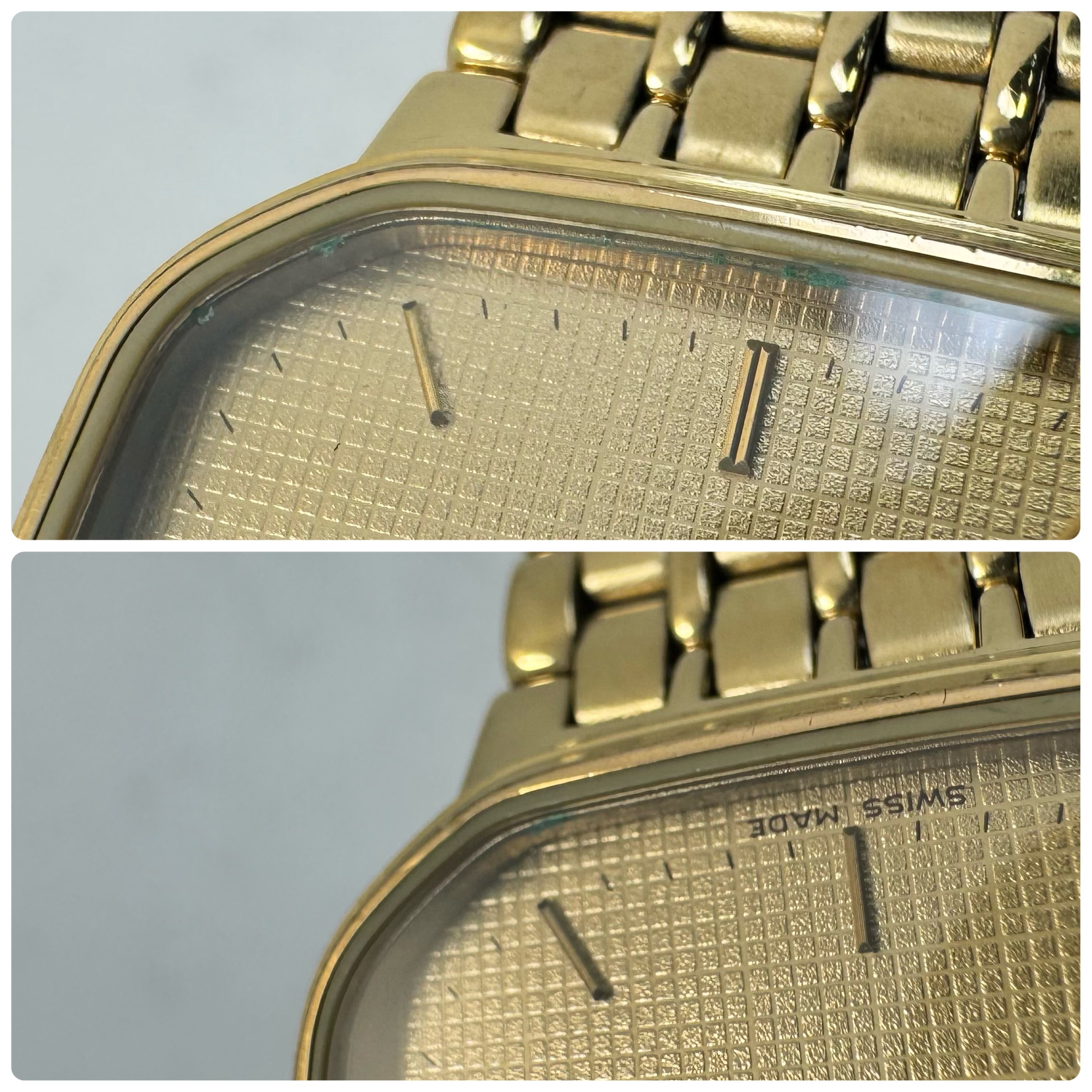 フェイス:ガラスのふちにサビ、針に汚れがあります。ベゼル及びケース、裏蓋に若干のスレや小傷があります。