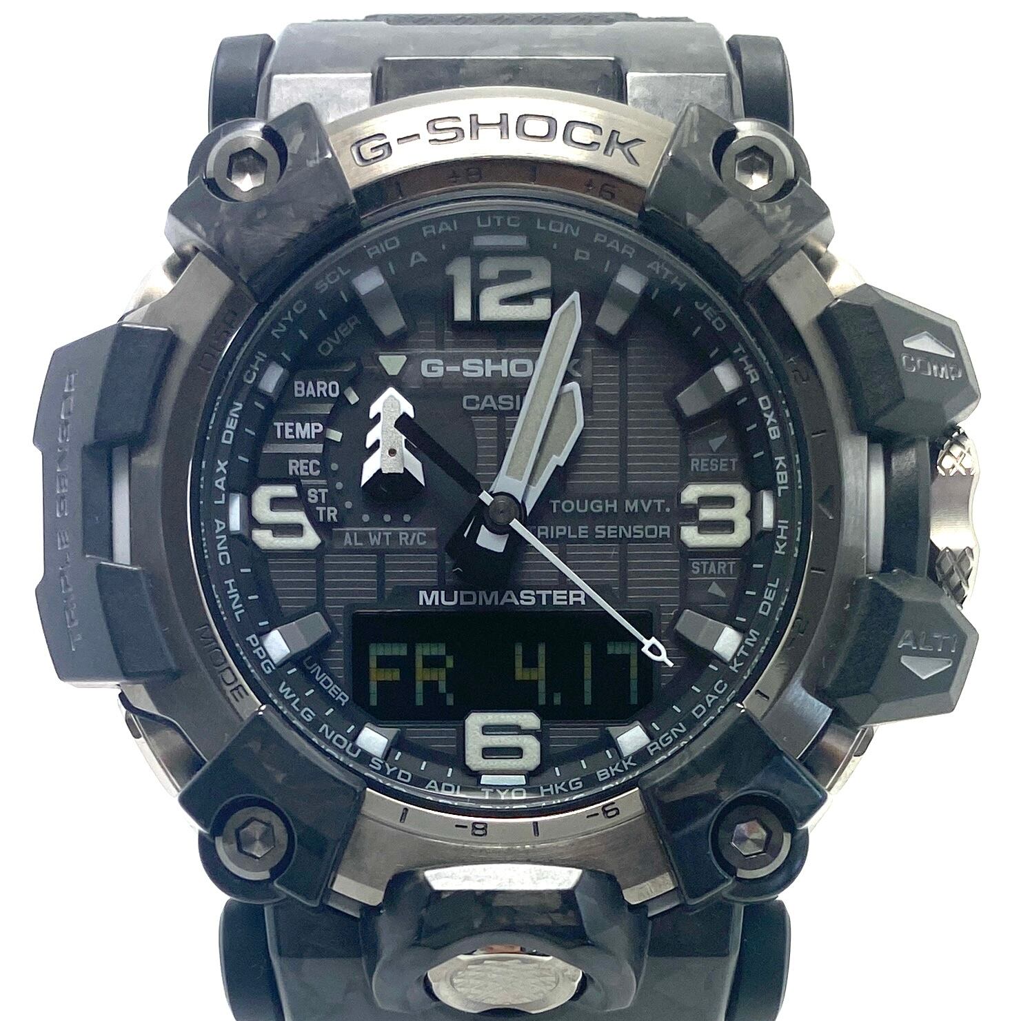 【美品】腕時計 メンズ カシオ ジーショック G-SHOCK マッドマスター MASTER OF G-LAND GWG-2000-1A1JF 電波ソーラー アナデジ 黒 樹脂ベルト 20気圧 登山 アウトドア