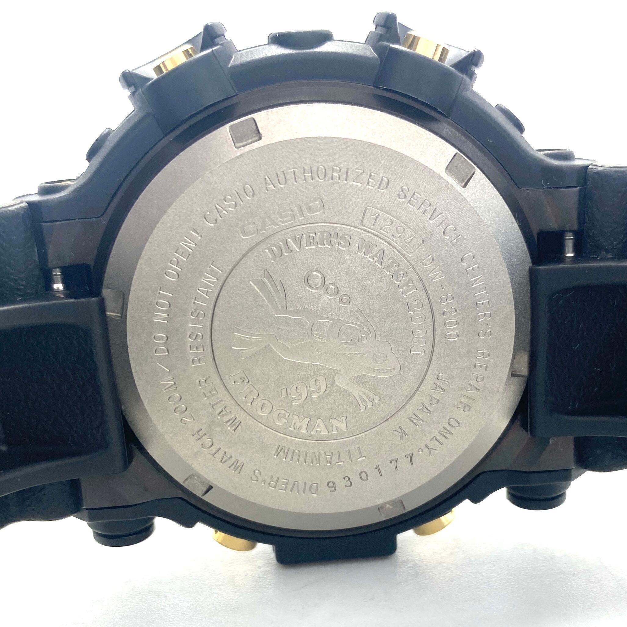 【美品・希少】腕時計 メンズ カシオ ジーショック G-SHOCK フロッグマン DW-8200BU-9AT 1999年復刻版 黒金蛙 ダイビング タイドグラフ 黒 クォーツ デジタル チタニウム 樹脂ベルト
