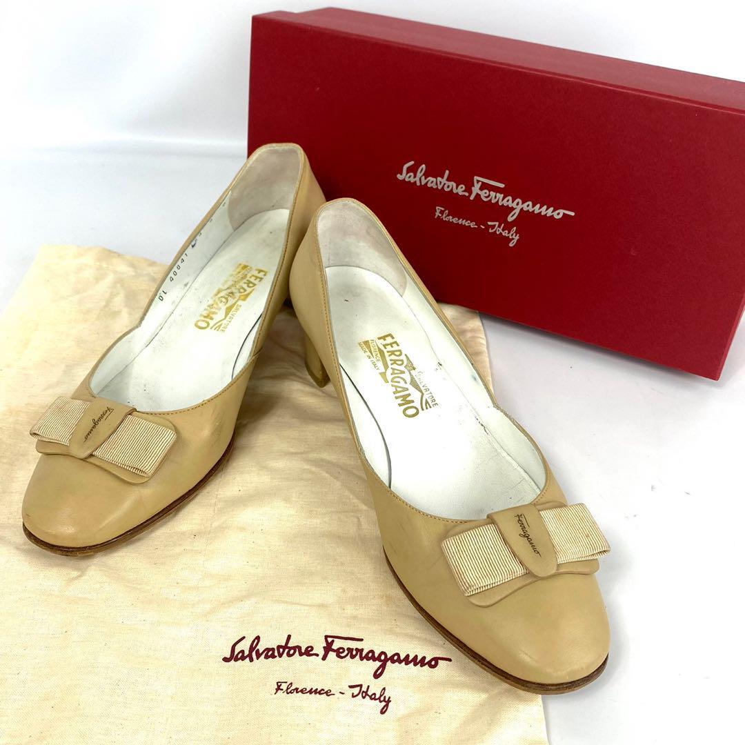サルヴァトーレフェラガモ パンプス ヴァラ 8 D ベージュ