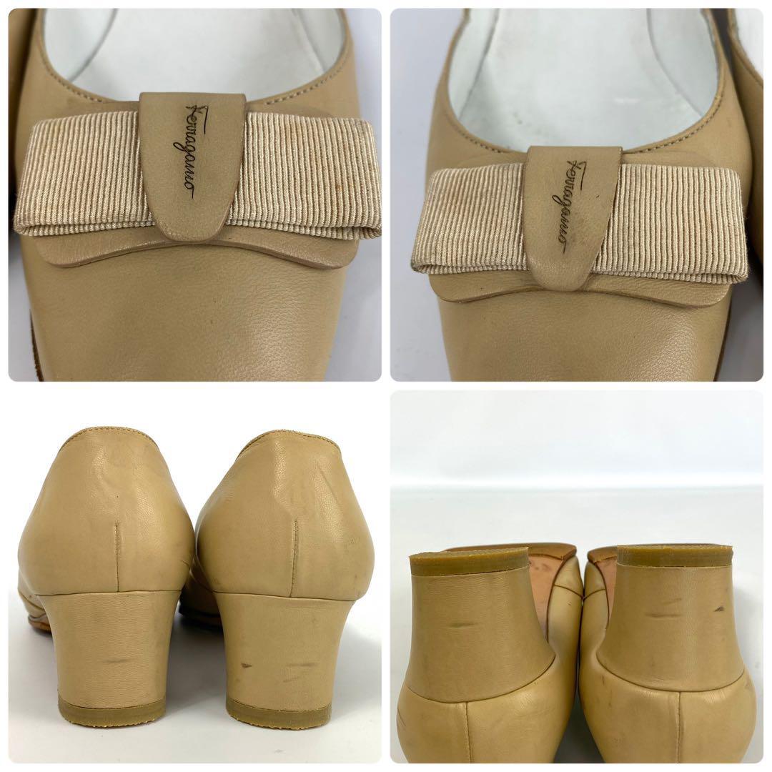 サルヴァトーレフェラガモ Salvatore Ferragamo パンプス ヴァラ リボン 8 D ベージュ