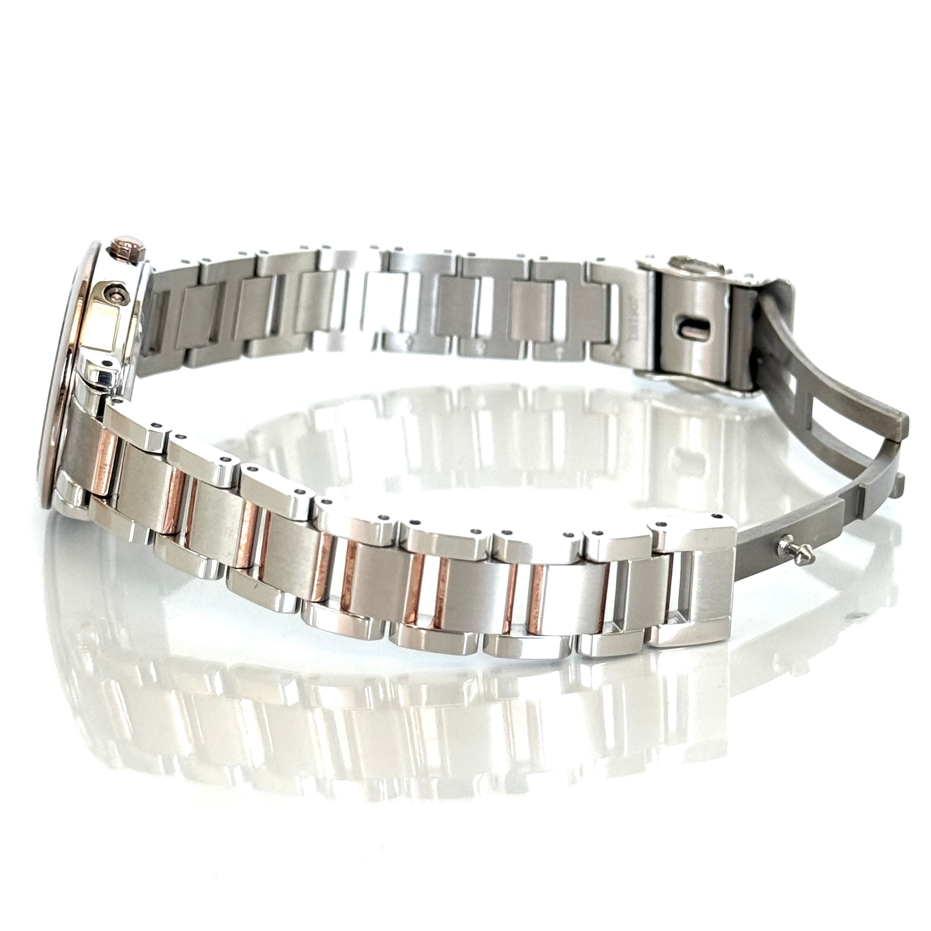 美しいサクラピンクカラーの文字盤にローマ字表記のインデックスがエレガントなモデルです。