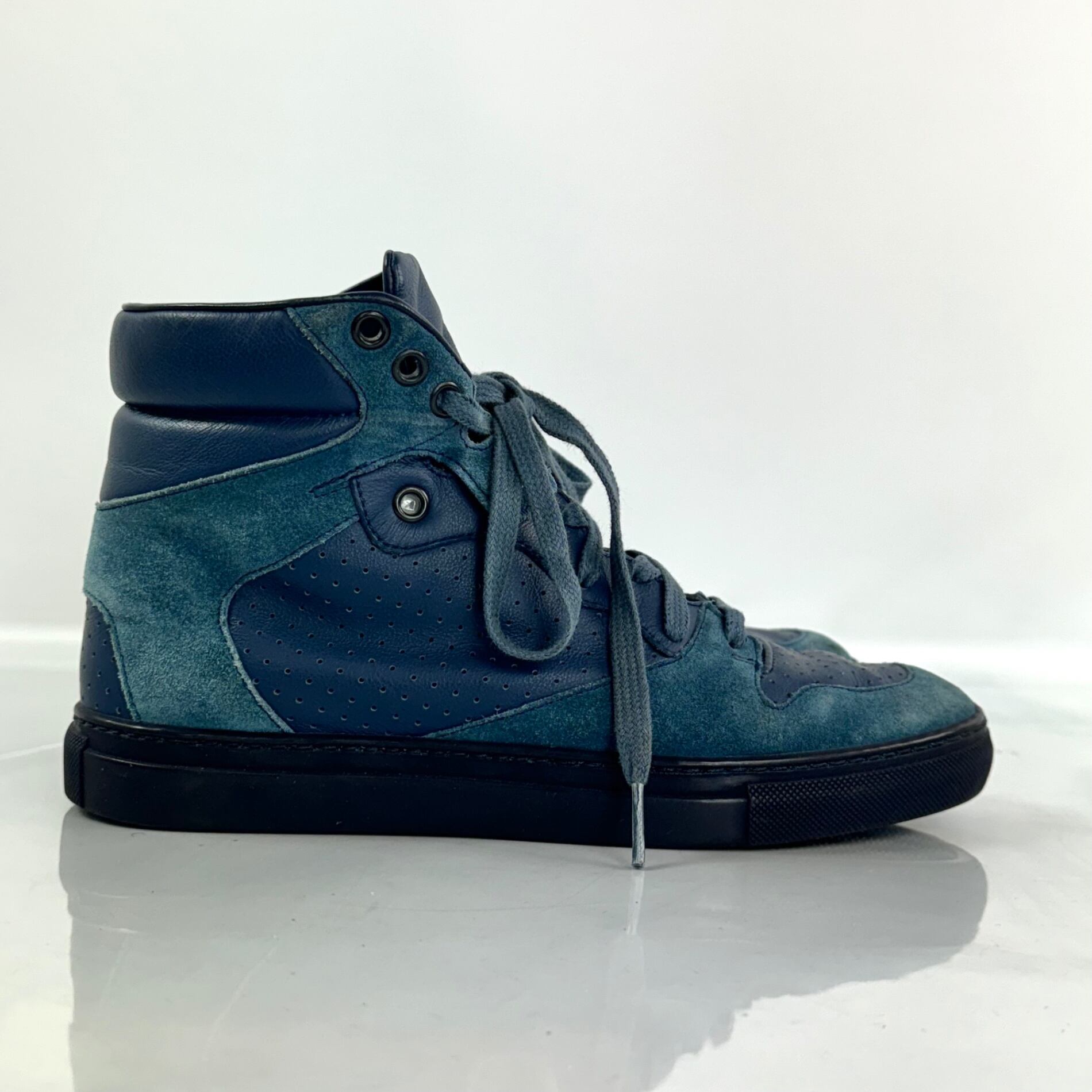 バレンシアガ ハイカットスニーカー レザー スエード 24cm ネイビー 青