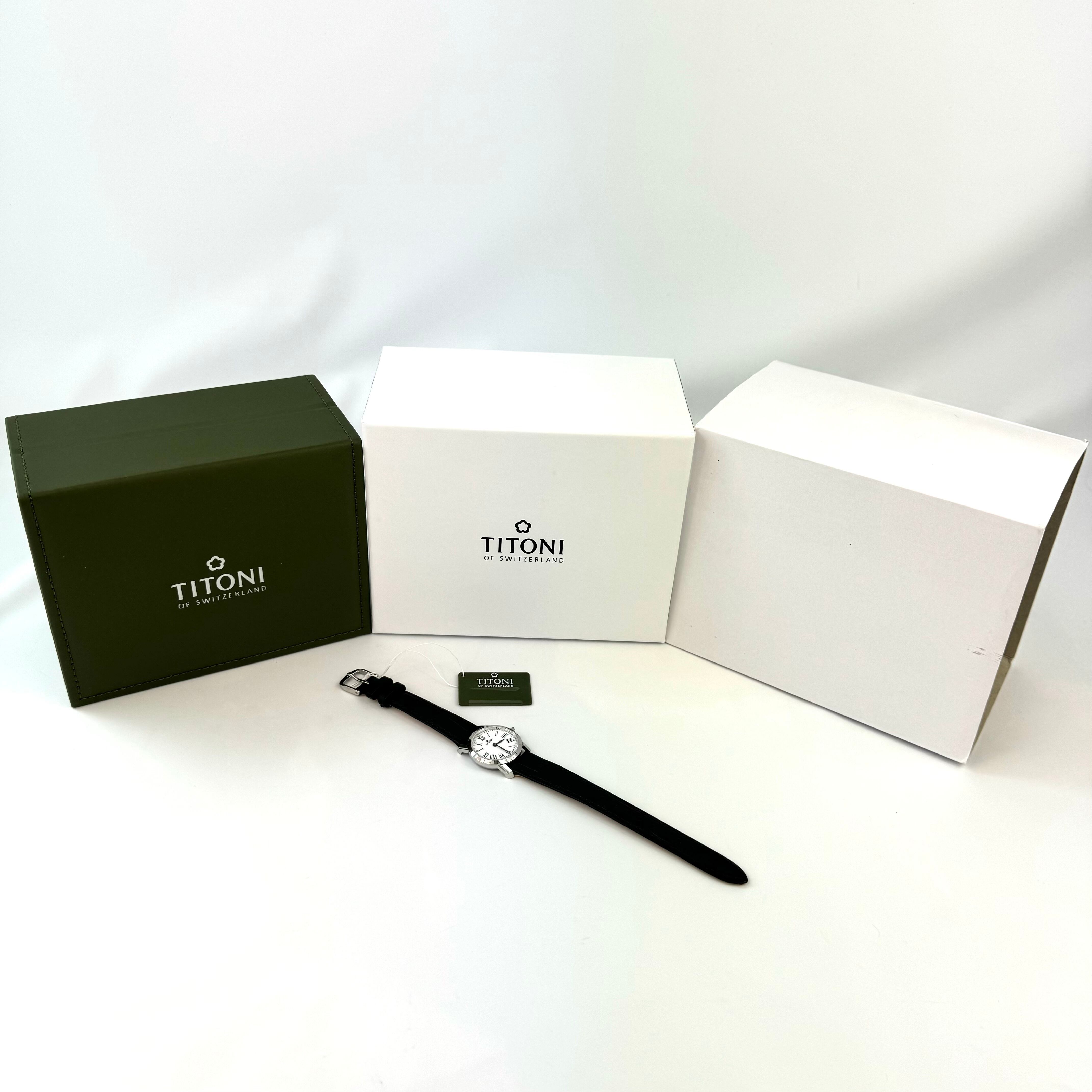 【未使用】チトニ TITONI TQ 42918 S-ST-584 スレンダーライン クォーツ 白 2針 革ベルト レディース