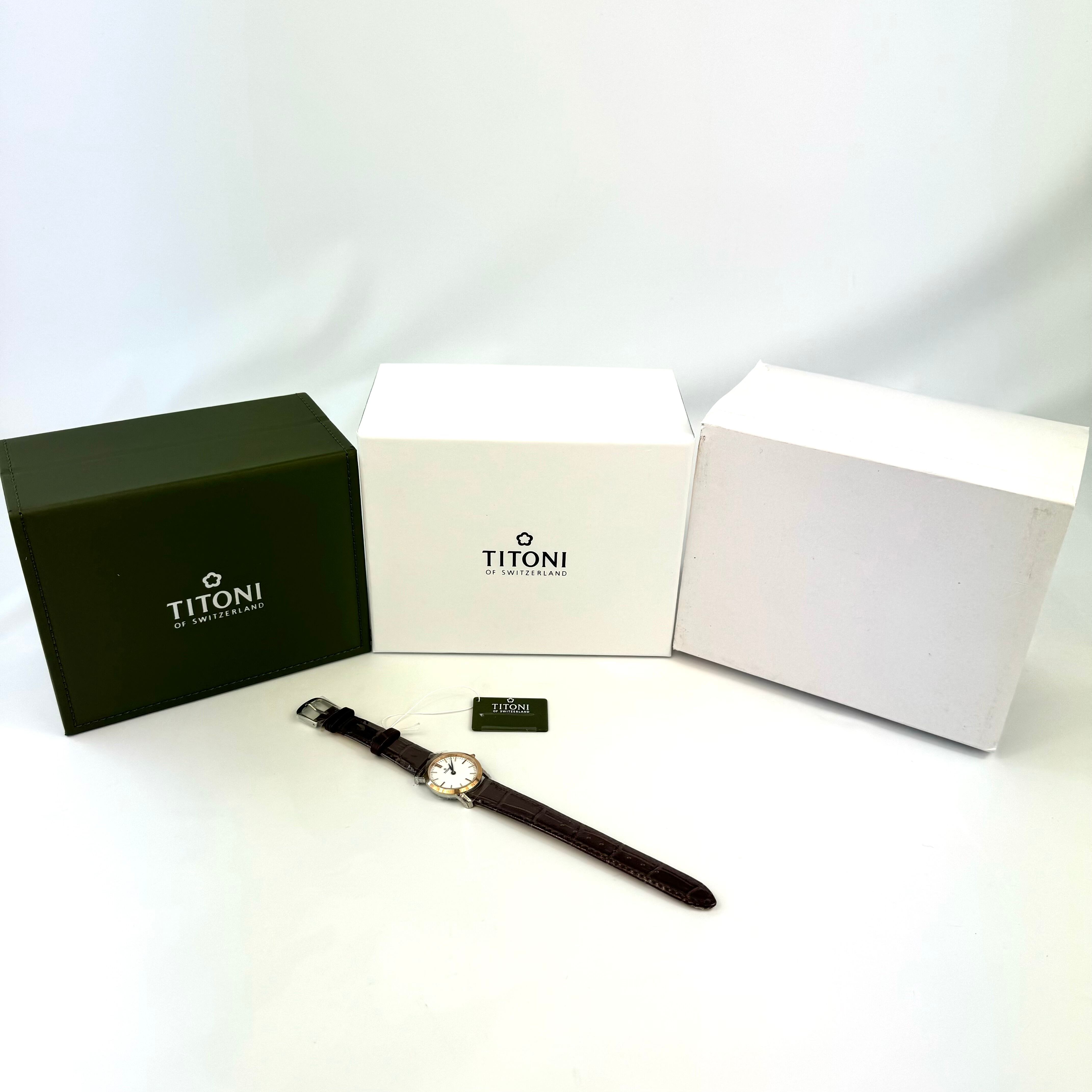 【未使用】チトニ TITONI TQ 42918 SRGST−583 スレンダーライン クォーツ 白 2針 革ベルト レディース