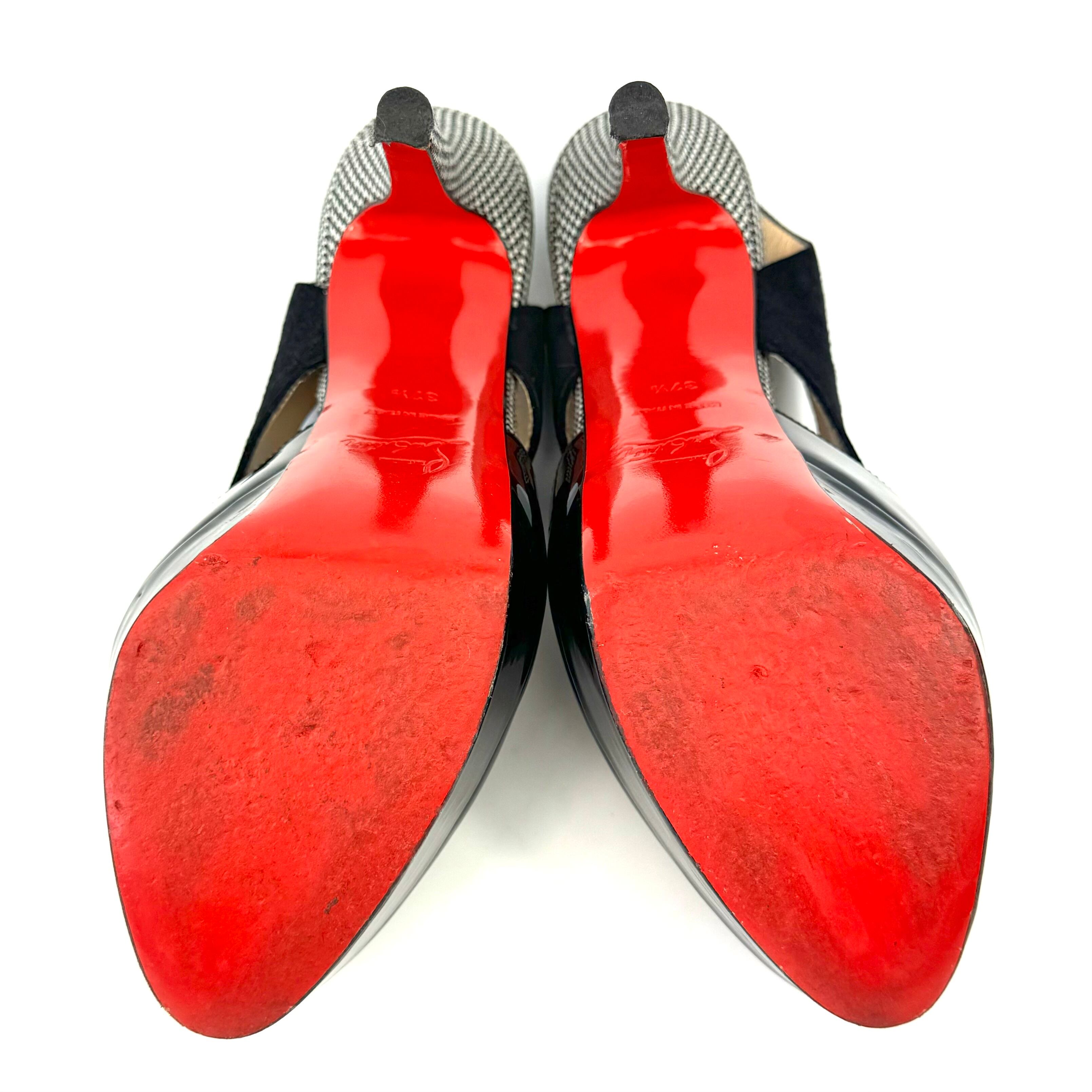 クリスチャンルブタン Christian Louboutin パンプス バックストラップ ハイヒール パテント スエード 千鳥格子 黒 24.5cm