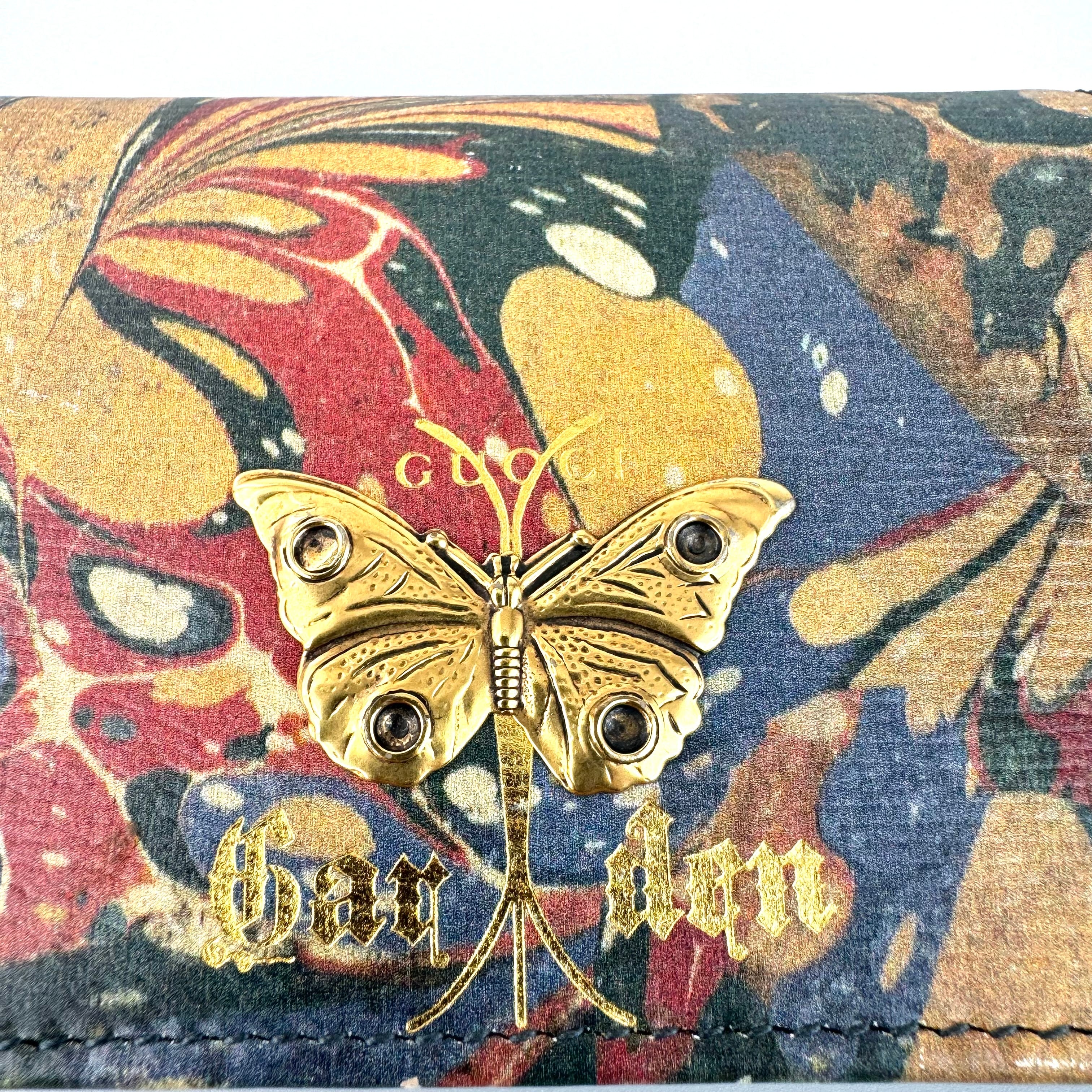 【希少】グッチ ガーデン 財布 バタフライ 516929・0416 二つ折り財布 マーブルカラー ネイビー