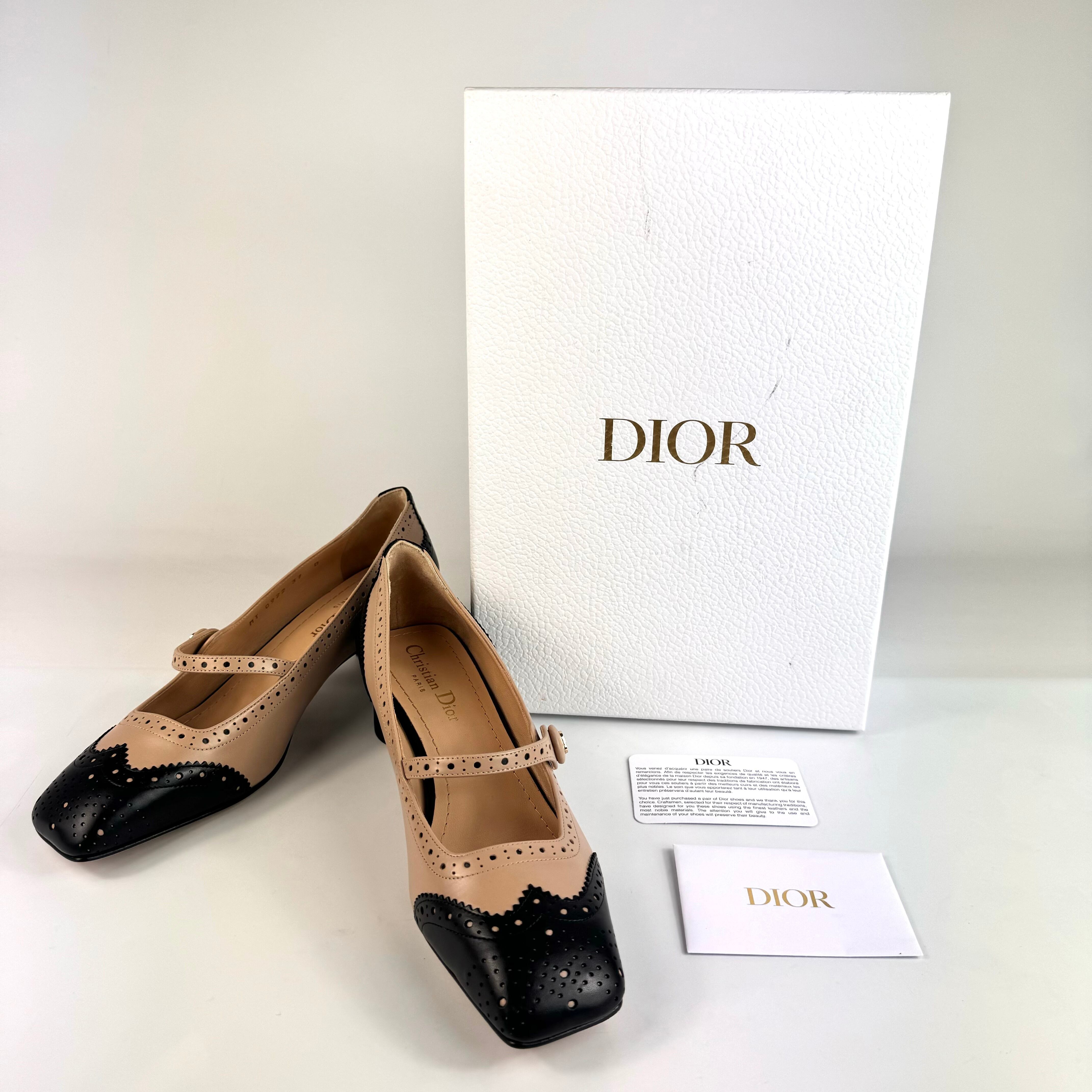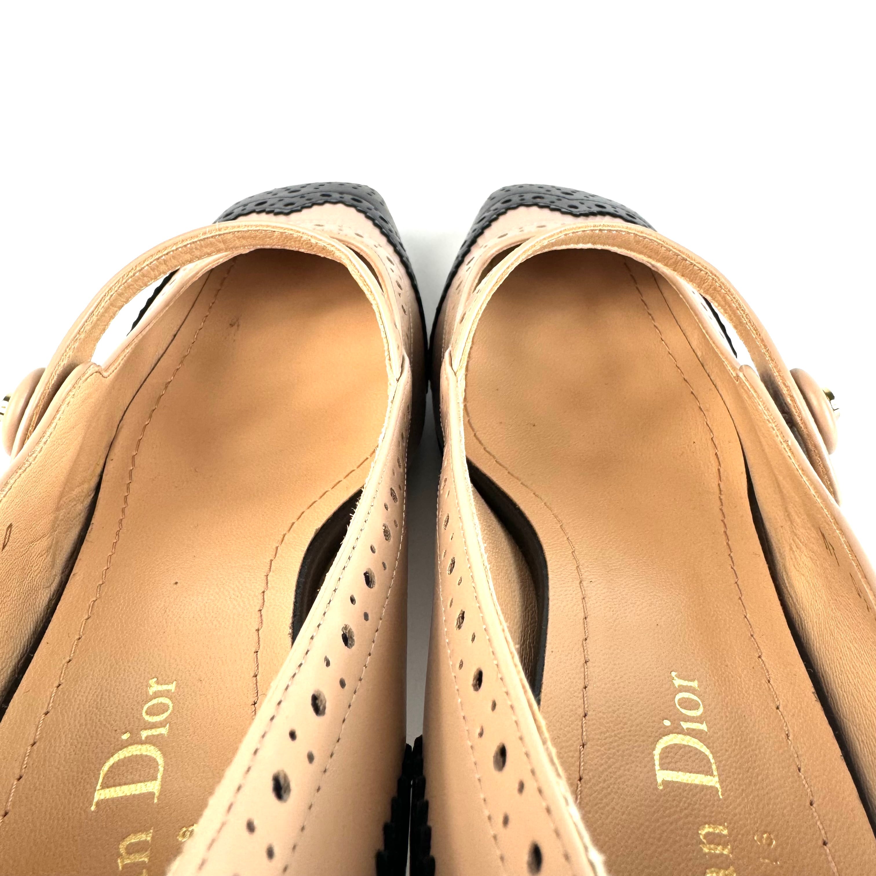 クリスチャンディオール Christian Dior パンプス パンチング カーフ ベージュ 黒 24cm