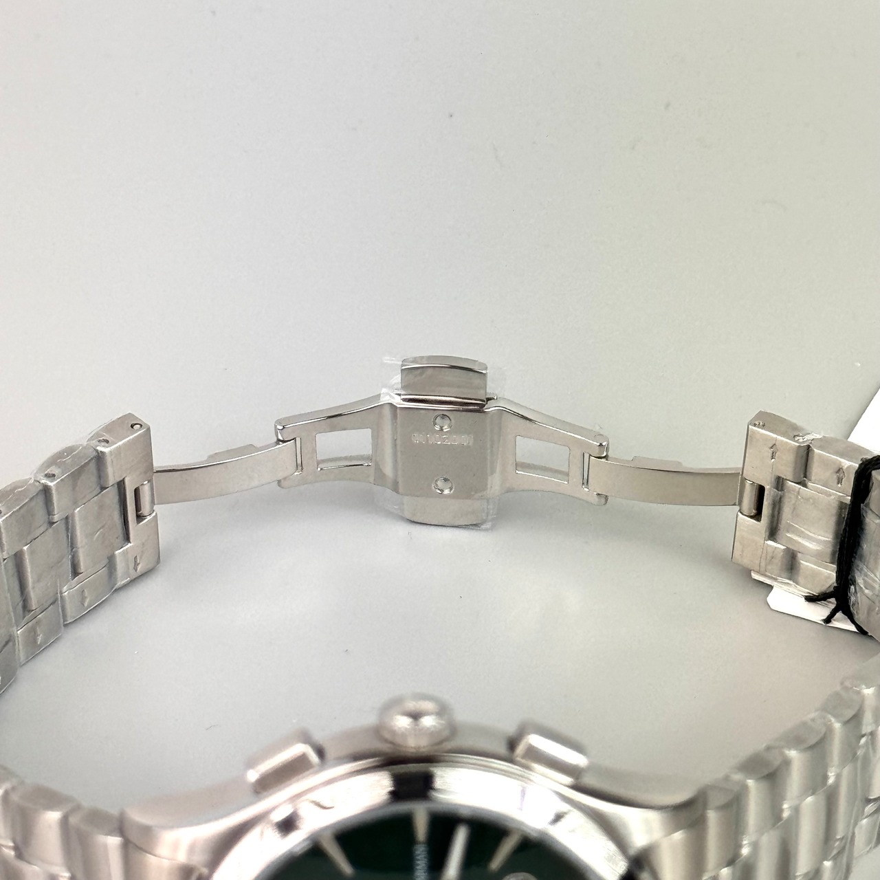 フェイス:特に気になる点はありません。またガラス面及び裏蓋に保護シールが貼ってあります。