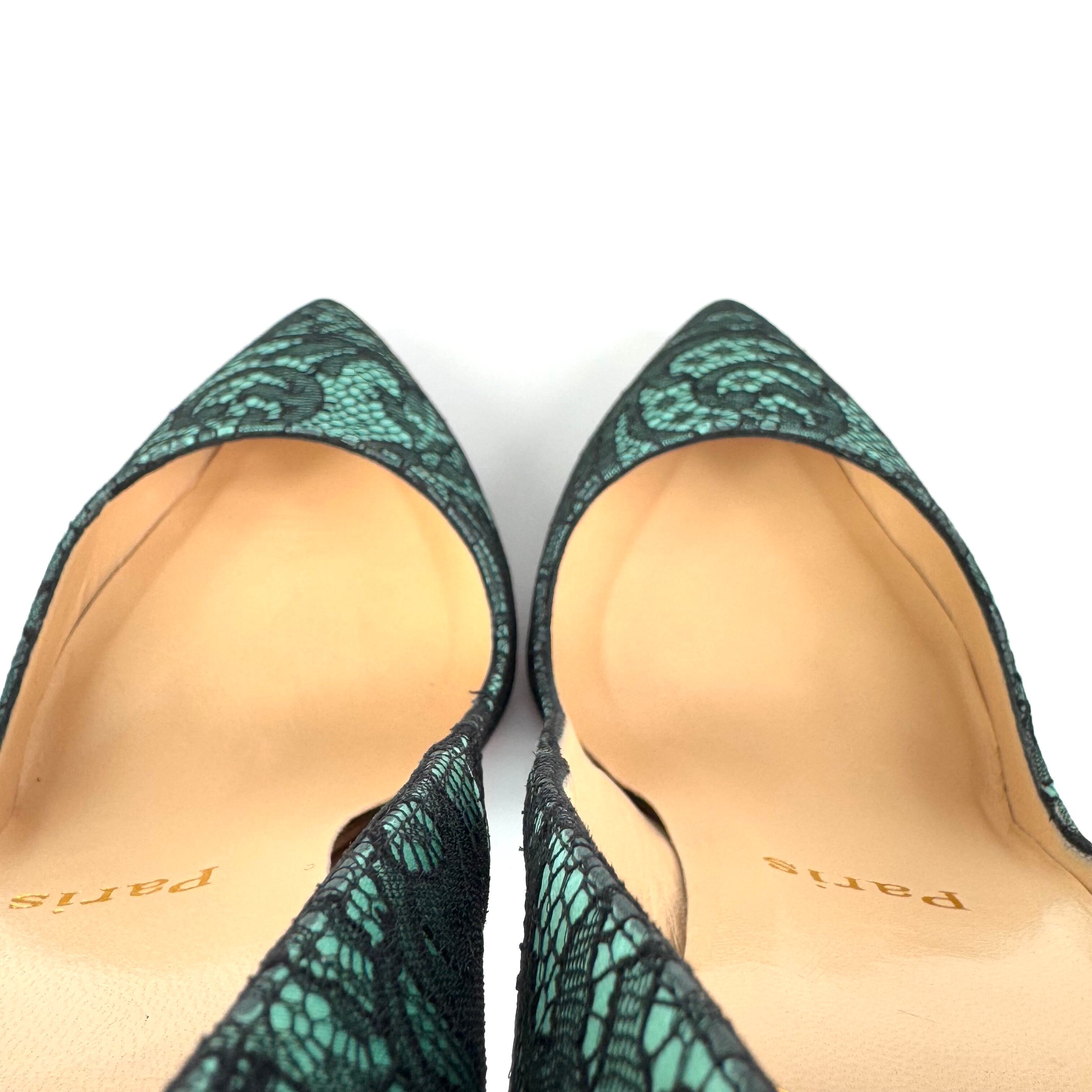 クリスチャンルブタン Christian Louboutin パンプス フラワーレース パーティー グリーン ブラック 37 日本サイズ約24cm